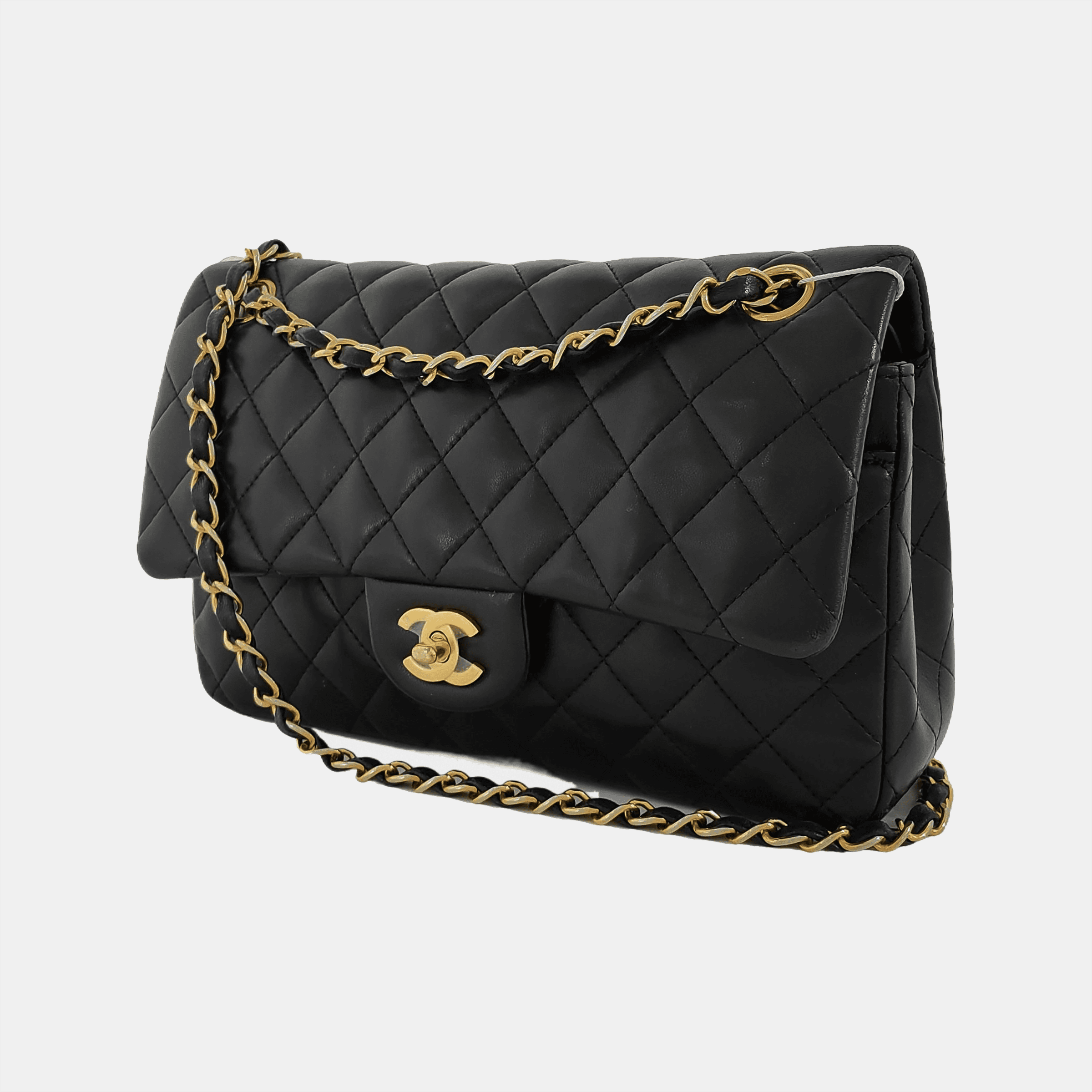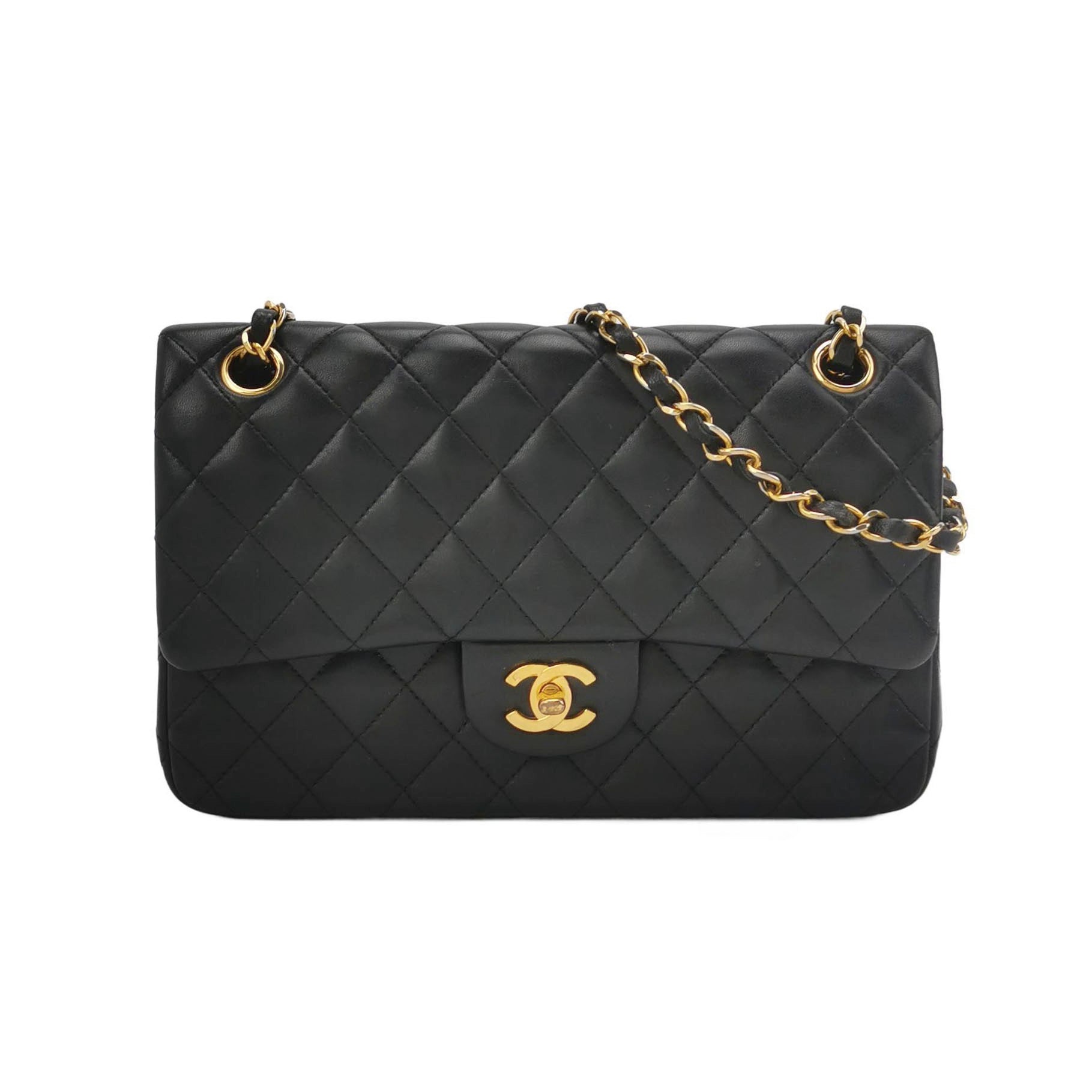 This one-of-a-kind Chanel Timeless Classic Flap Vintage bag exudes sophistication and timeless elegance. Crafted from luxurious black lambskin leather, it is adorned with 24k gold hardware.Â