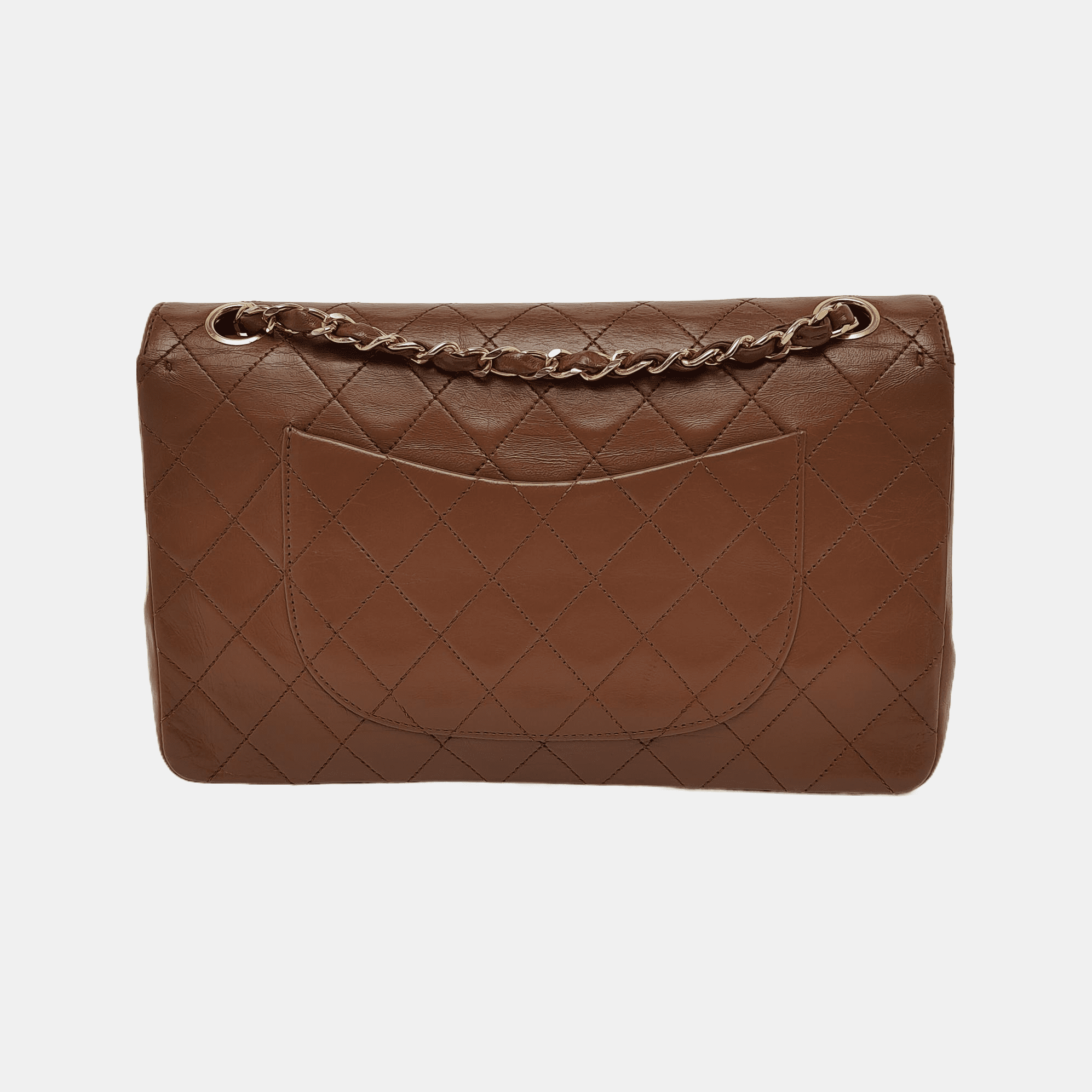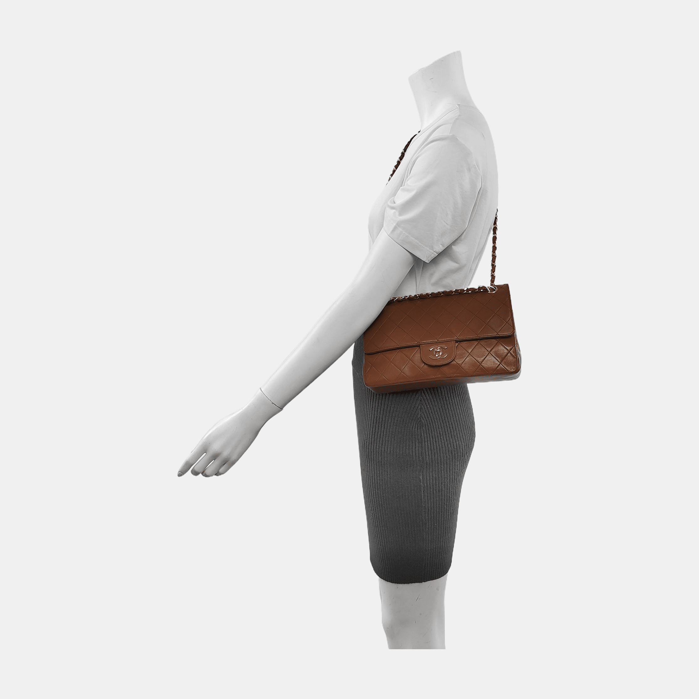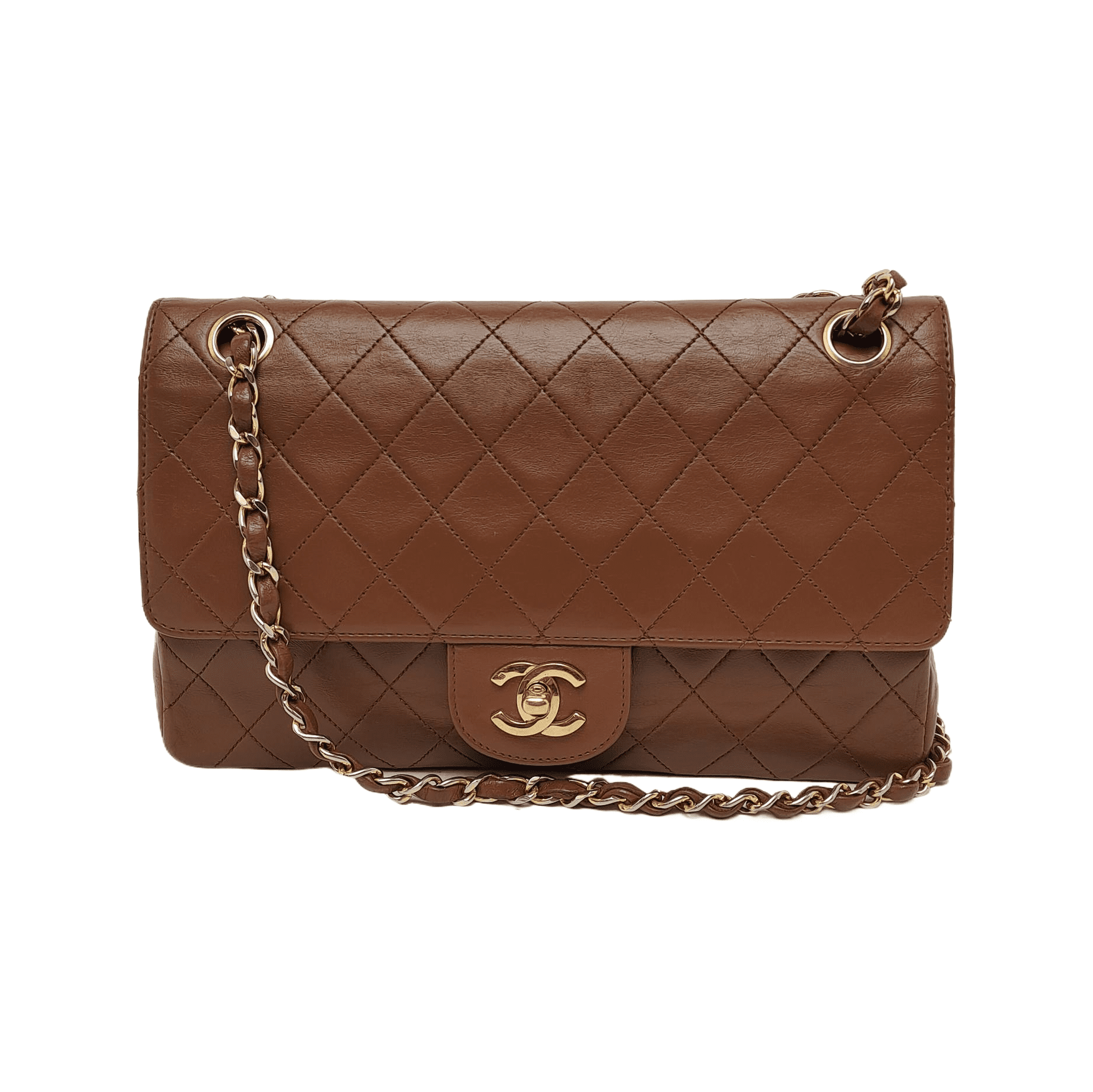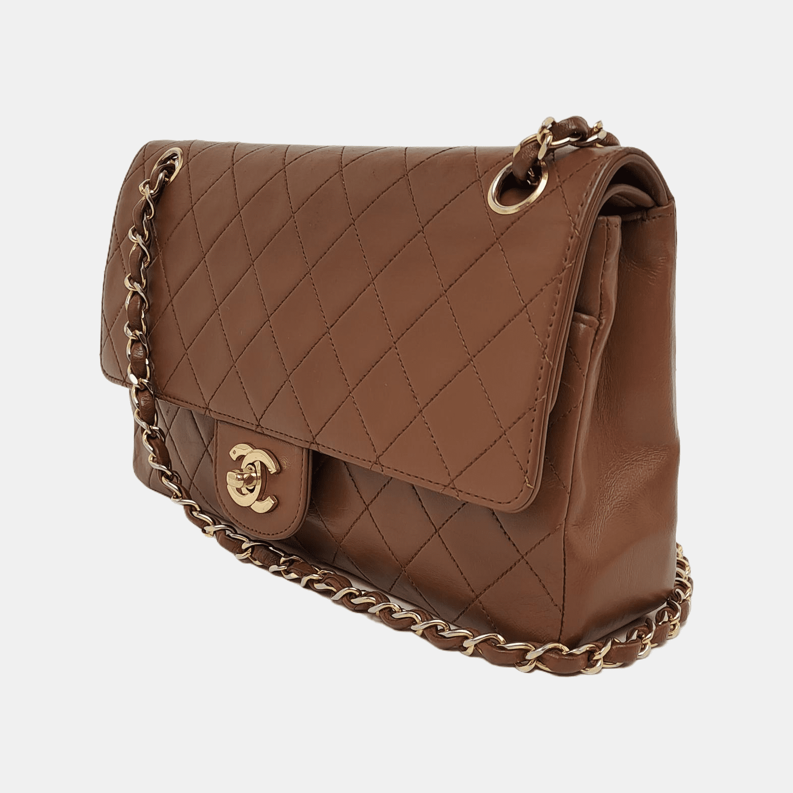 This Chanel chevron flap bag is in very good condition with some signs of wear. Rubbing on the corners, edges, and flap. Scratches and creases on the leather and hardware. Stains on the inside. The color has been professionally touched up.Â