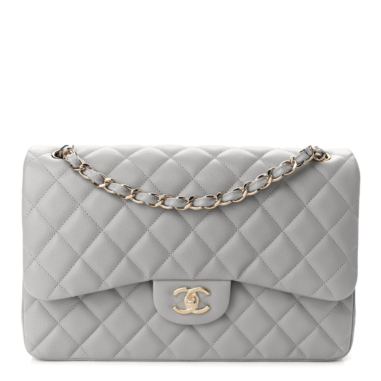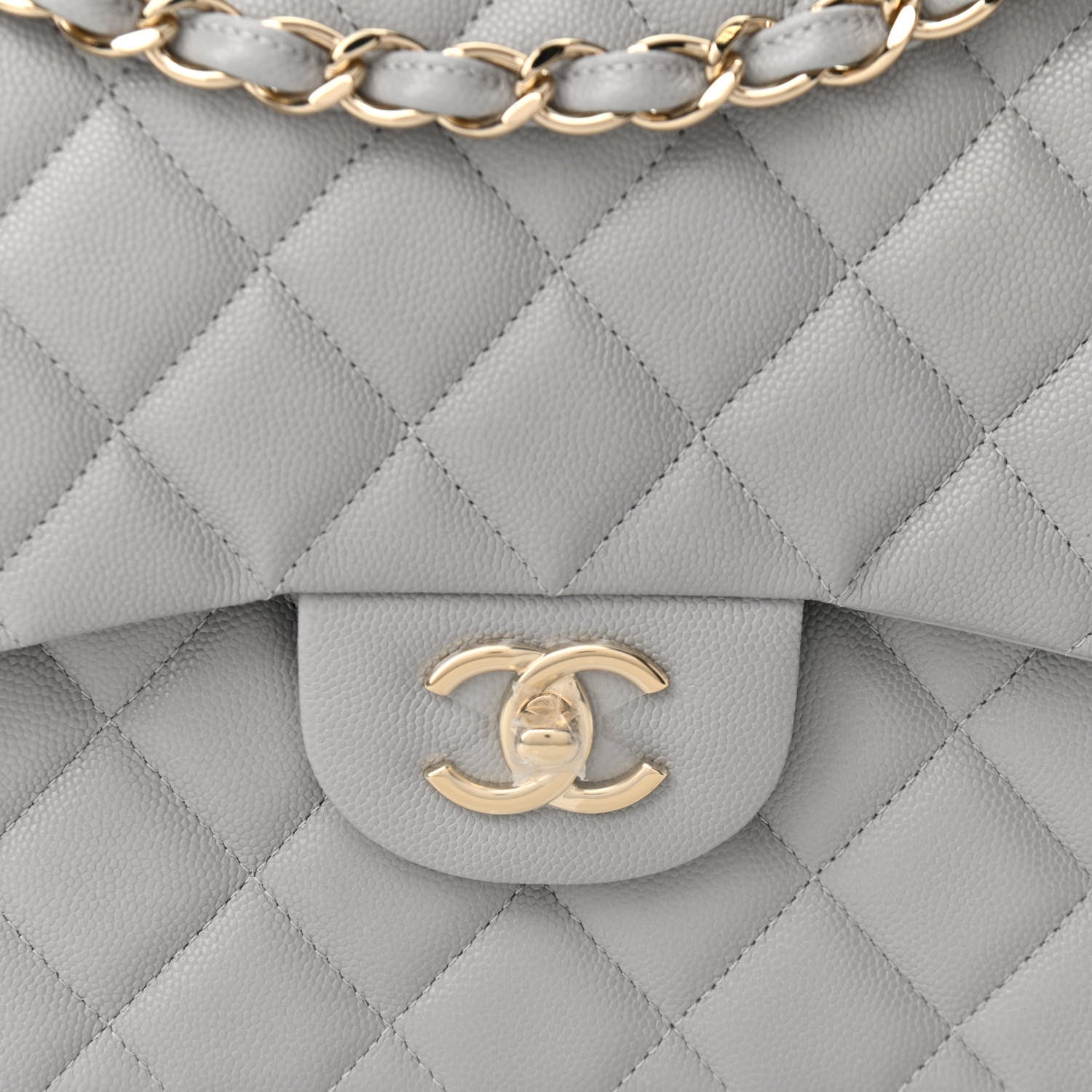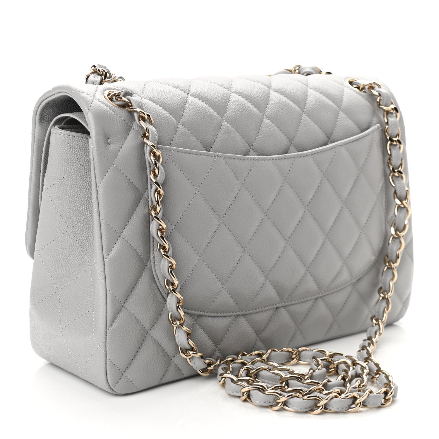 CHANEL CLASSIC  QUILTED CAVIAR JUMBO DOUBLE FLAP BAG GREY GOLD HARDWARE
