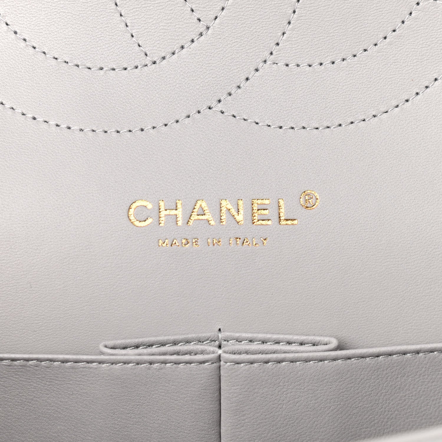 Chanel Grey Quilted Lambskin Jumbo Classic Double Flap Bag Gold Hardware