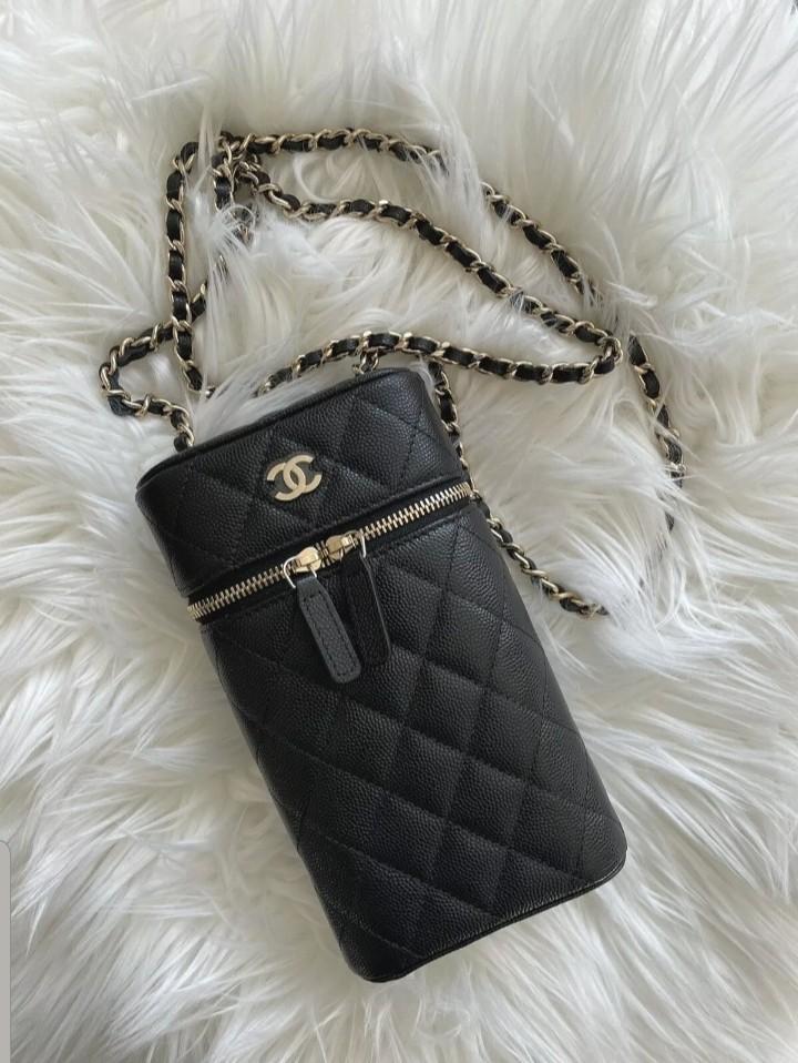 CHANEL Classic Vanity Phone Holder with Chain Quilted CaviarCHANEL Classic Vanity Phone Holder with Chain Quilted Caviar