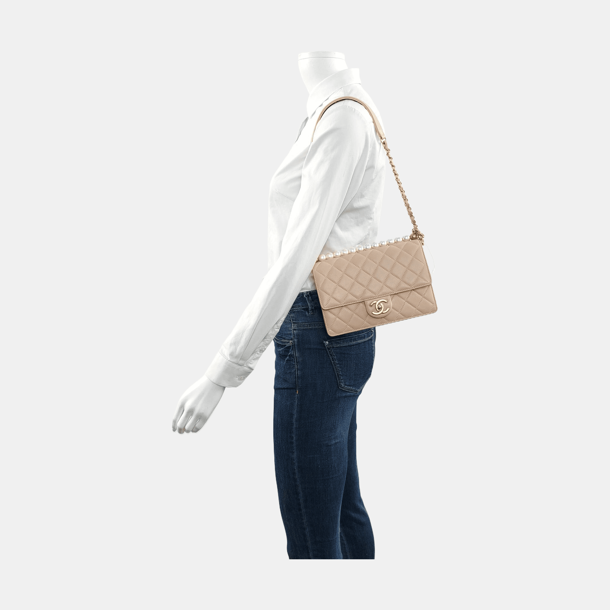 Chanel Classic Vertical Pearl Small Light Pink Flap Bag Gold Hardware