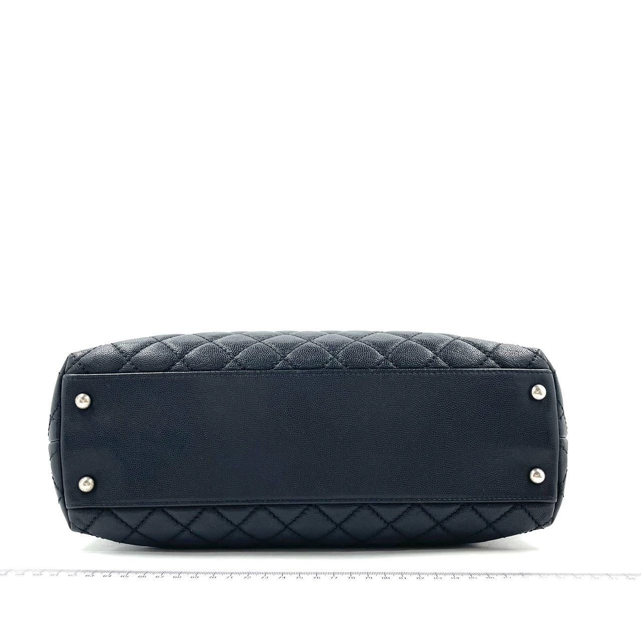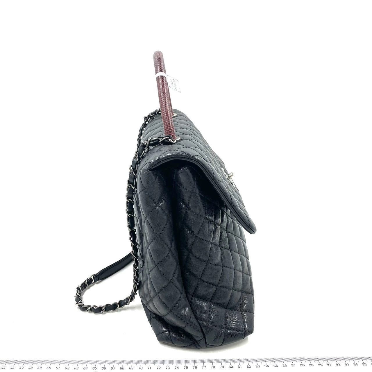 Chanel Coco Handle Maxi Black Caviar Leather Burgundy Lizard Handle Silver Hardware 32cm
