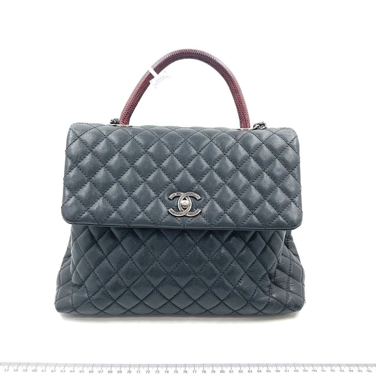 Be the first to review “Chanel Coco Handle Maxi Black Caviar Leather Burgundy Lizard Handle Silver Hardware 32cm”