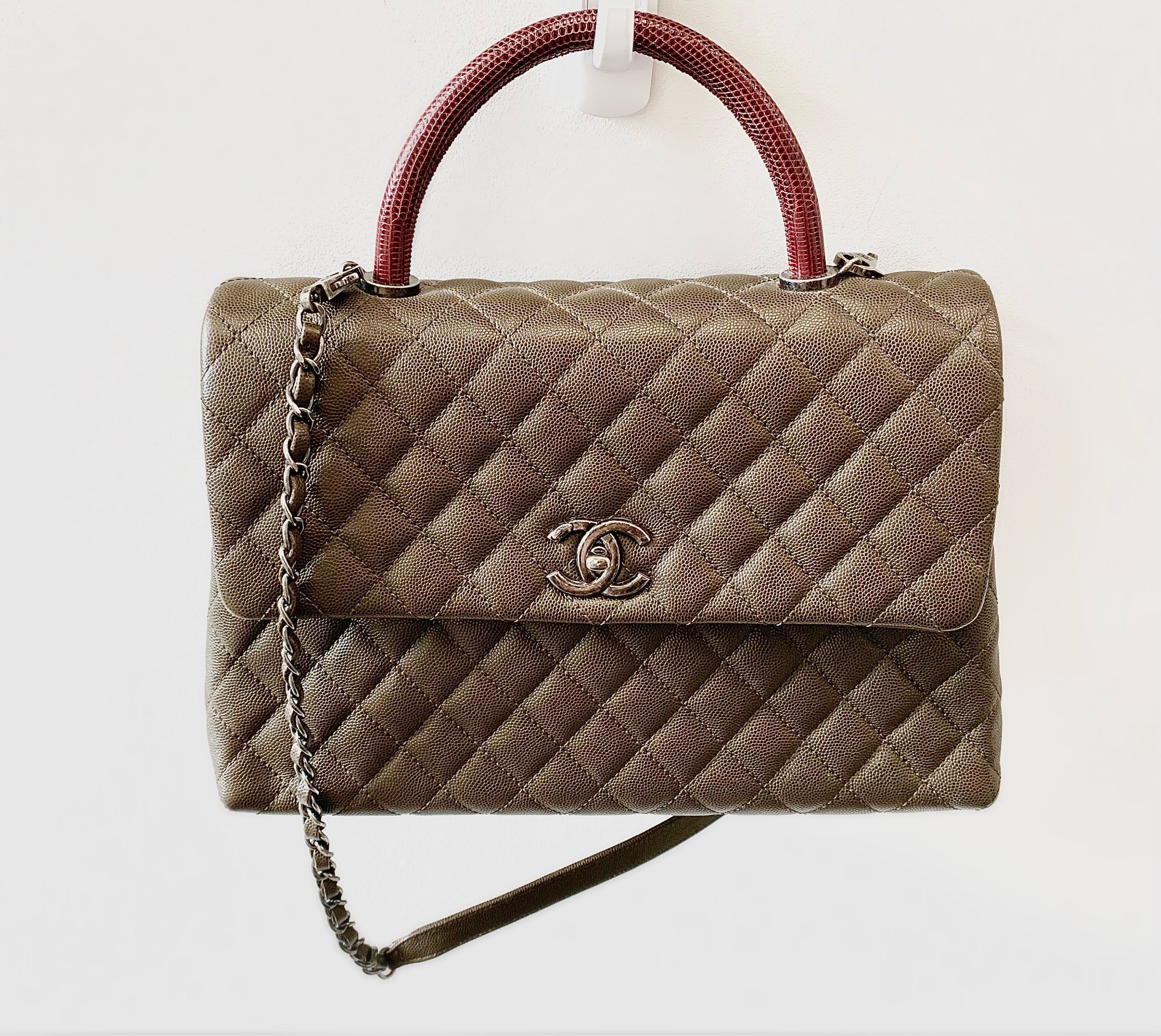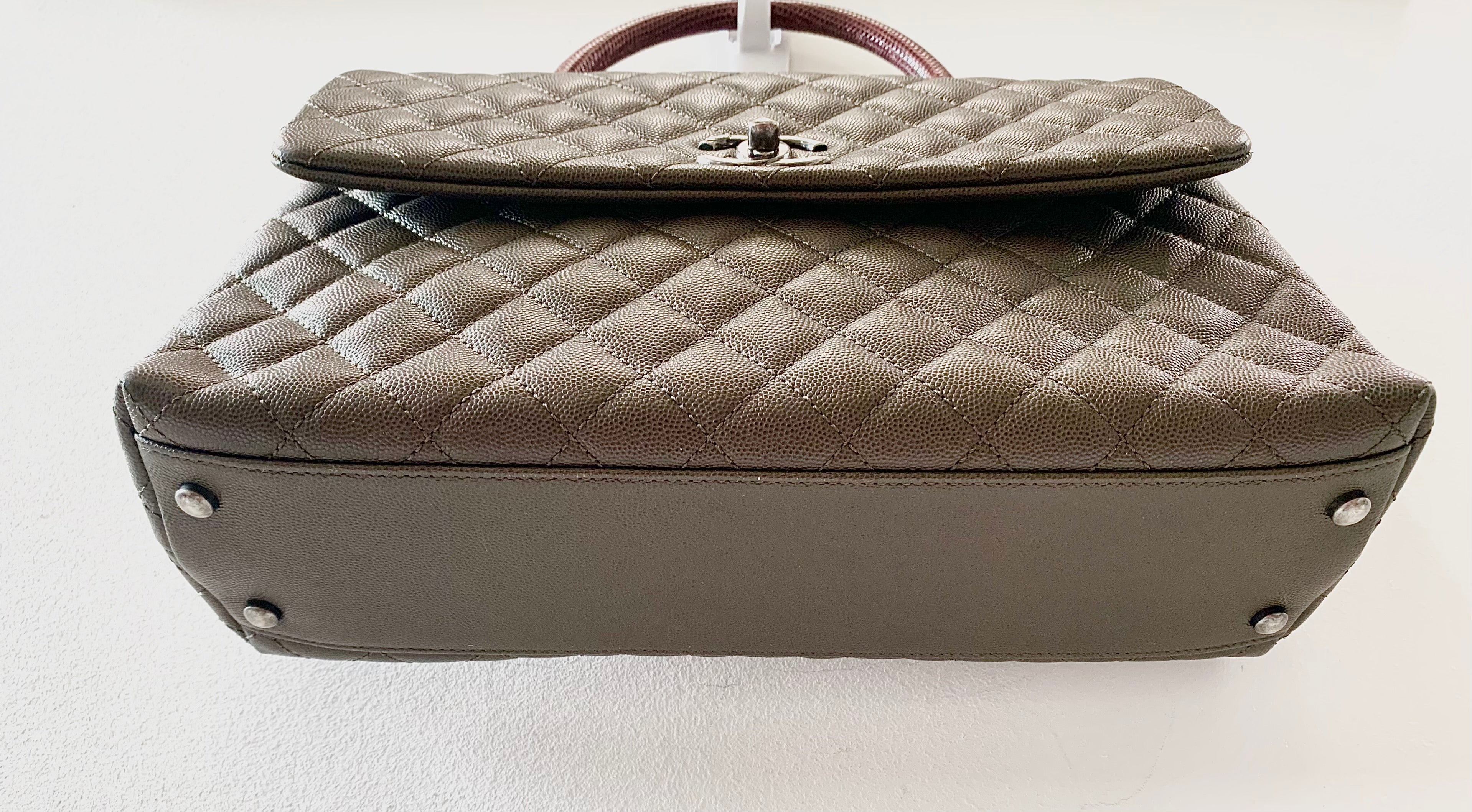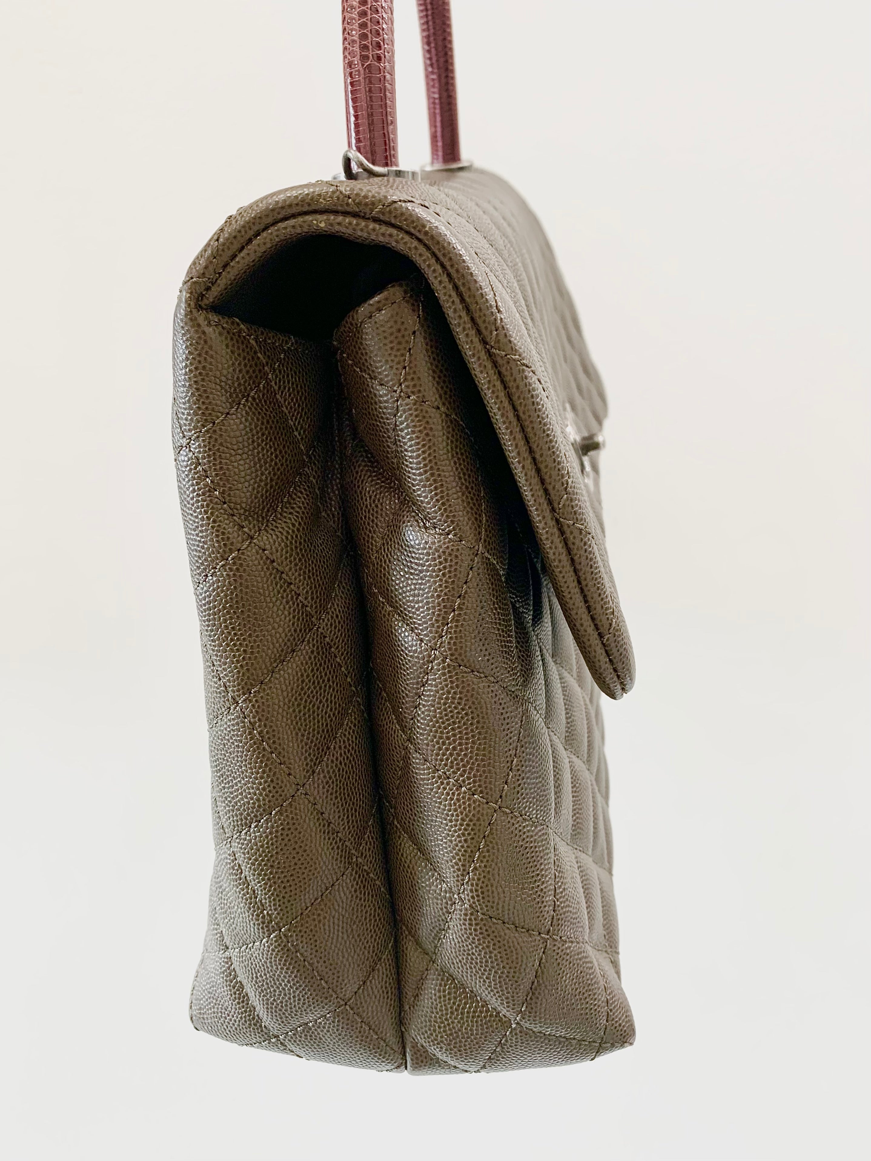 CHANEL Coco Caviar Quilted Lizard Handle Bag