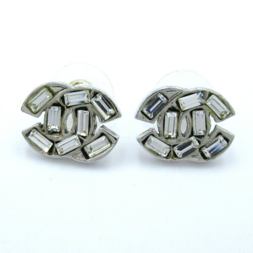 Chanel Coco Mark Pierced Earrings Post Boucle Doreille Silver.