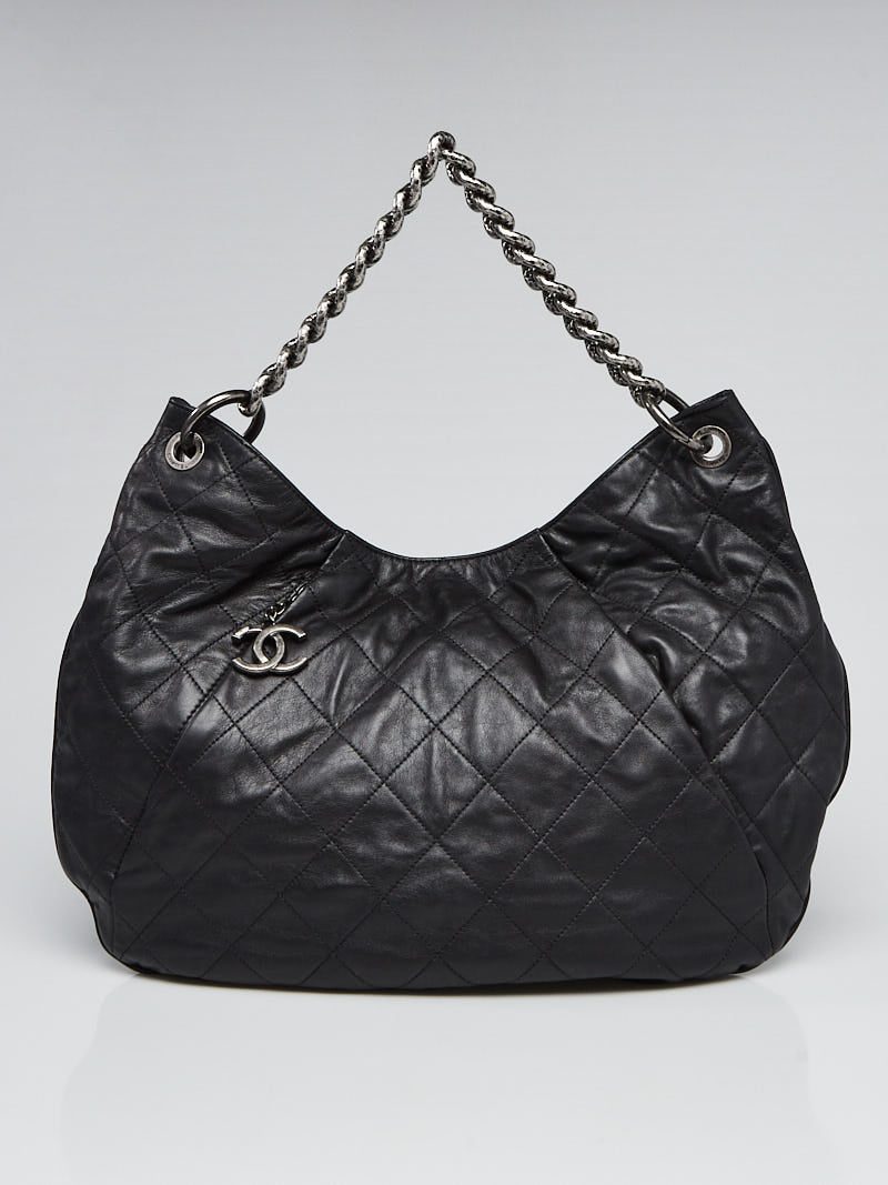 Chanel Black Quilted Leather Coco Pleats Hobo Bag makes a perfect everyday bag. It features a nice pliable quilted calfskin leather, chain shoulder strap, and CC hardware.Â