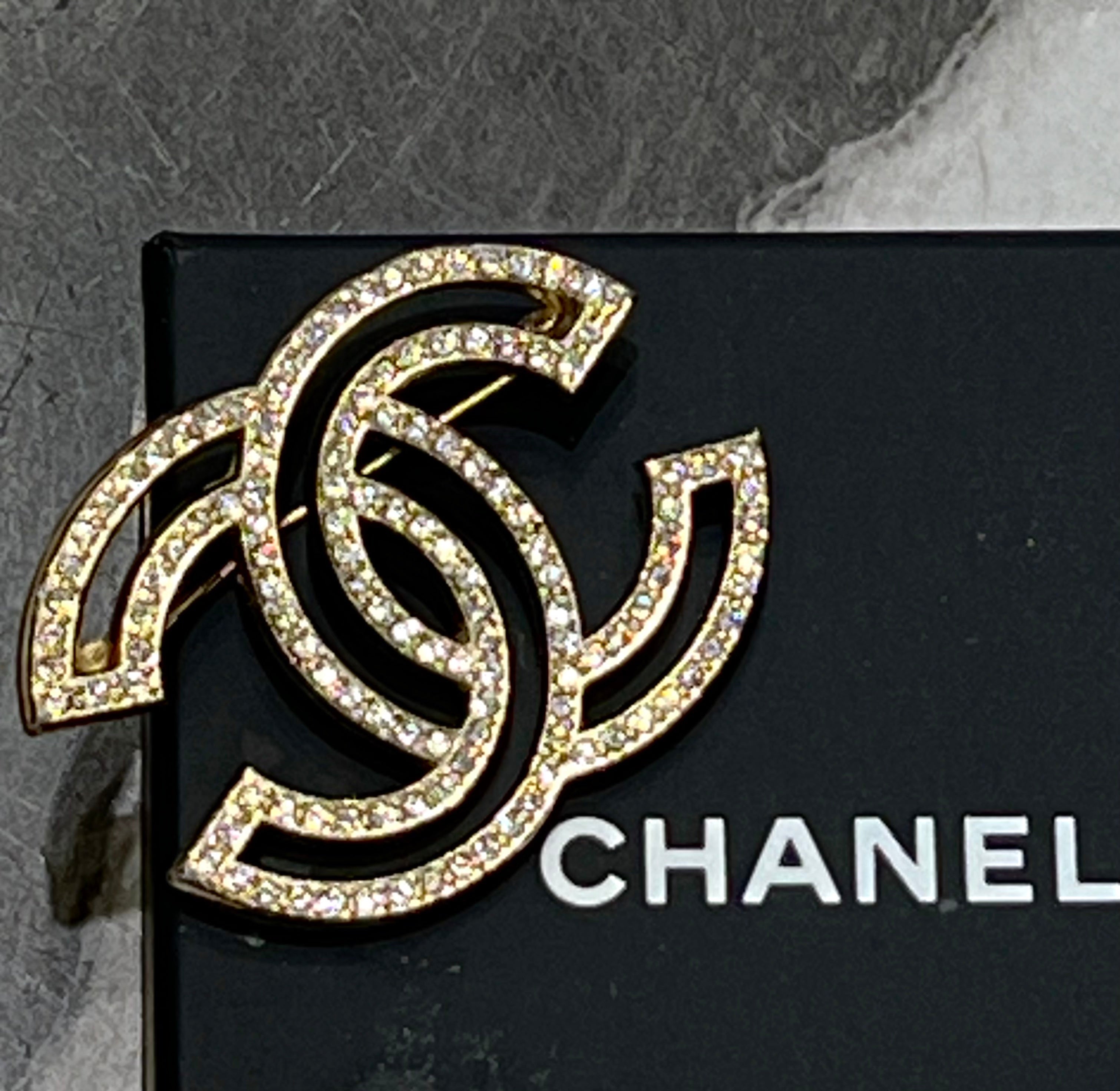 CHANEL CRYSTAL CC LIGHT GOLD BROOCH