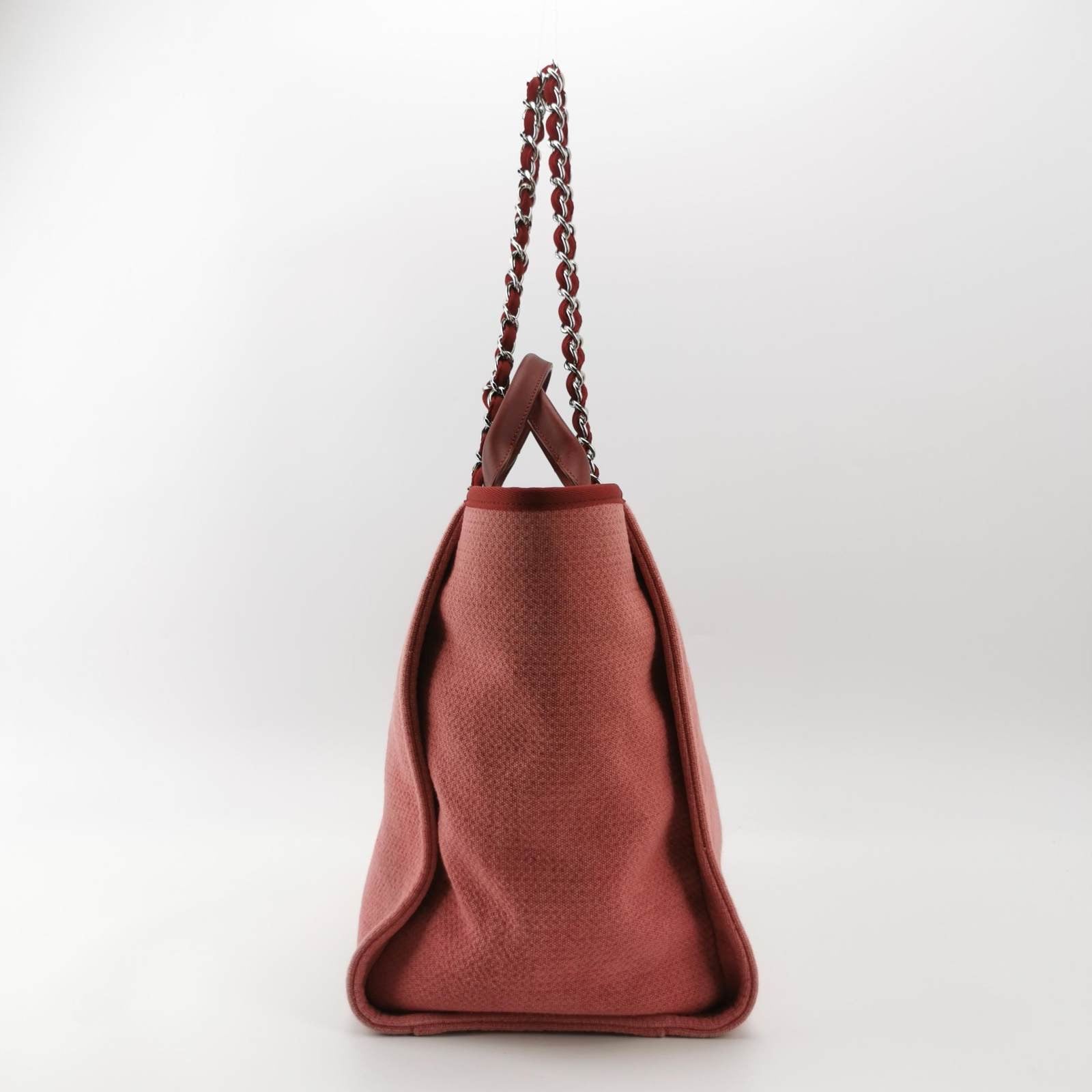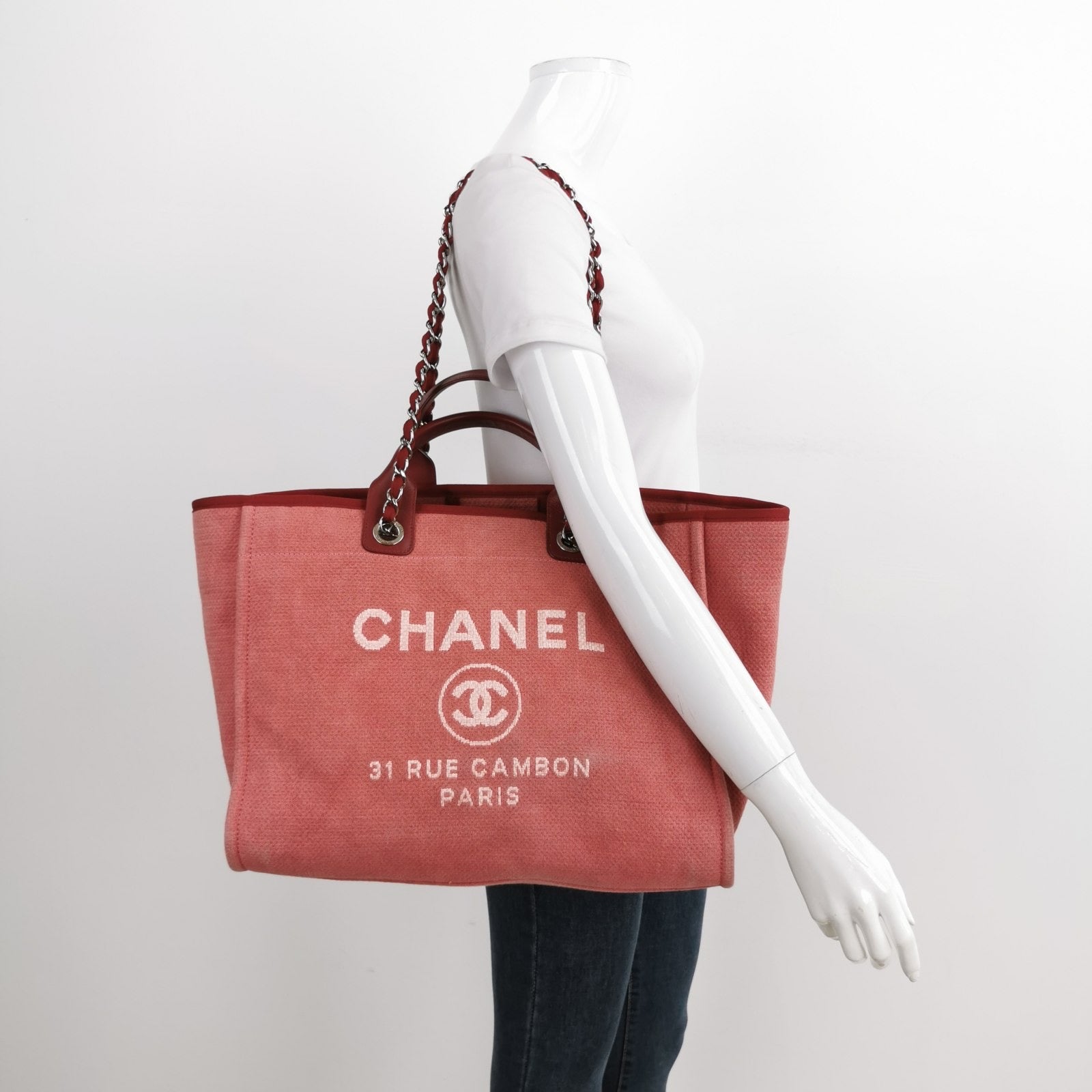 The Chanel Deauville Tote, named after the French seaside resort, is a must-have for summer, combining elegance and functionality. Made of lightweight denim-like material, it’s perfect for carrying by hand or on the shoulder with the matelasse chain strap. With its roomy interior, it’s ideal for a day at the beach. The iconic “31 Rue Cambon” print adds a touch of Parisian charm.