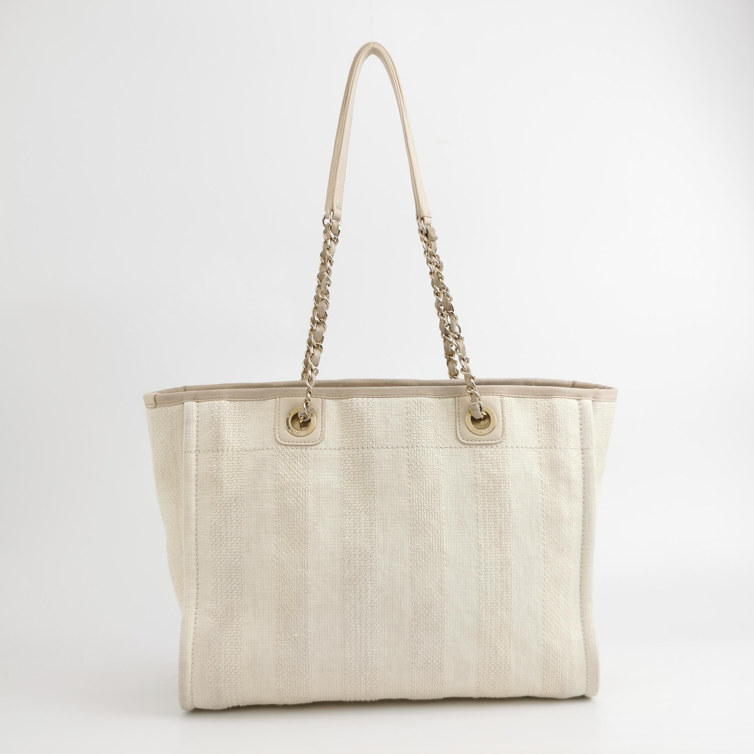 The Chanel Deauville Tote bag is a stylish accessory for everyday use. Crafted from durable denim, this tote is perfect for all season wear. Despite signs of use, this bag is in very good condition. Show off your effortless chic with the Chanel Deauville Tote.Â