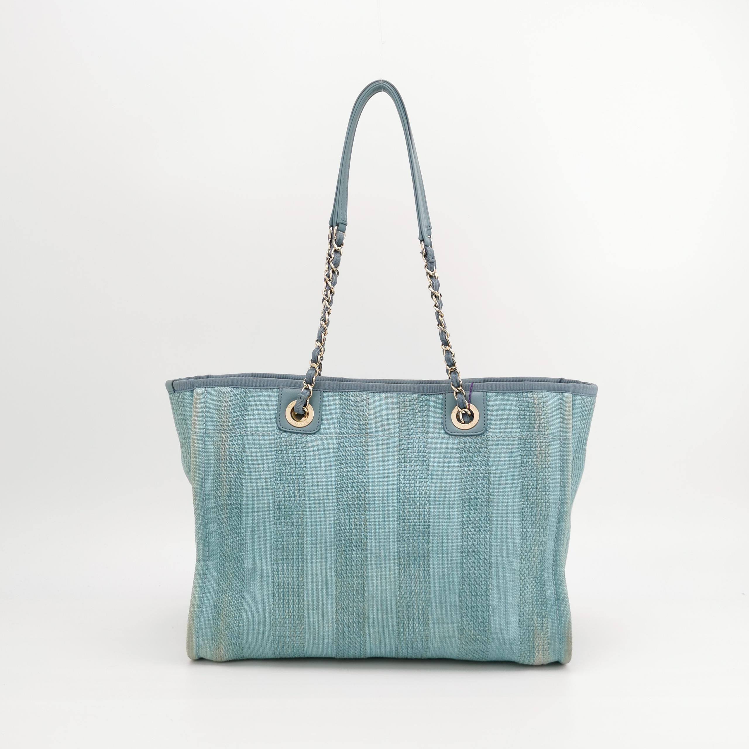 The Chanel Deauville Tote bag is a stylish accessory for everyday use. Crafted from durable denim, this tote is perfect for all season wear. Despite signs of use, this bag is in very good condition. Show off your effortless chic with the Chanel Deauville Tote.Â