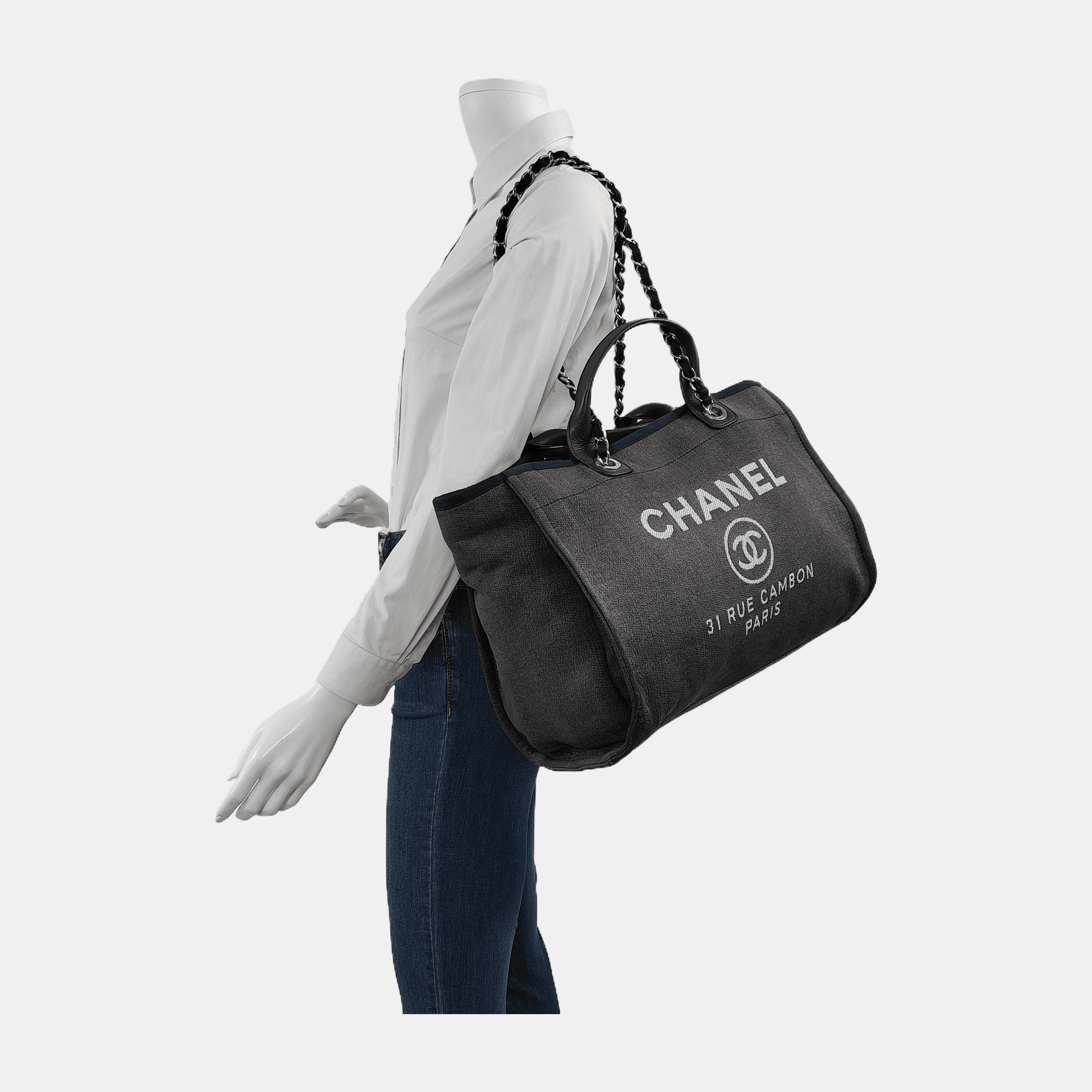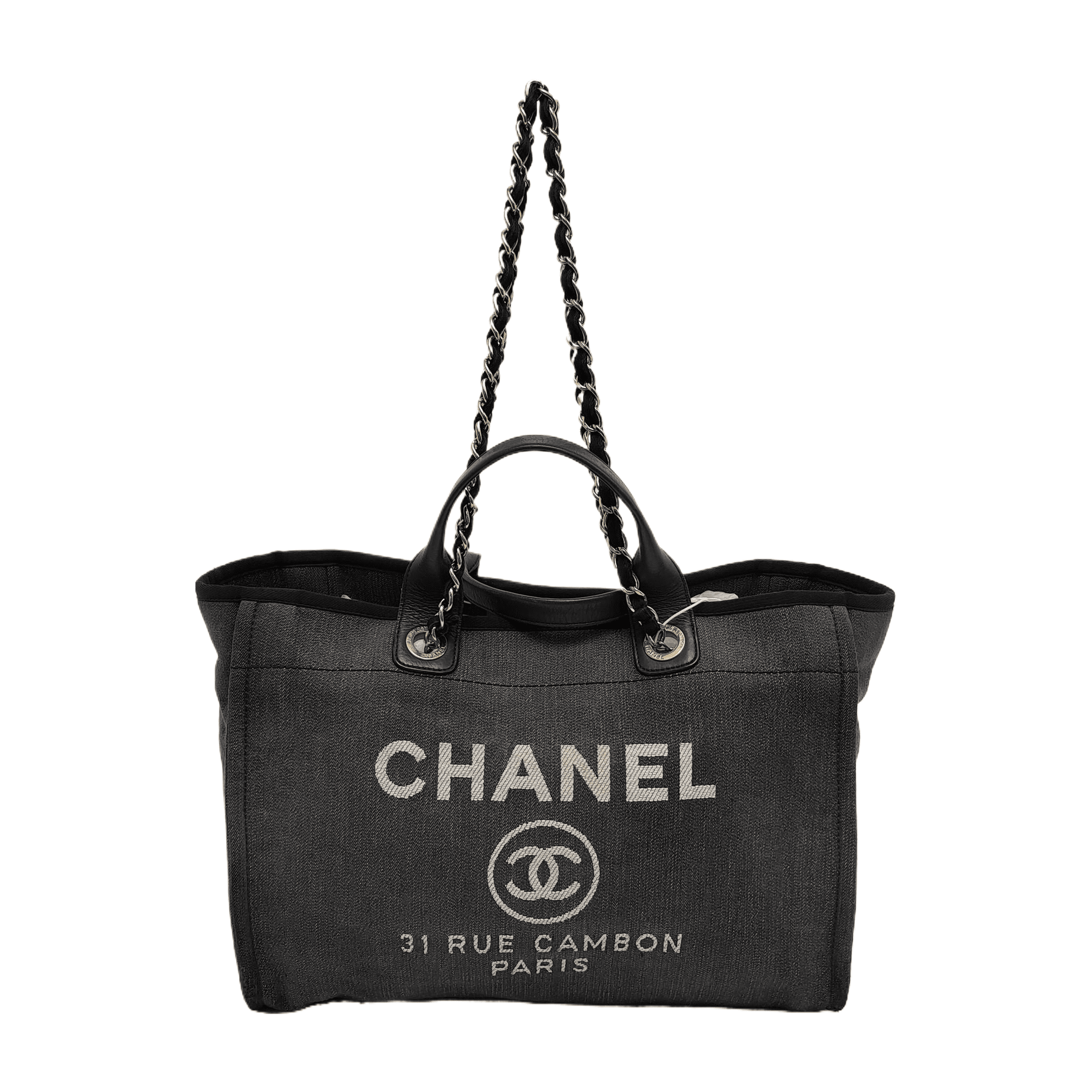 The Chanel Deauville Tote, named after the French seaside resort, is a must-have for summer, combining elegance and functionality. Made of lightweight denim-like material, it’s perfect for carrying by hand or on the shoulder with the matelasse chain strap. With its roomy interior, it’s ideal for a day at the beach. The iconic “31 Rue Cambon” print adds a touch of Parisian charm.