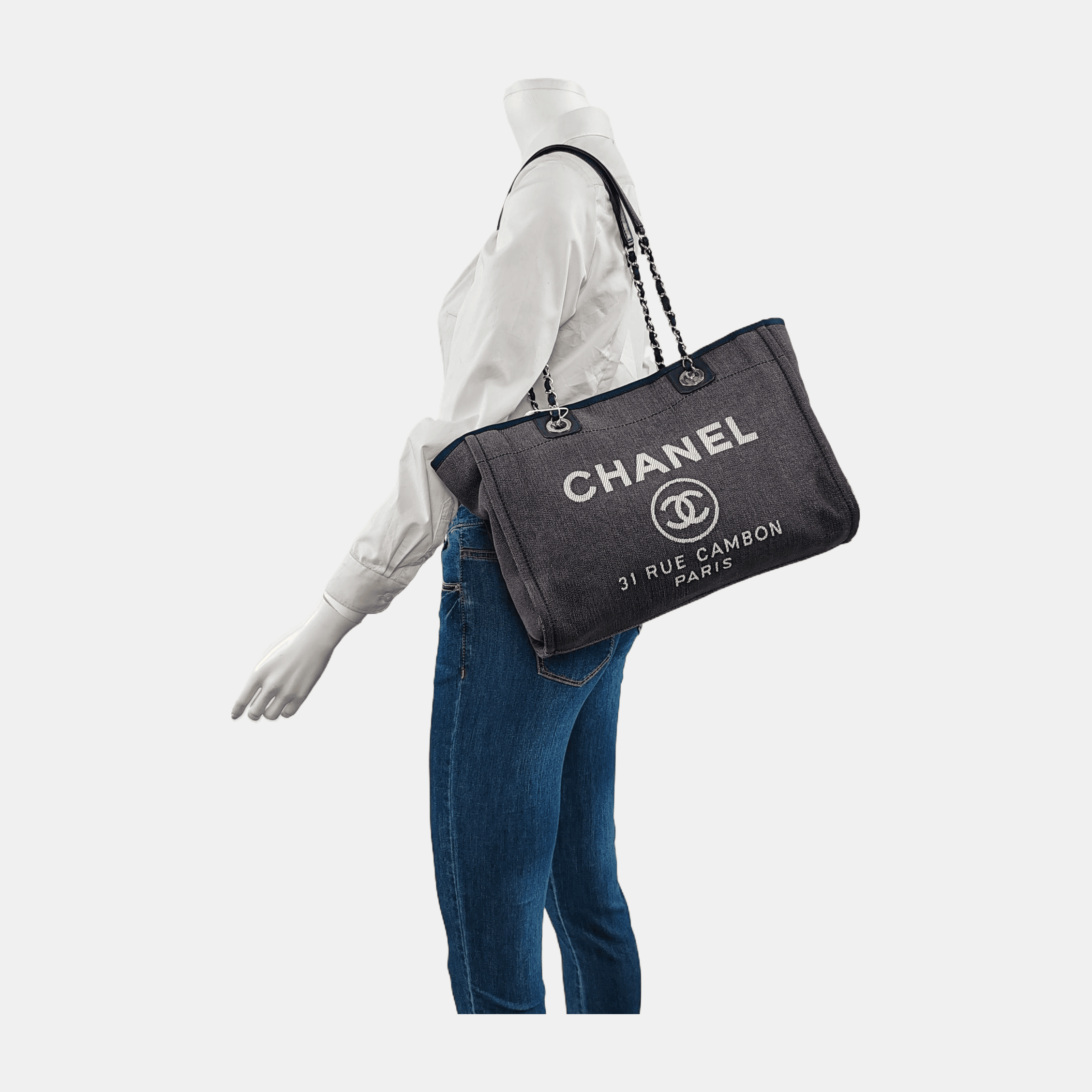 The Chanel Deauville Tote bag is a stylish accessory for everyday use. Crafted from durable denim, this tote is perfect for all season wear. Despite signs of use, this bag is in very good condition. Show off your effortless chic with the Chanel Deauville Tote.Â