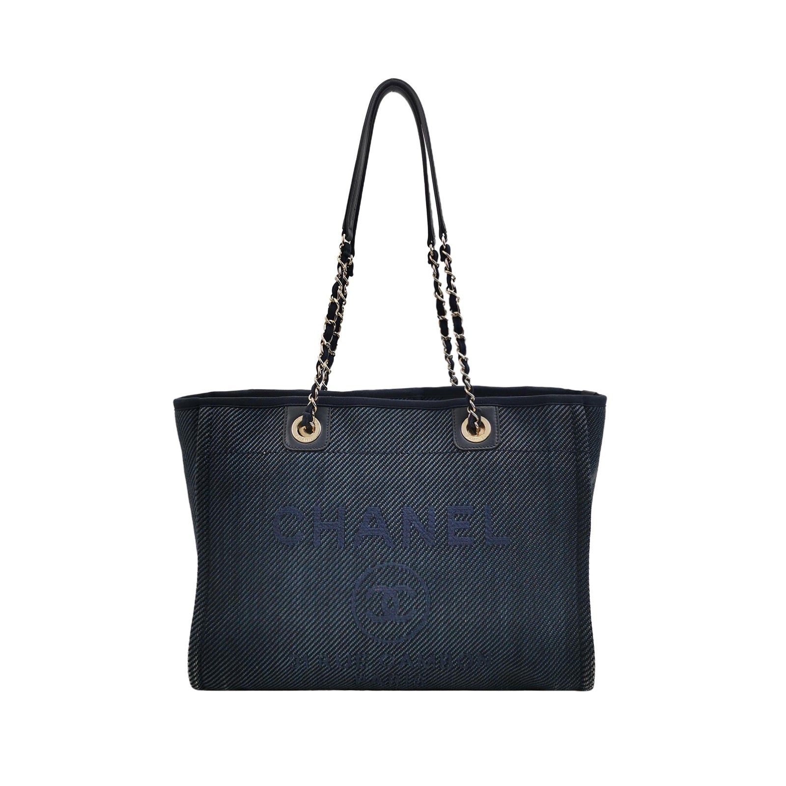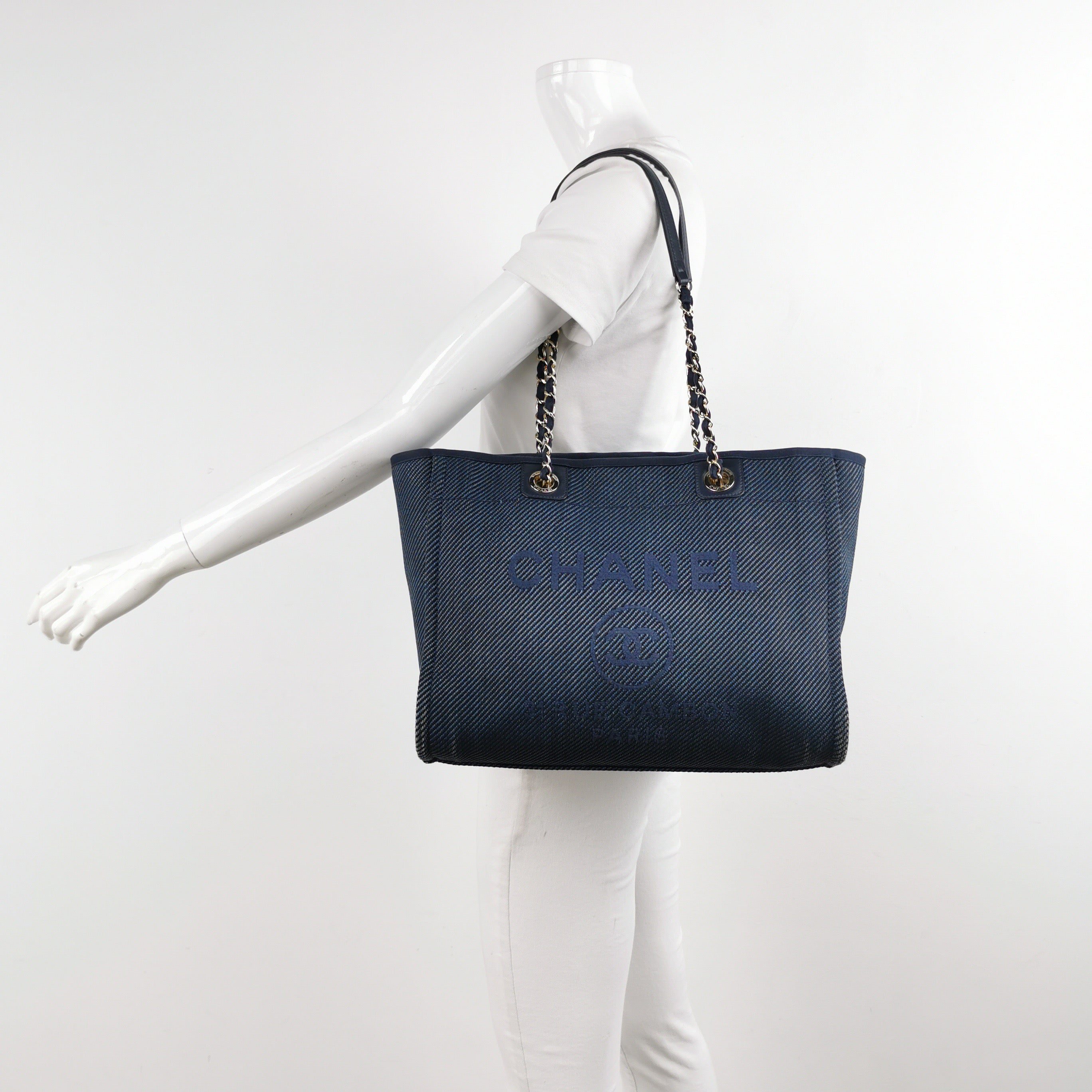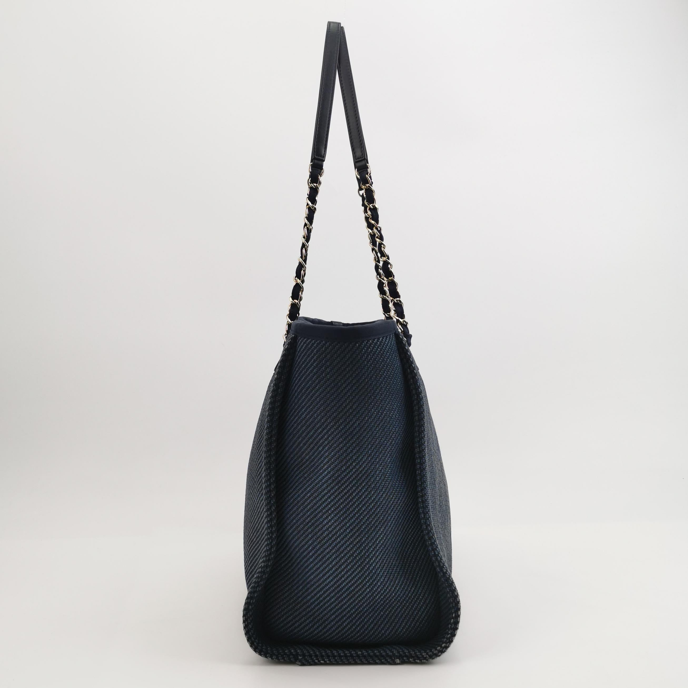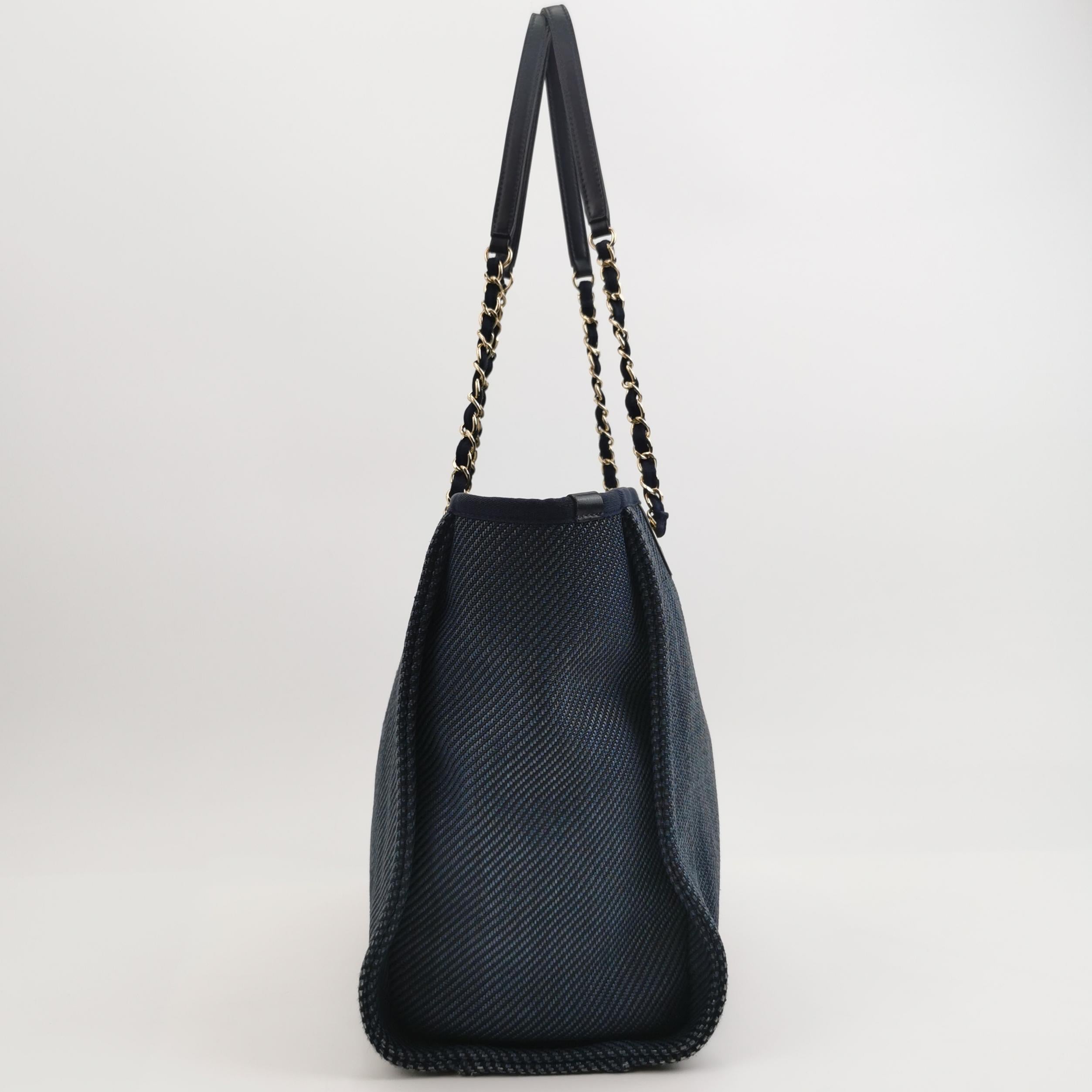The Chanel Deauville Tote bag is a stylish accessory for everyday use. Crafted from durable denim, this tote is perfect for all season wear. Despite signs of use, this bag is in very good condition. Show off your effortless chic with the Chanel Deauville Tote.Â