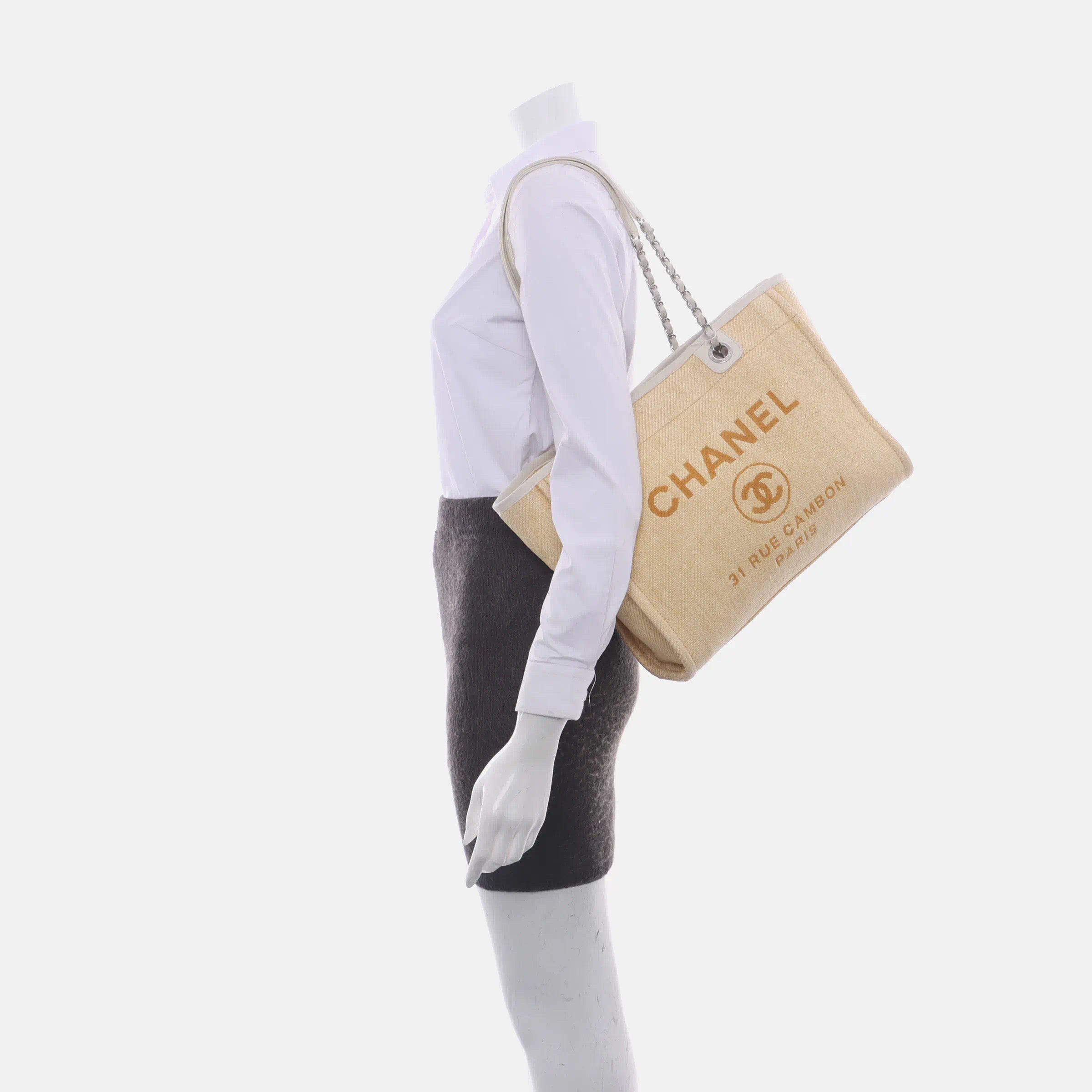 The Chanel Deauville Tote bag is a stylish accessory for everyday use. Crafted from durable denim, this tote is perfect for all season wear. Despite signs of use, this bag is in very good condition. Show off your effortless chic with the Chanel Deauville Tote.Â