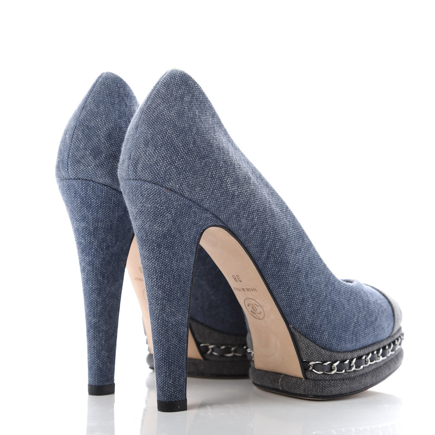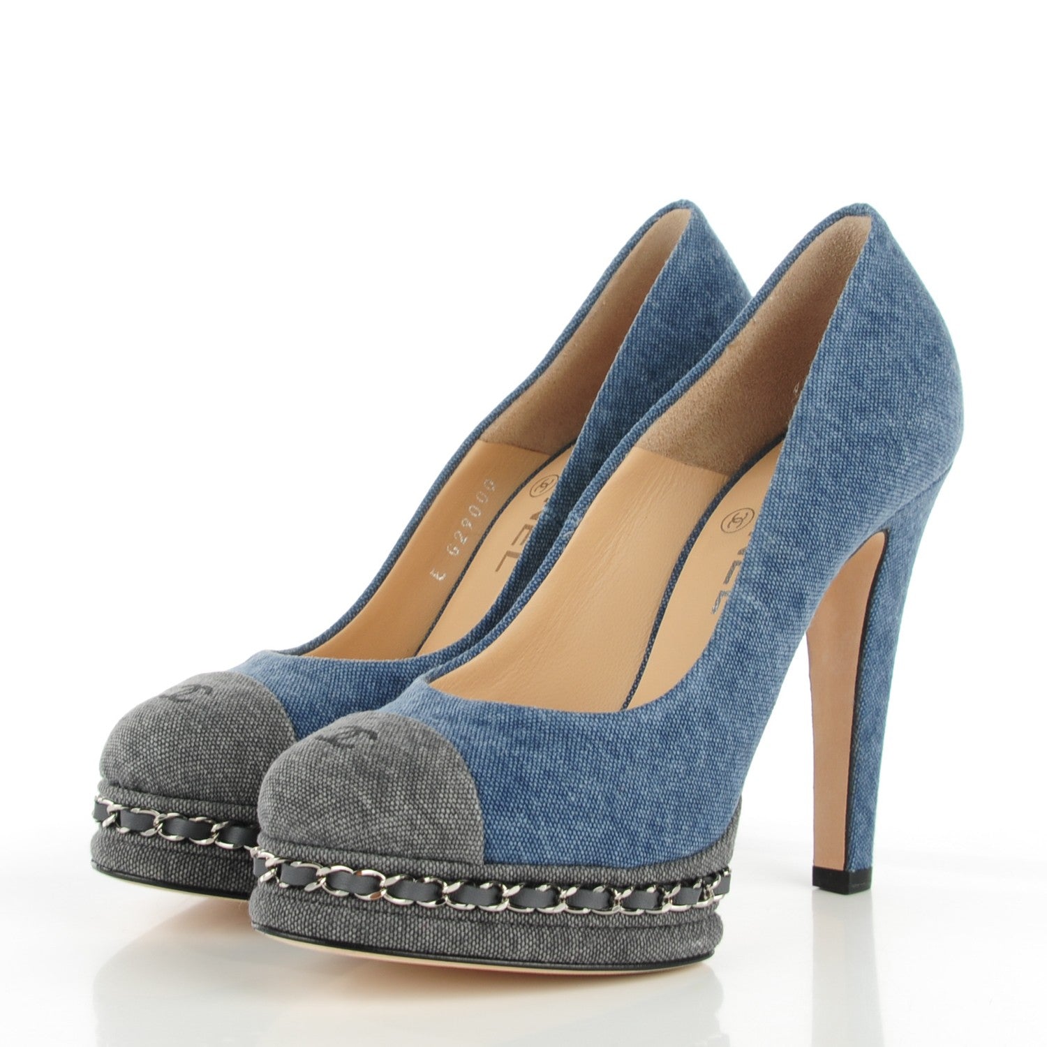 CHANEL Denim Chain Around Cap Toe Platform PumpsÂ