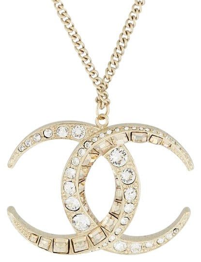 Chanel Gold Tone Plated Metal and Crystal Dubai Star Moon Large Cc Pendant Necklace- Excellent Condition.