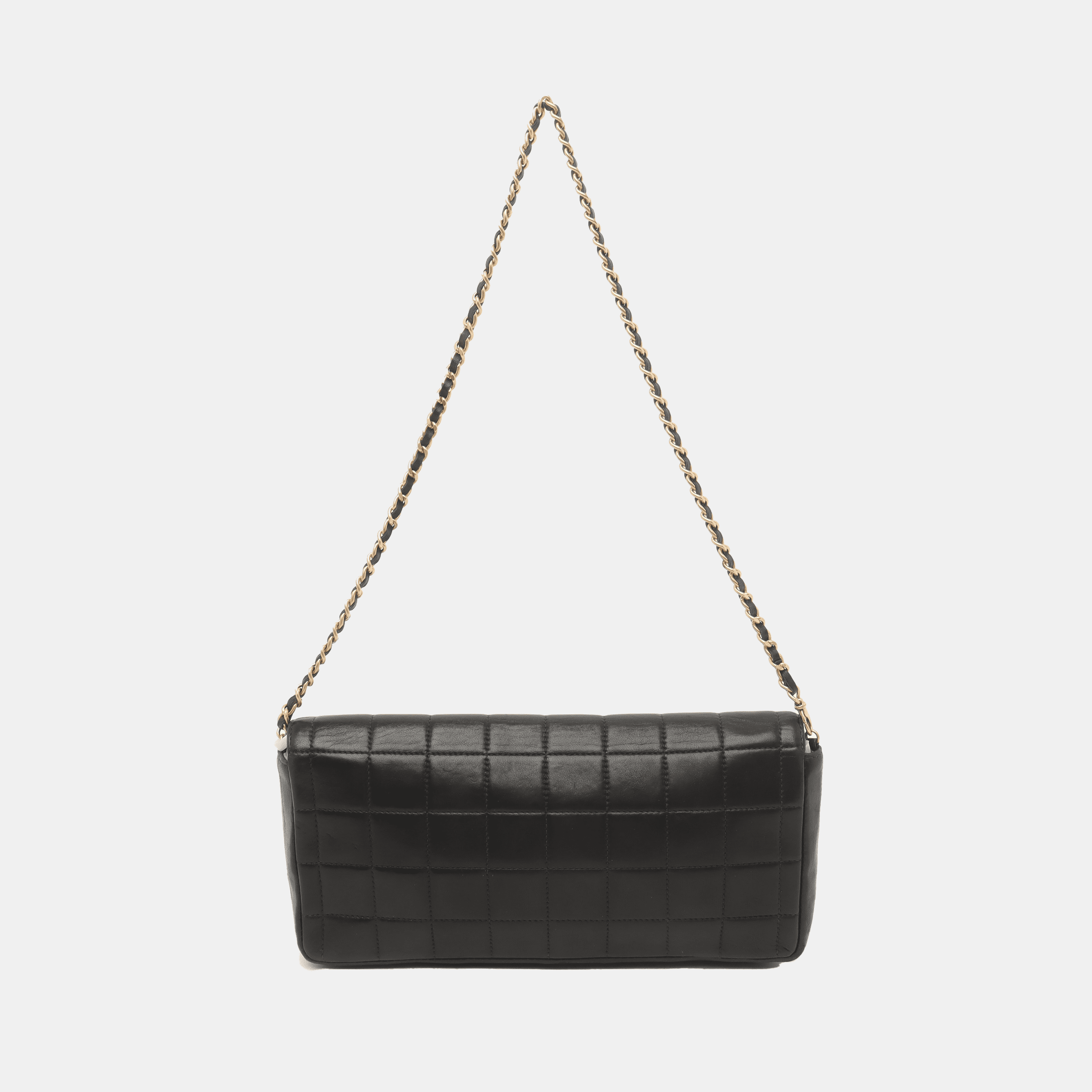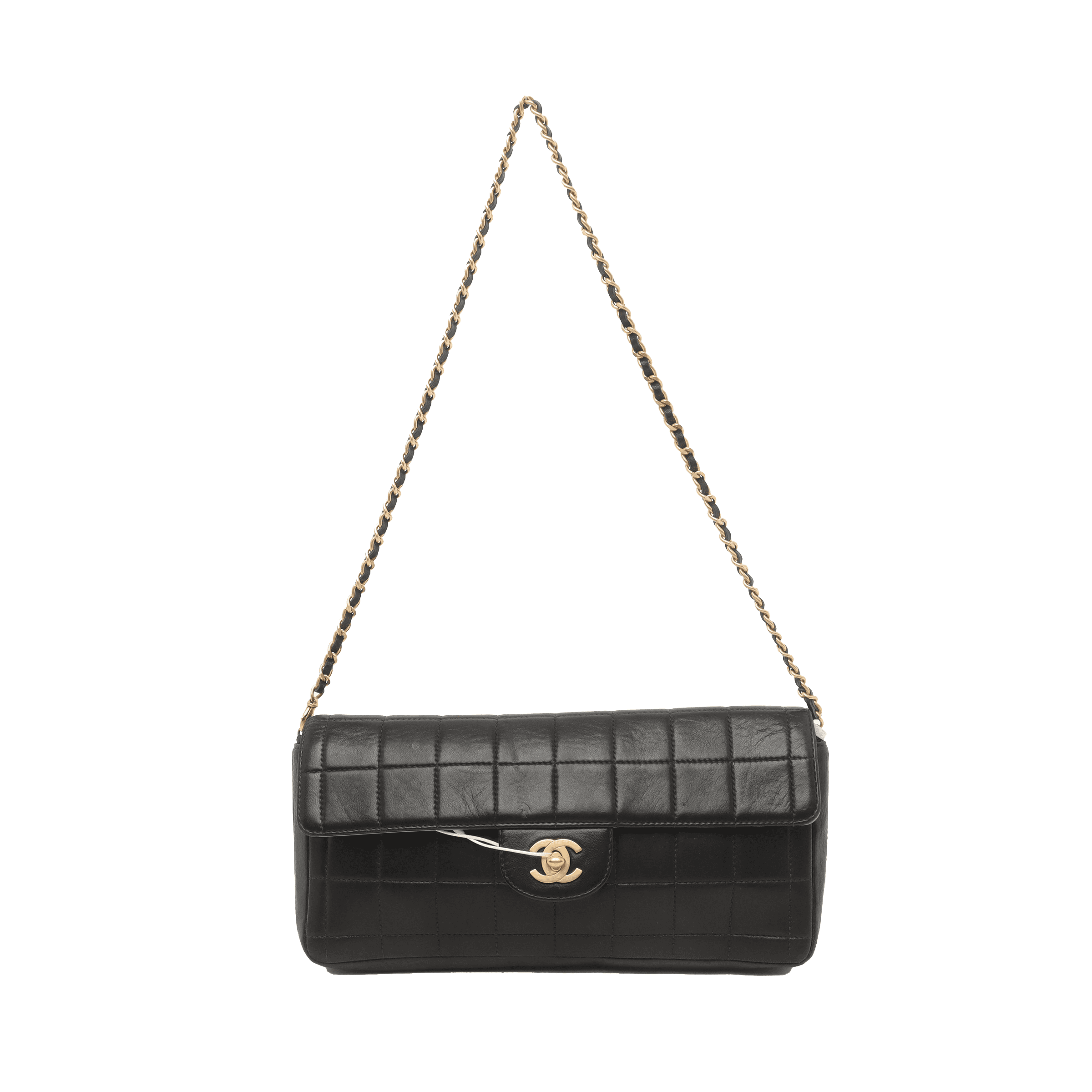 This charming Vintage Chanel East West Leather Shoulder Bag is a stylish mix of classy and casual. The elongated shape gives its “East West” name and the square cannage stitching gives its “Chocolate Bar” name. Gold-tone matelasse chain, and CC turn lock make it a  timeless piece that will always be in vogue! Grab it while you can and add a little retro chic to any outfit. #trendsetter