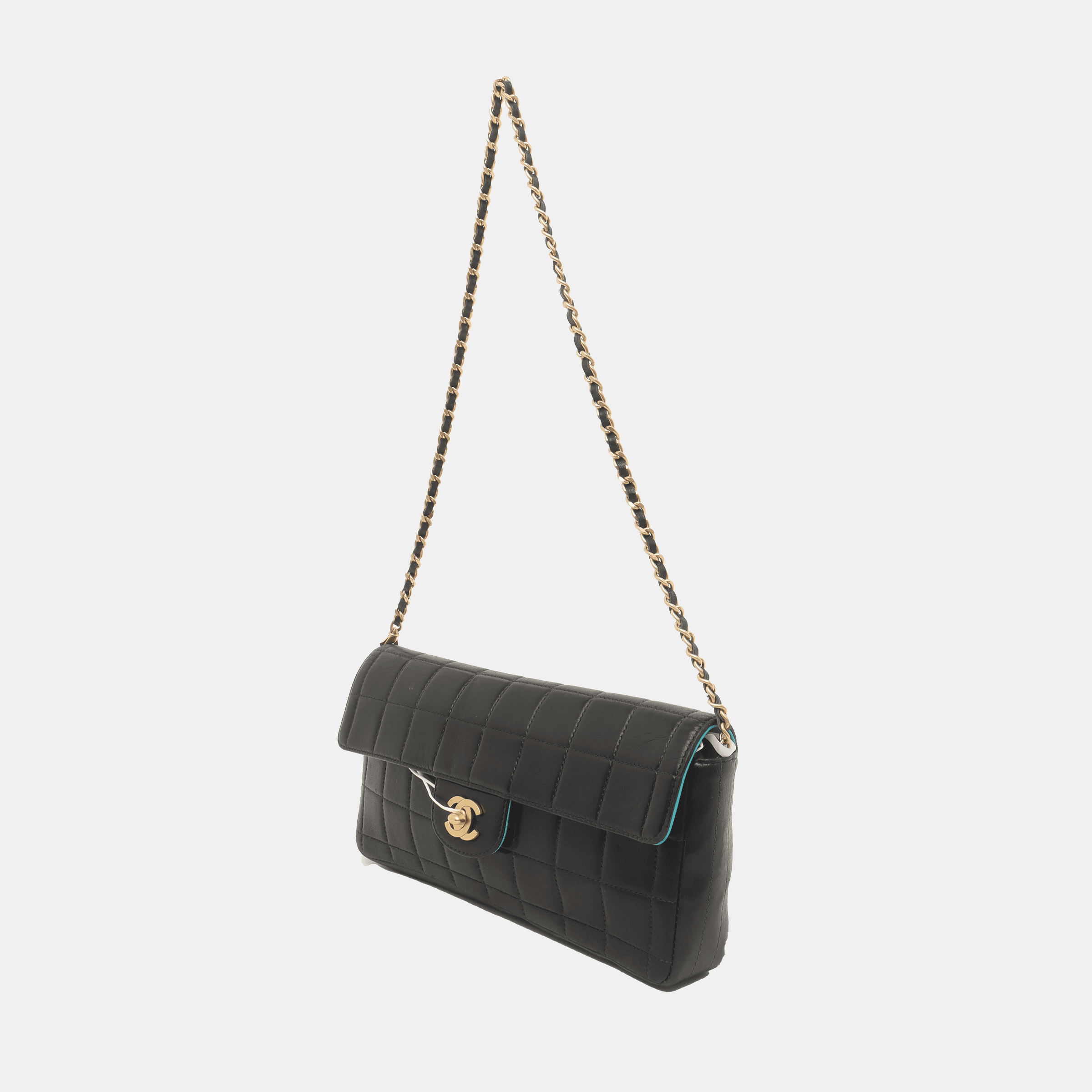 Chanel East West Chocolate Bar Black Leather Blue InteriorChanel East West Chocolate Bar Black Leather Blue Interior