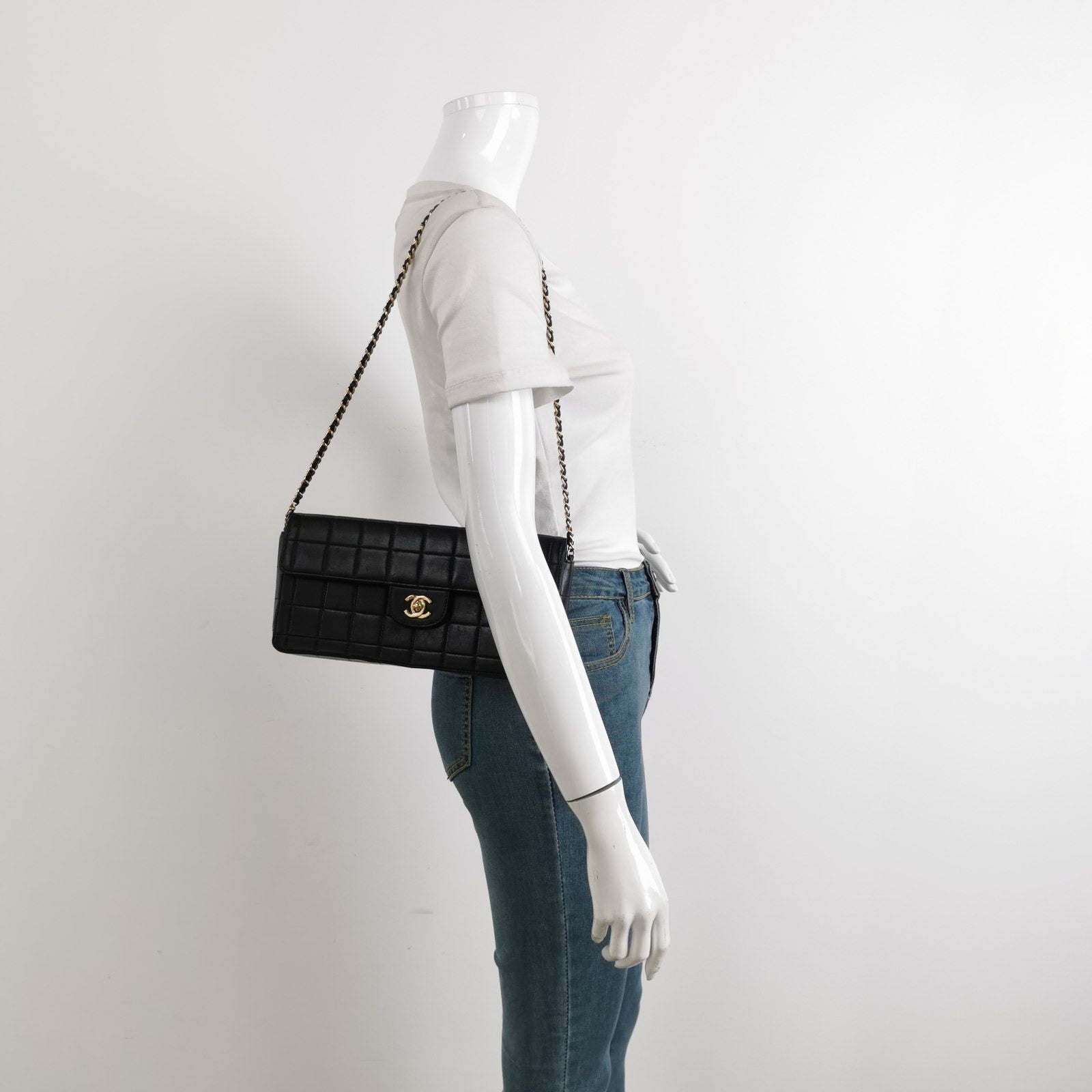 This charming Vintage Chanel East West Leather Shoulder Bag is a stylish mix of classy and casual. The elongated shape gives its “East West” name and the square cannage stitching gives its “Chocolate Bar” name. Gold-tone matelasse chain, and CC turn lock make it a timeless piece that will always be in vogue! Grab it while you can and add a little retro chic to any outfit. #trendsetter