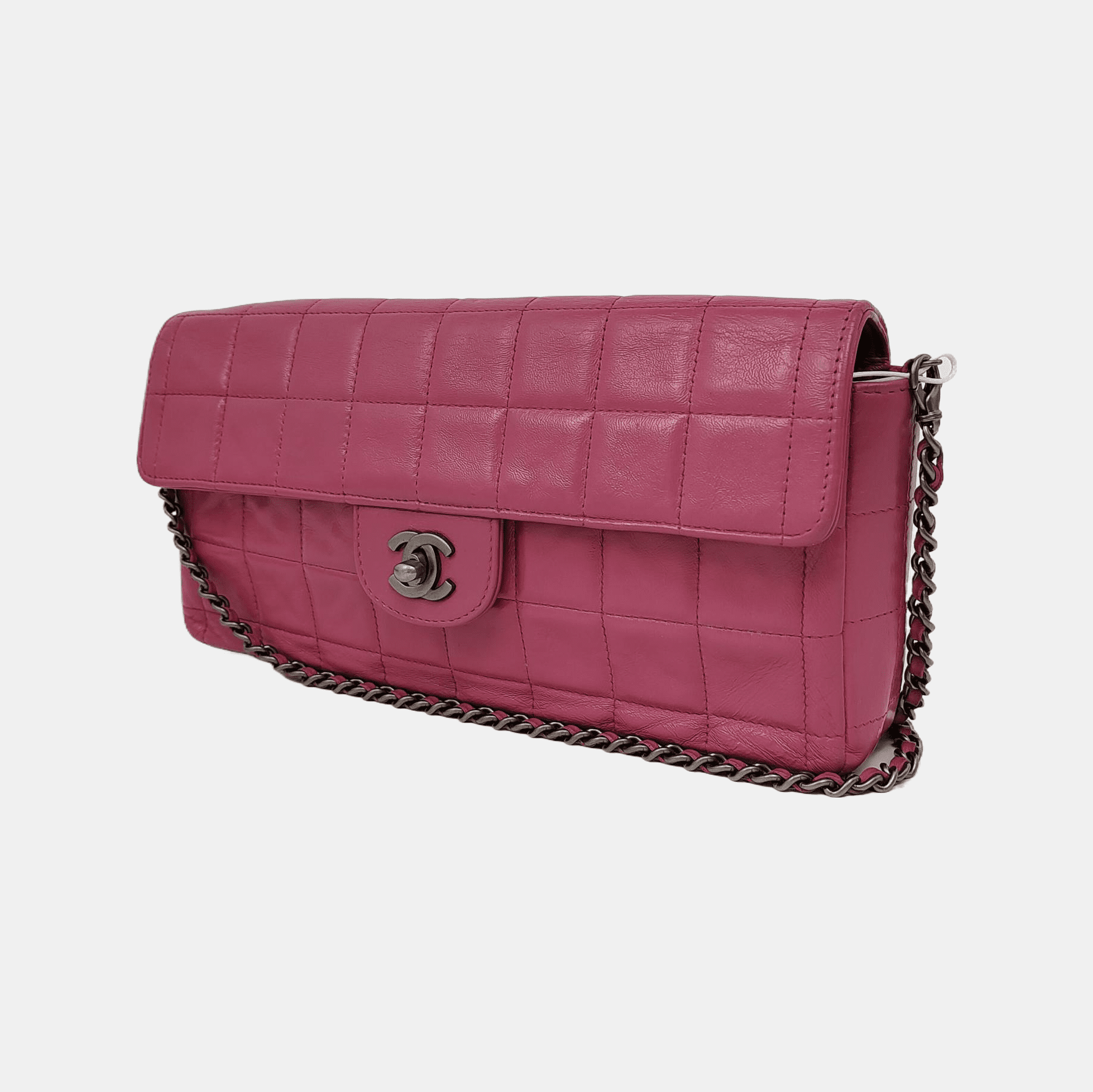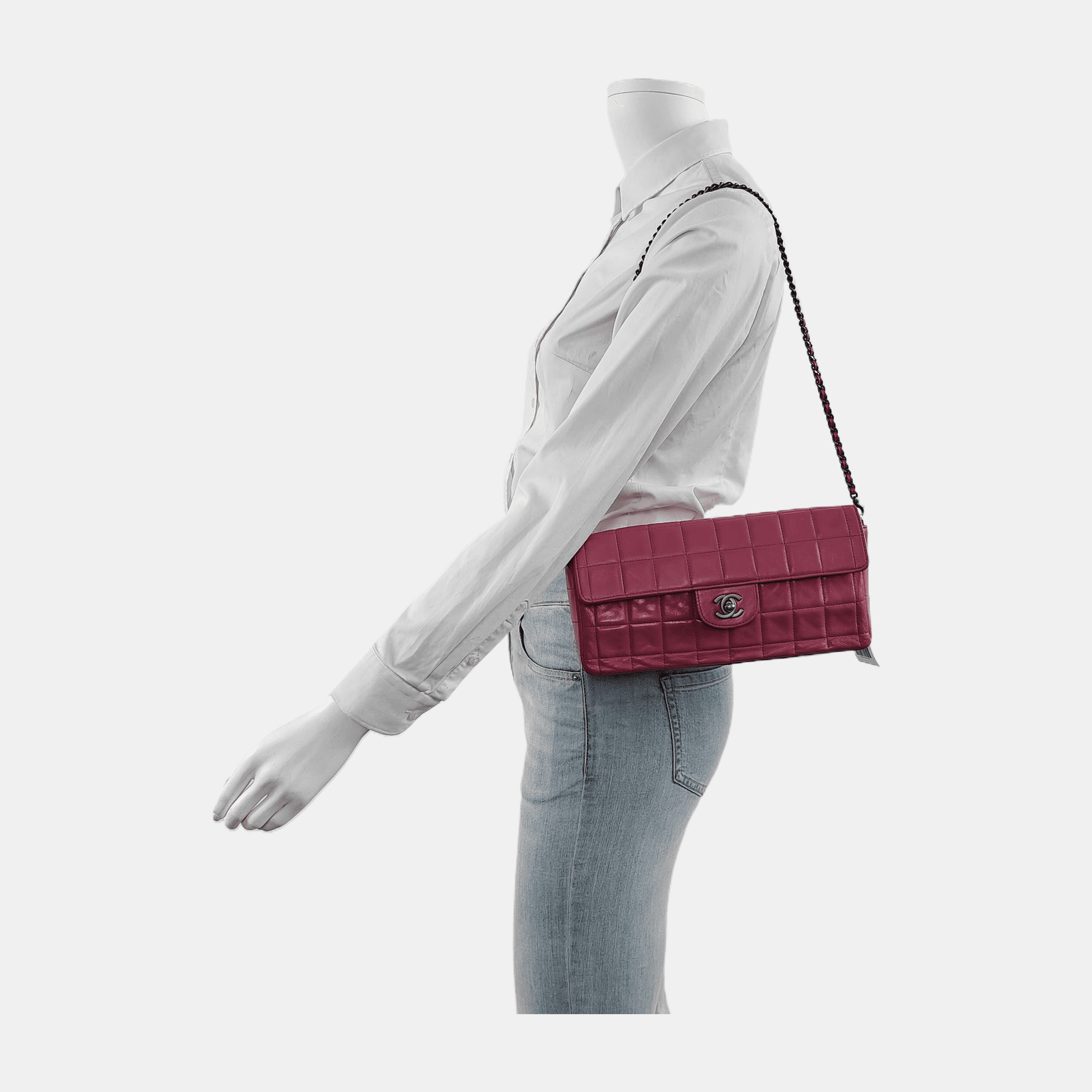This charming Vintage Chanel East West Leather Shoulder Bag is a stylish mix of classy and casual. The elongated shape gives its “East West” name and the square cannage stitching gives its “Chocolate Bar” name. Grab it while you can and add a little retro chic to any outfit. #trendsetter