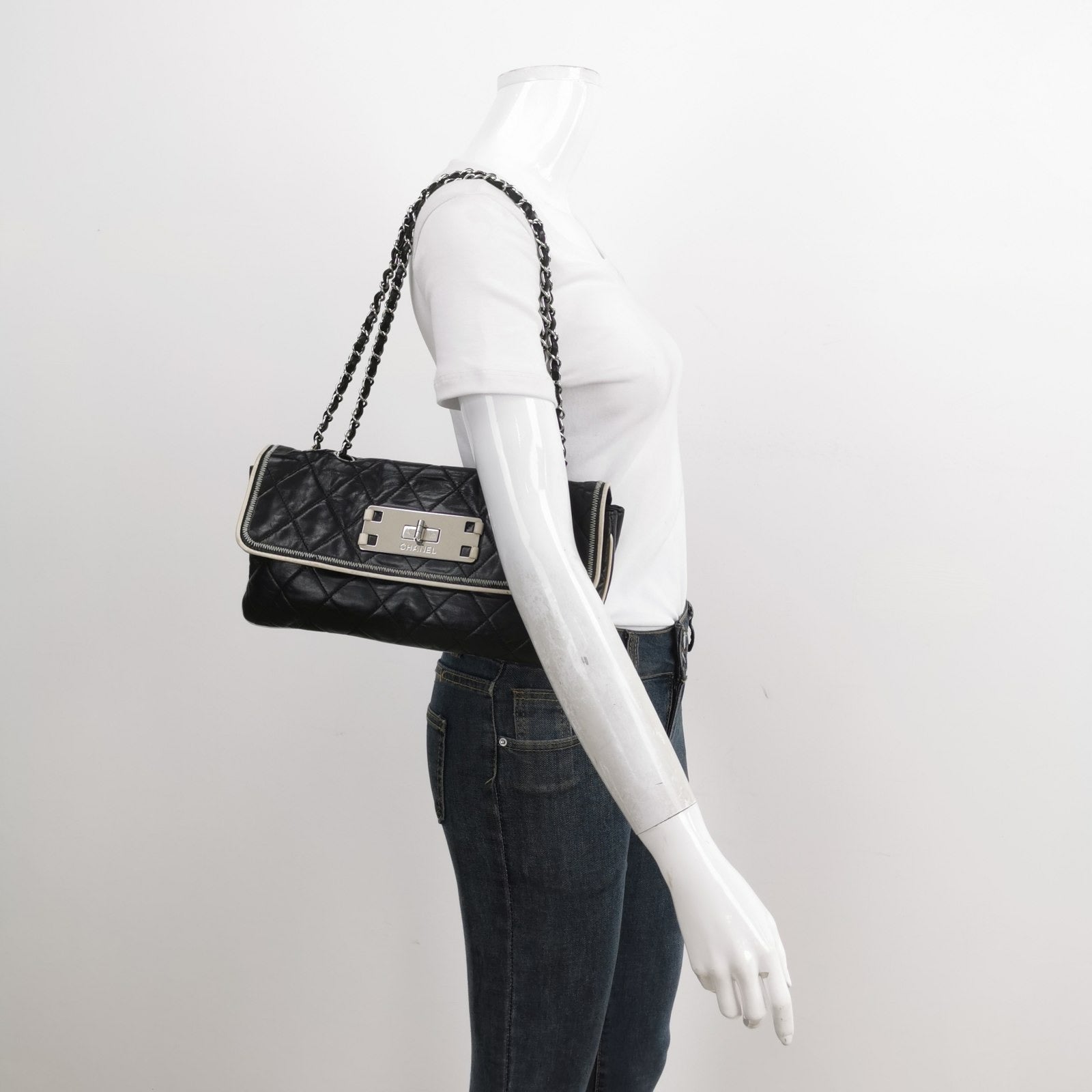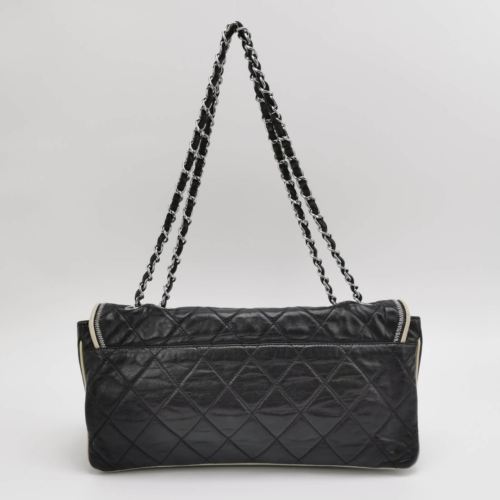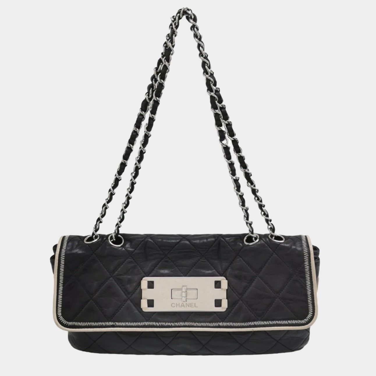 This charming Vintage Chanel East West Mademoiselle Flap Shoulder Bag is a stylish mix of classy and casual. It is adorned with silver 2.55 style hardware. Grab it while you can and add a little retro chic to any outfit. #trendsetter