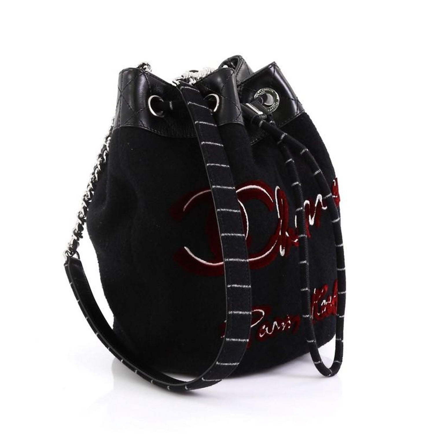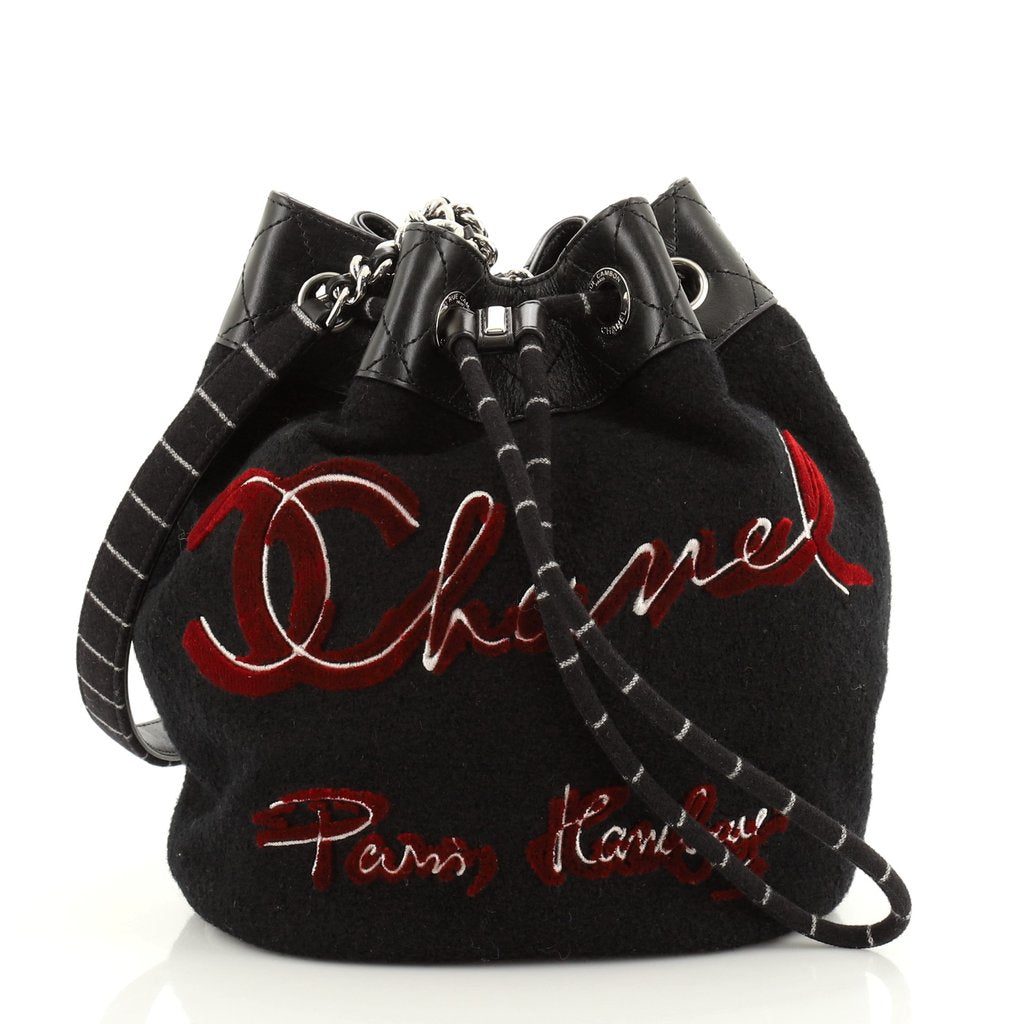This Chanel Paris-Hamburg Drawstring Bucket Bag Embroidered WoolÂ