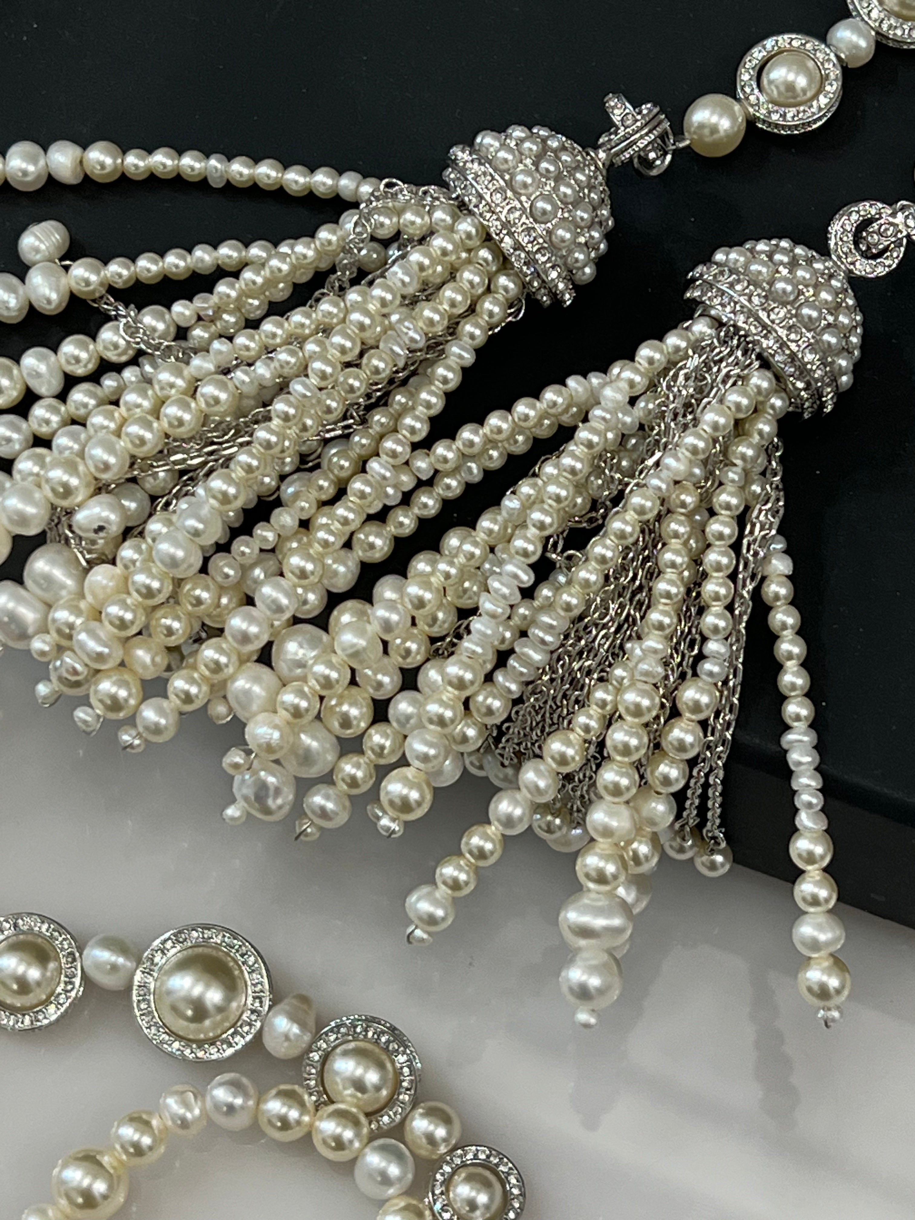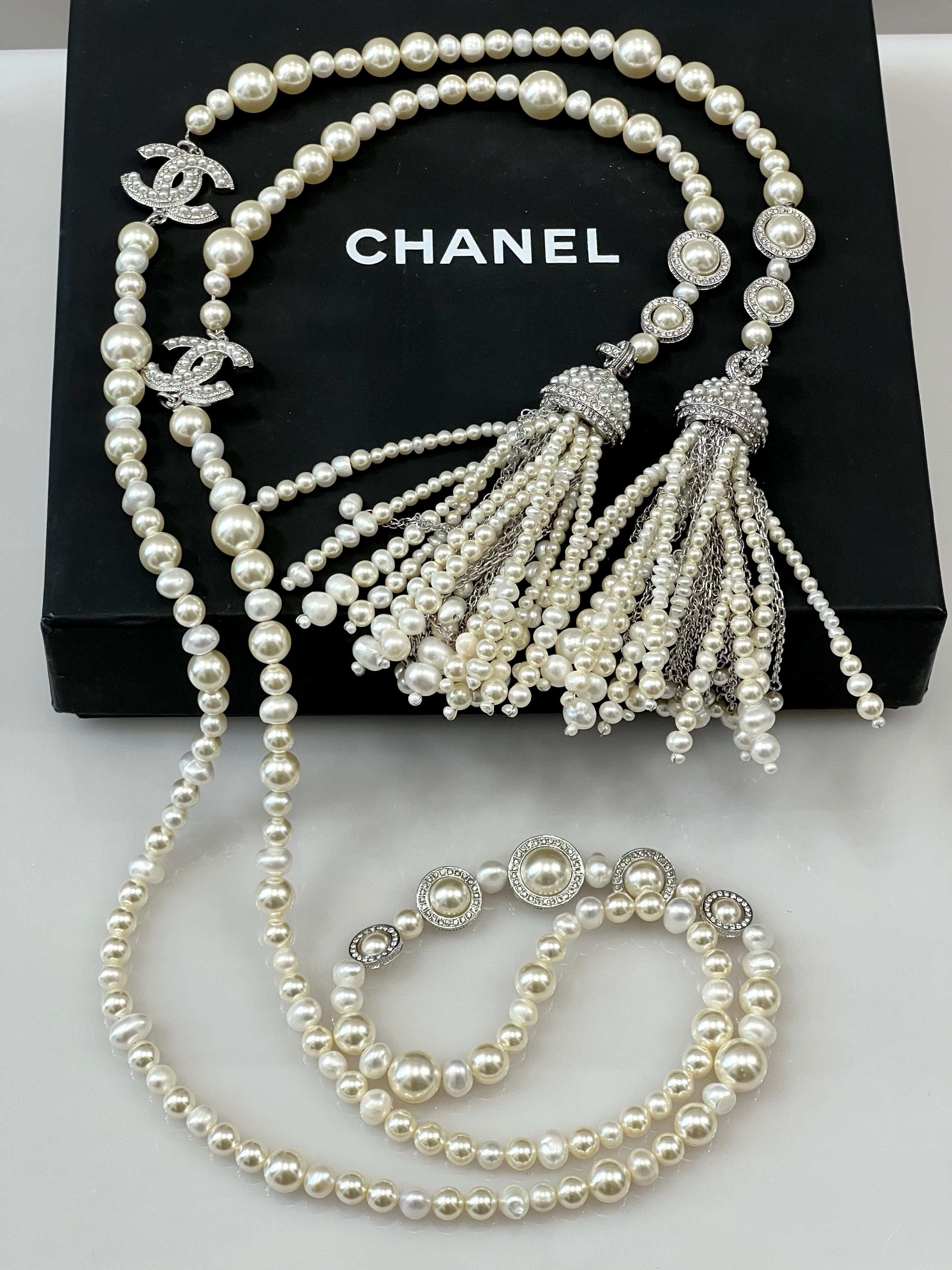 CHANEL FAUX PEARL CRYSTAL CC TASSLE NECKLACE/ BELT quantity