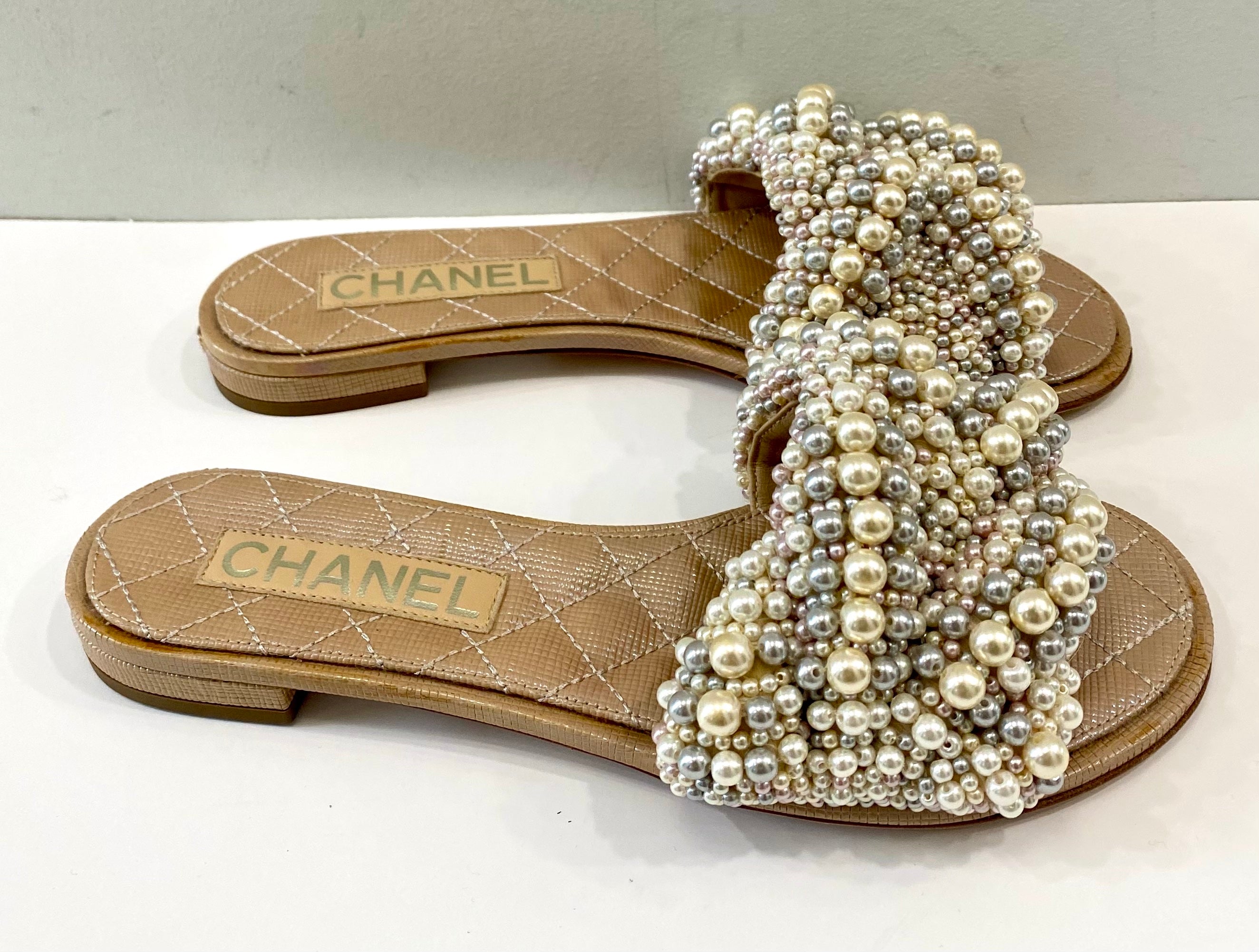 CHANEL FAUX PEARL FLAT MULESCHANEL FAUX PEARL FLAT MULES