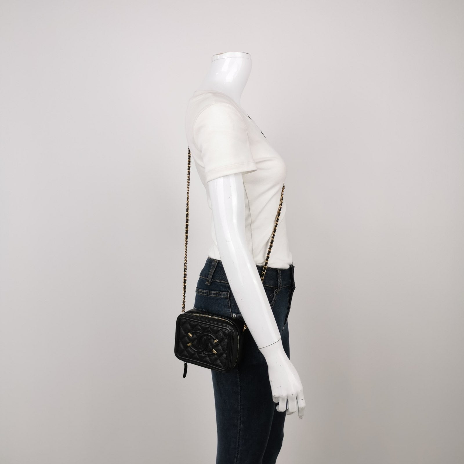 Chanel Filigree Mini Vanity Case 2018 Black Caviar Leather Bag