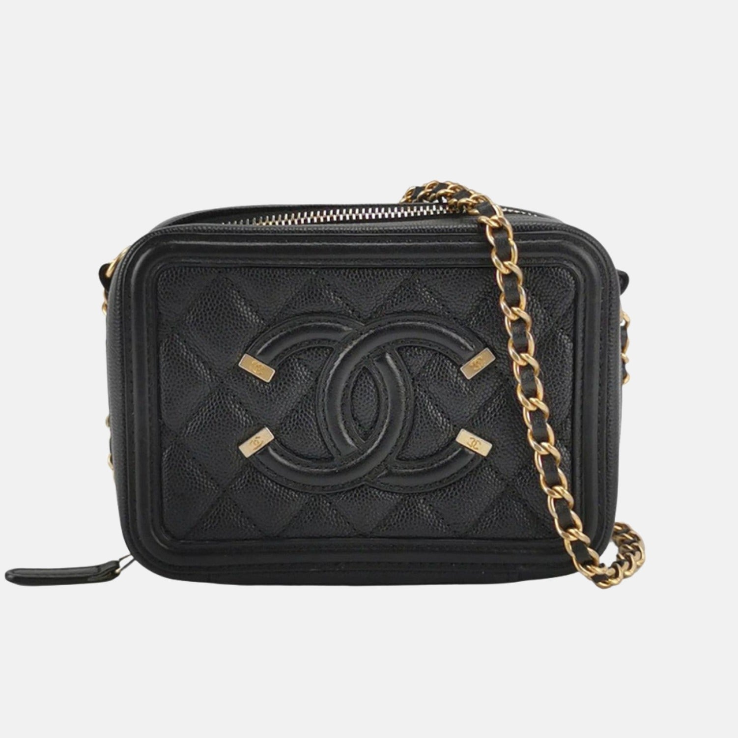 Chanel Filigree Mini Vanity Case 2018 Black Caviar Leather BagChanel Filigree Mini Vanity Case 2018 Black Caviar Leather Bag