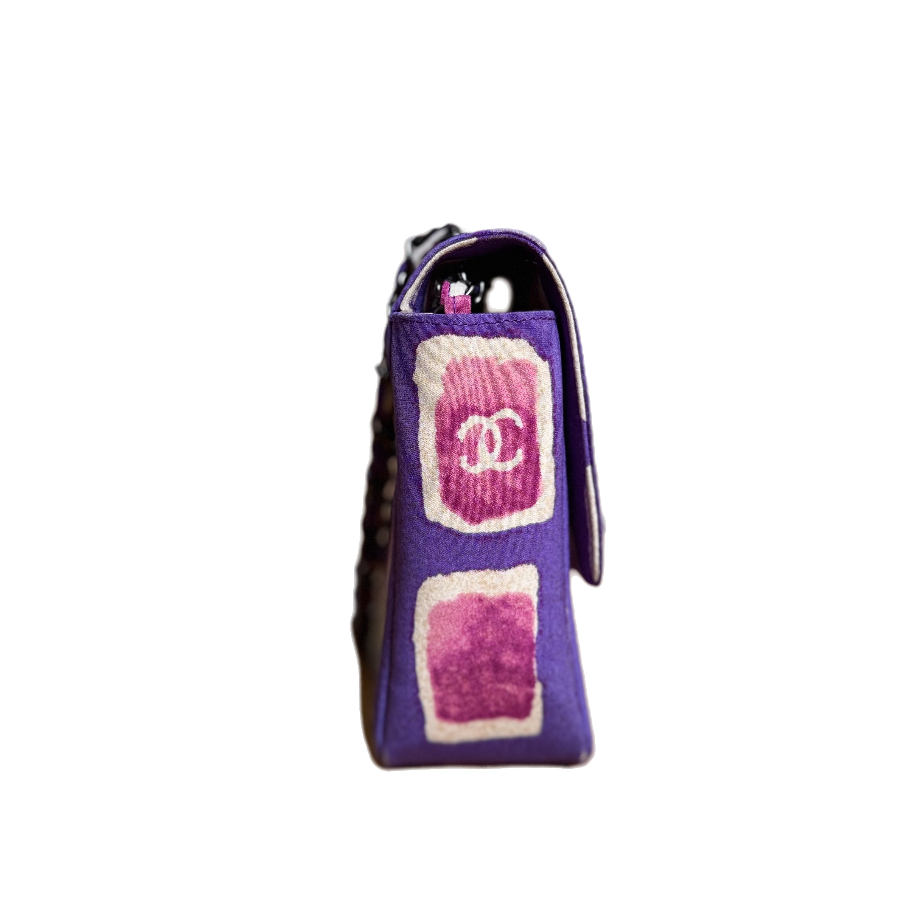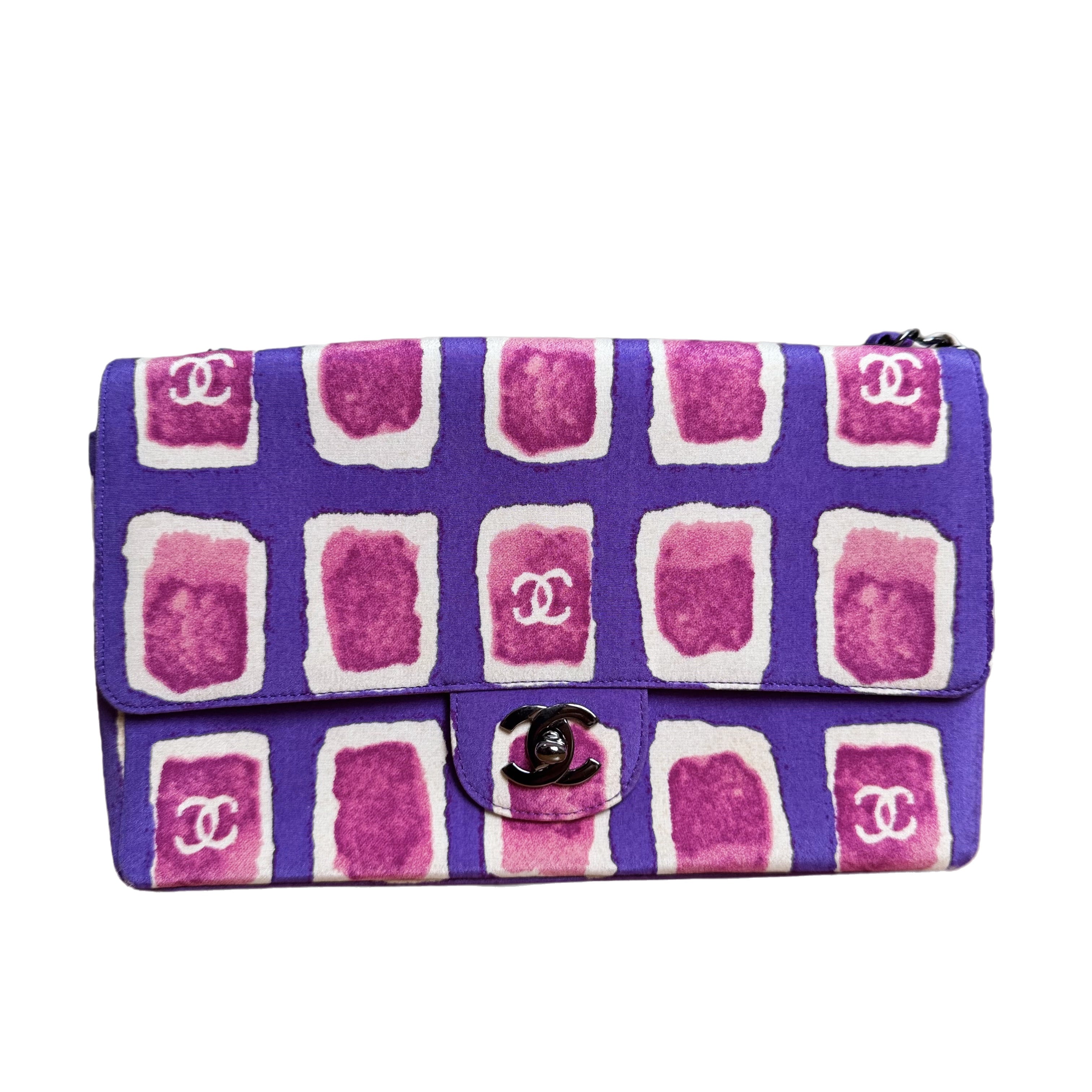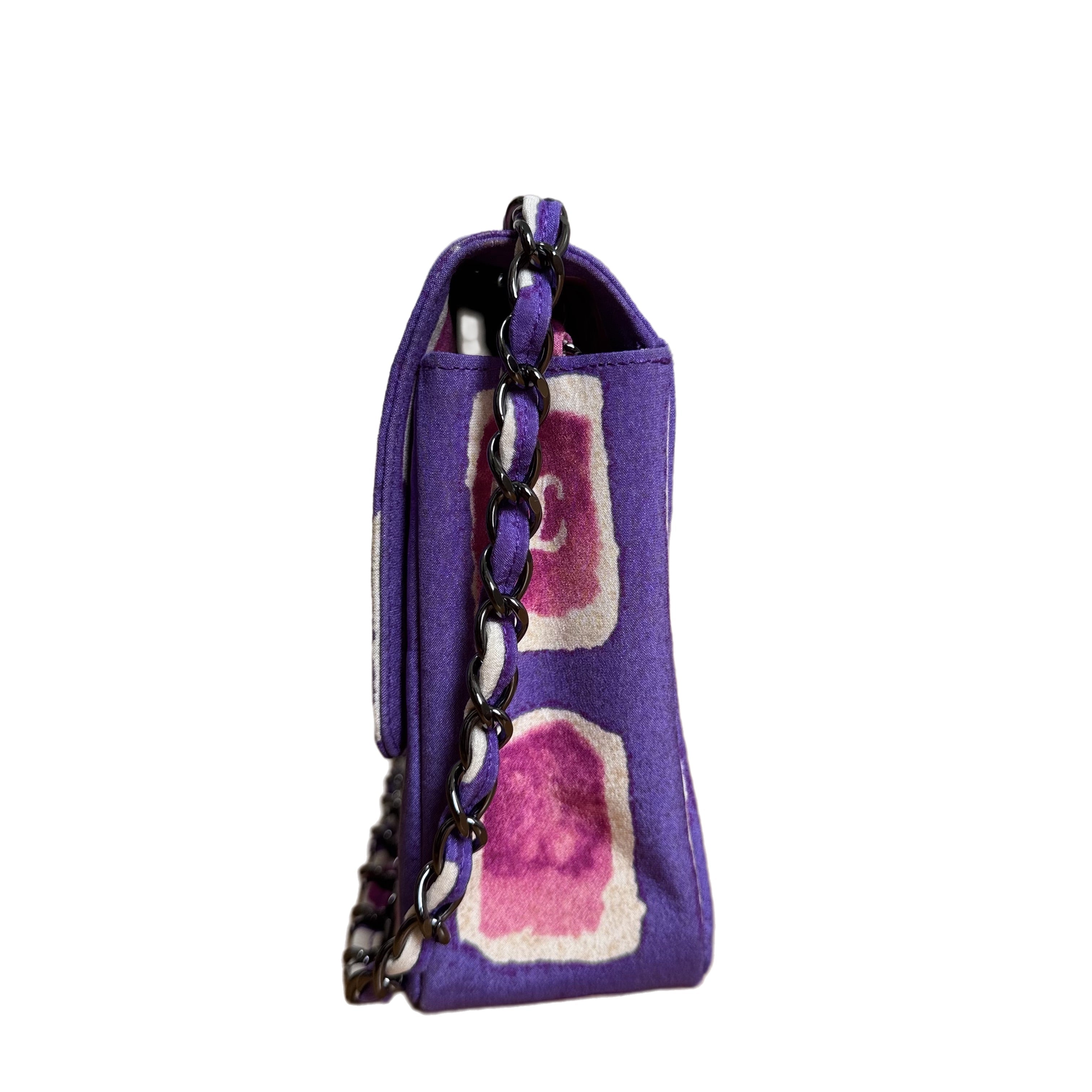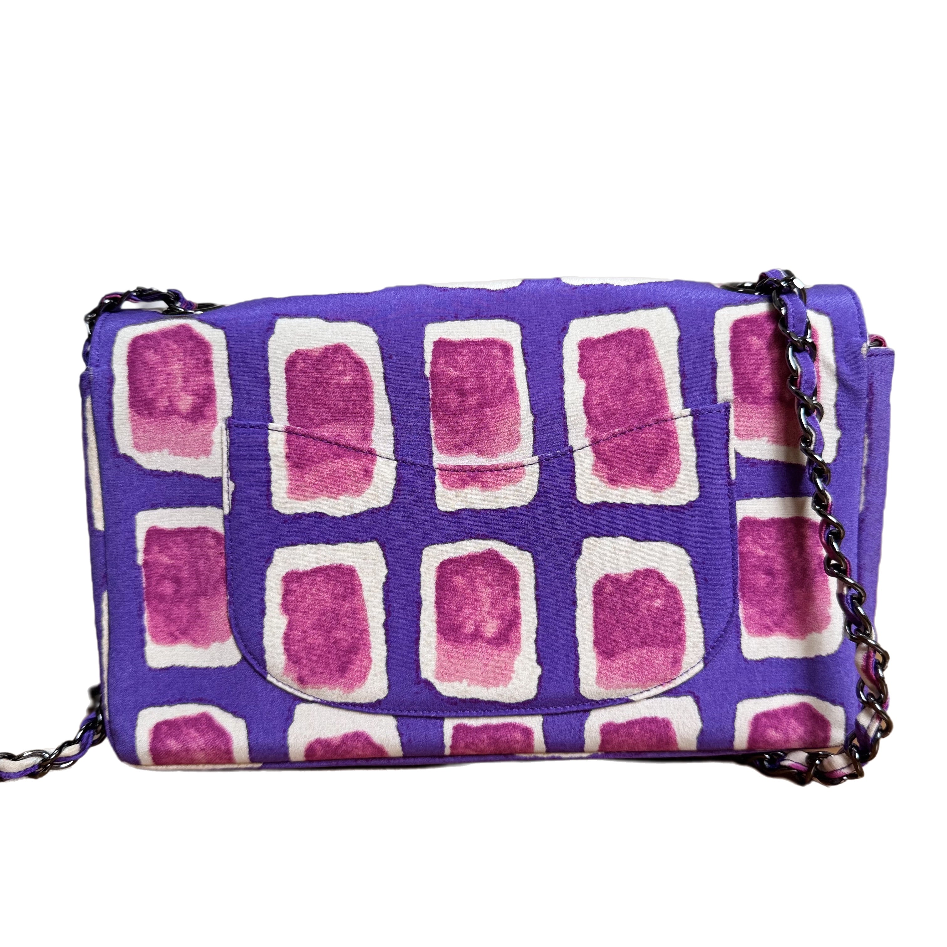 Chanel Flap Shoulder Bag Frame Purple Pink Cloth 2000-2002 Single ChainChanel Flap Shoulder Bag Frame Purple Pink Cloth 2000-2002 Single Chain