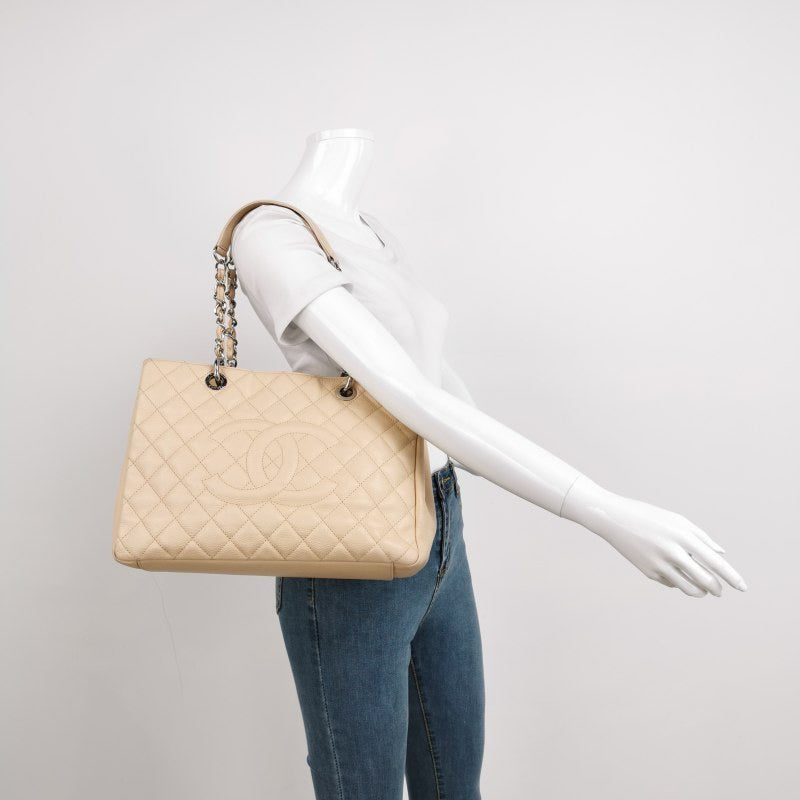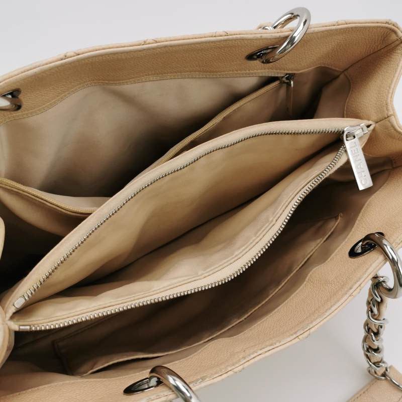 Discontinued in 2015, the Grand Shopping tote bag is one CHANEL rarity that is highly treasured. This version displays a classic design with signature diamond quilting in timeless beige caviar leather.
