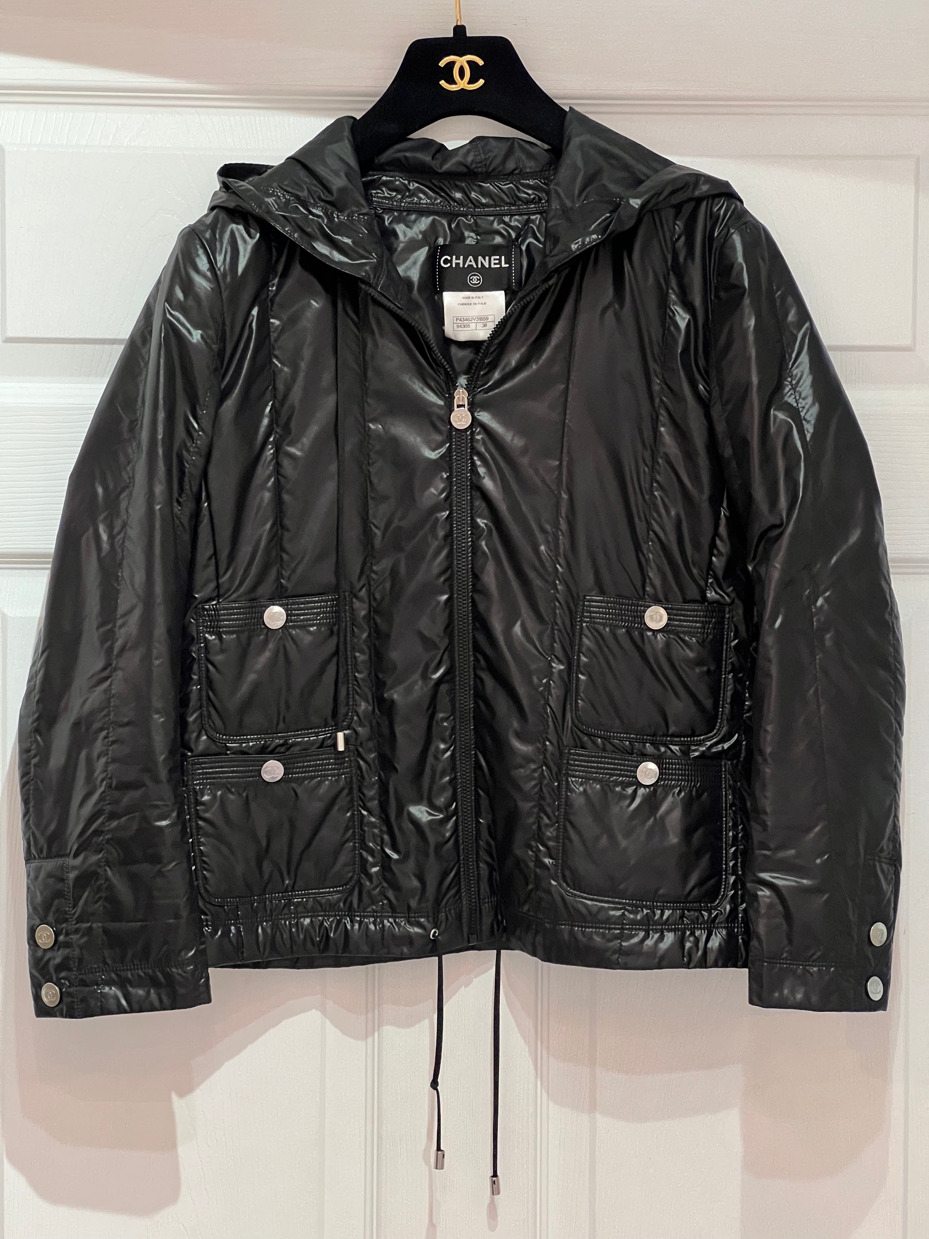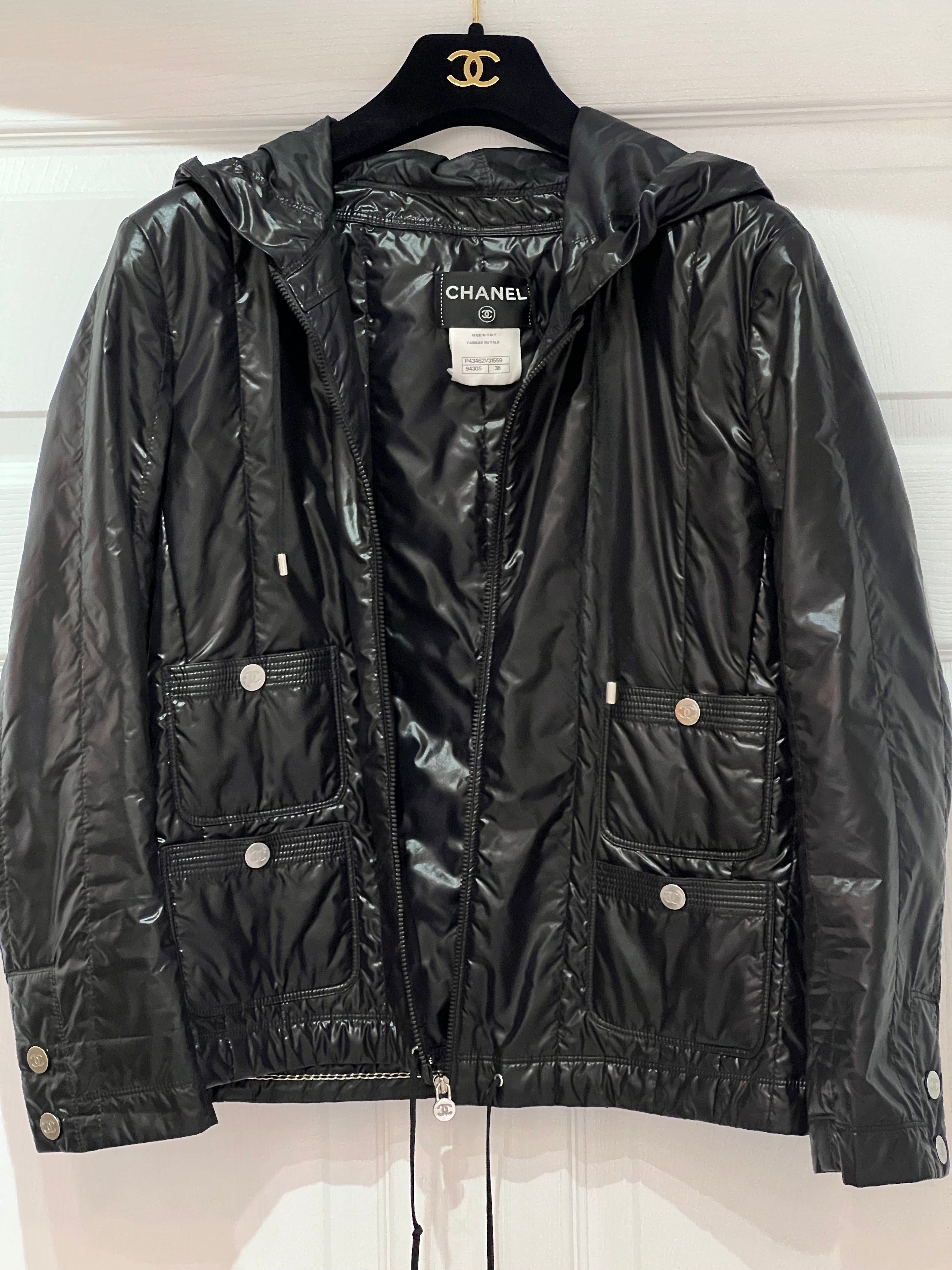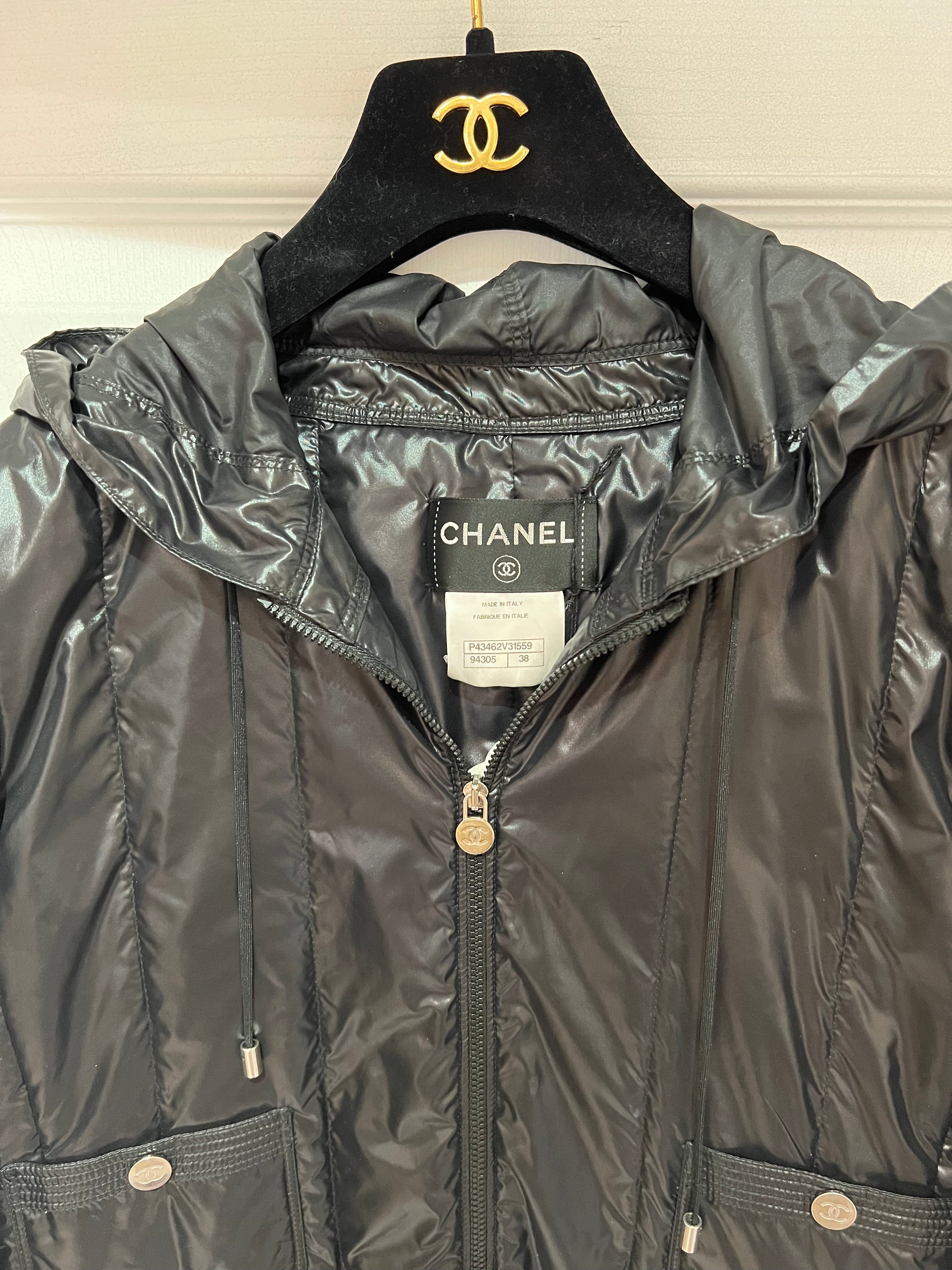Chanel jacket in black nylon (98%) and polyurethane (2%).