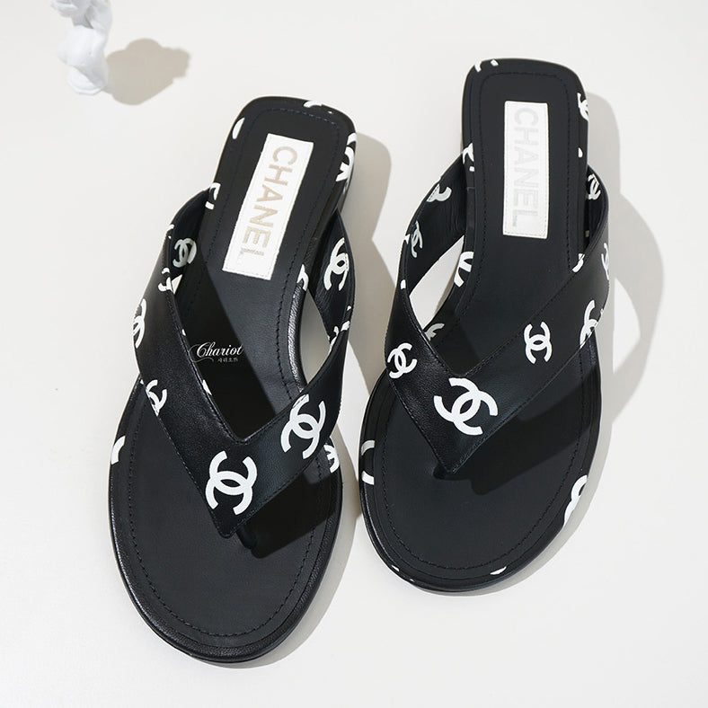 CHANEL INTERLOCKING CC LOGO LAMBSKIN SLIDES