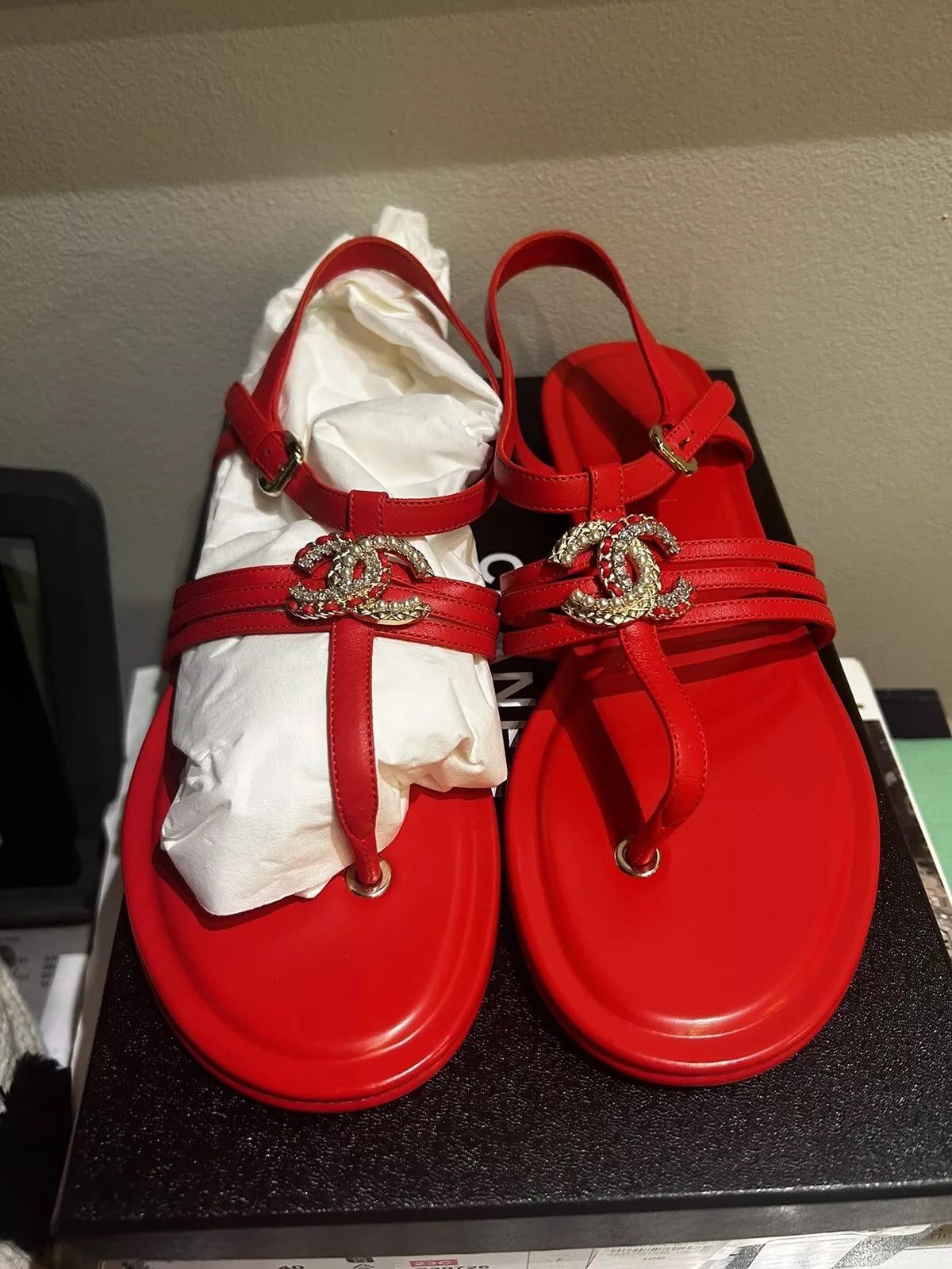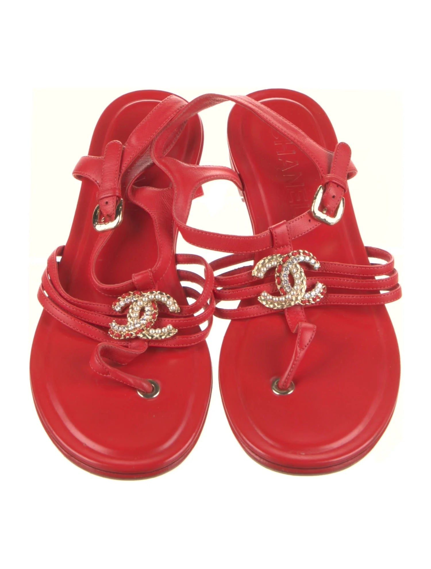 - Chanel Leather T-Strap Sandals