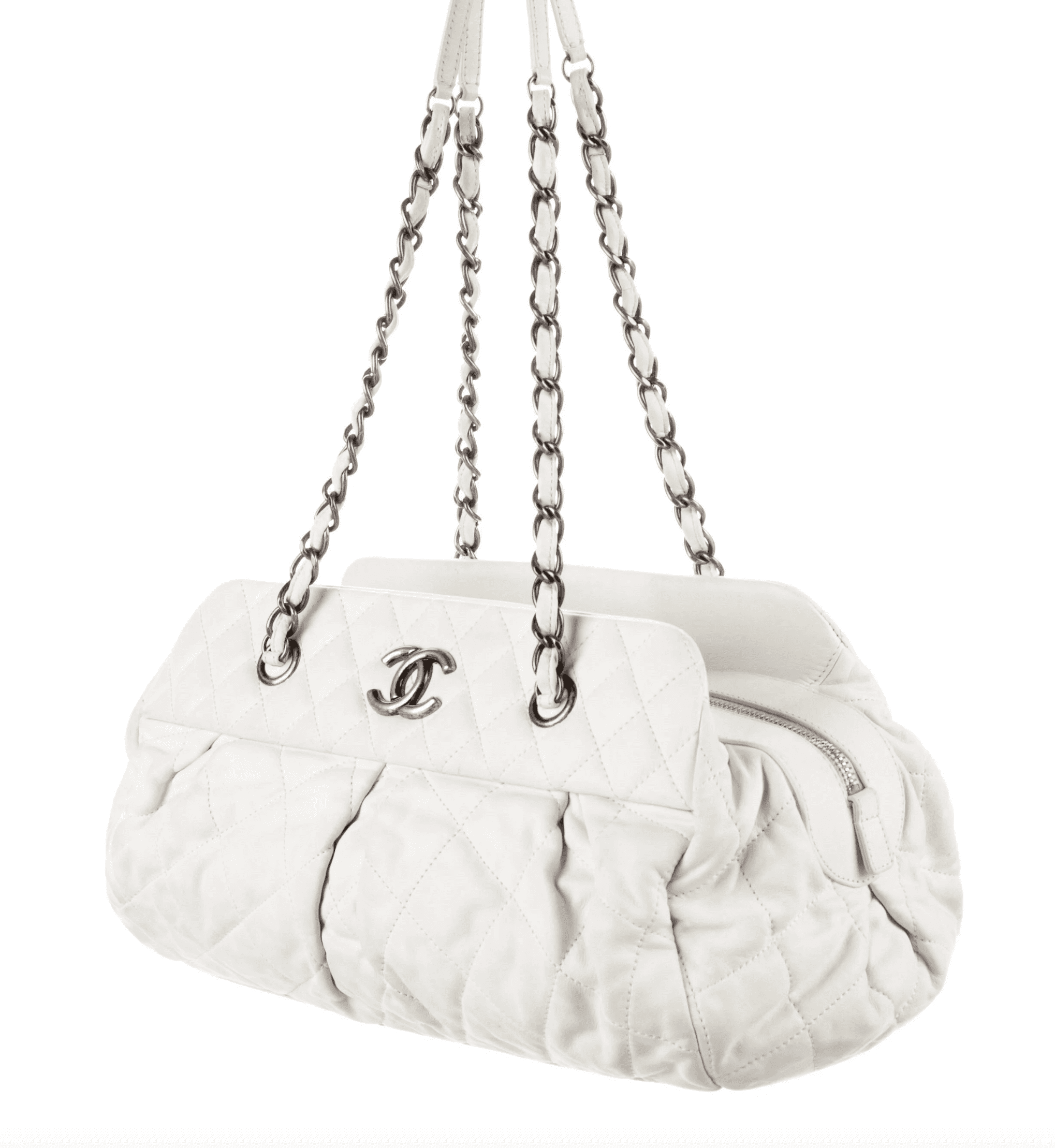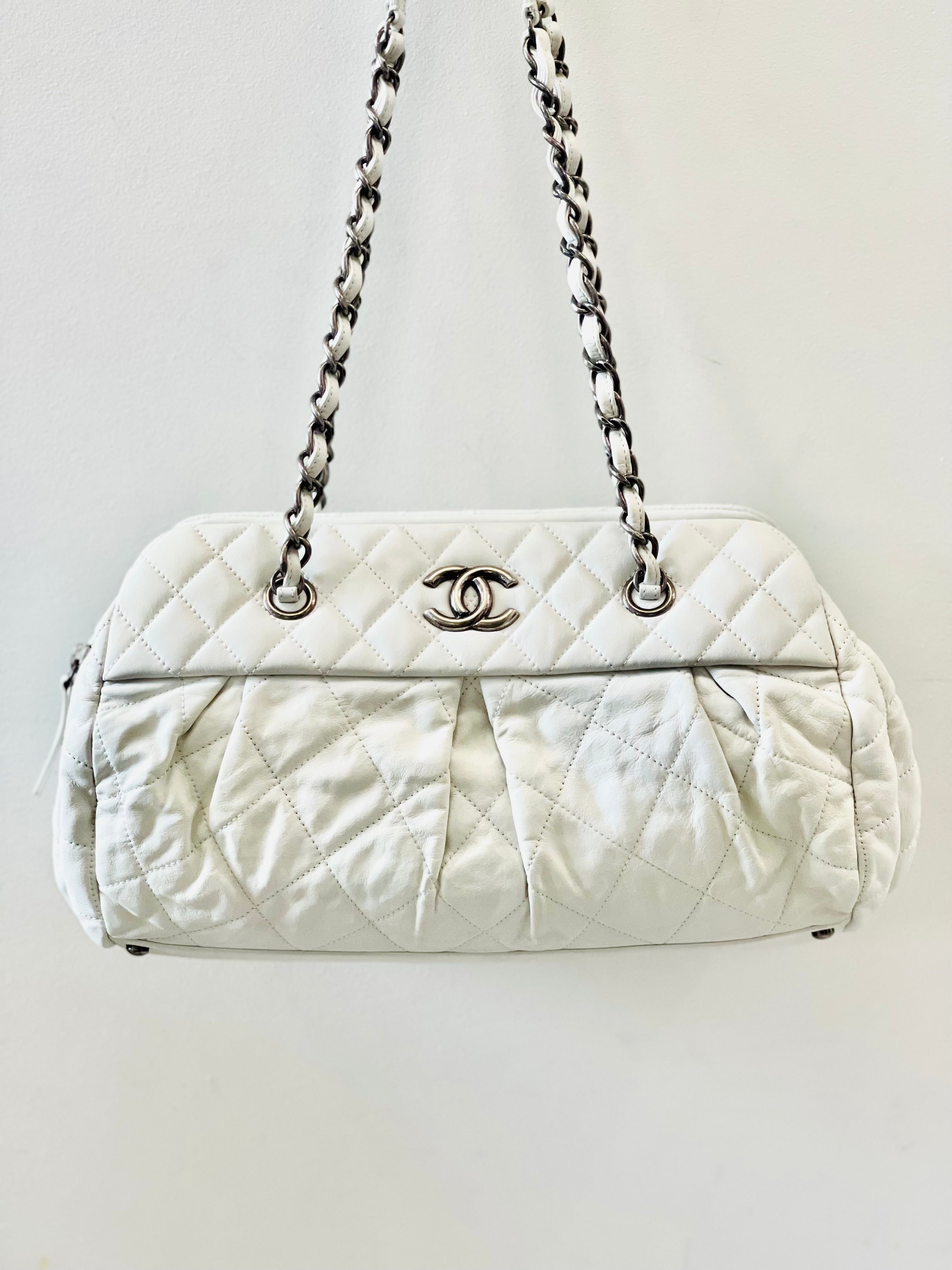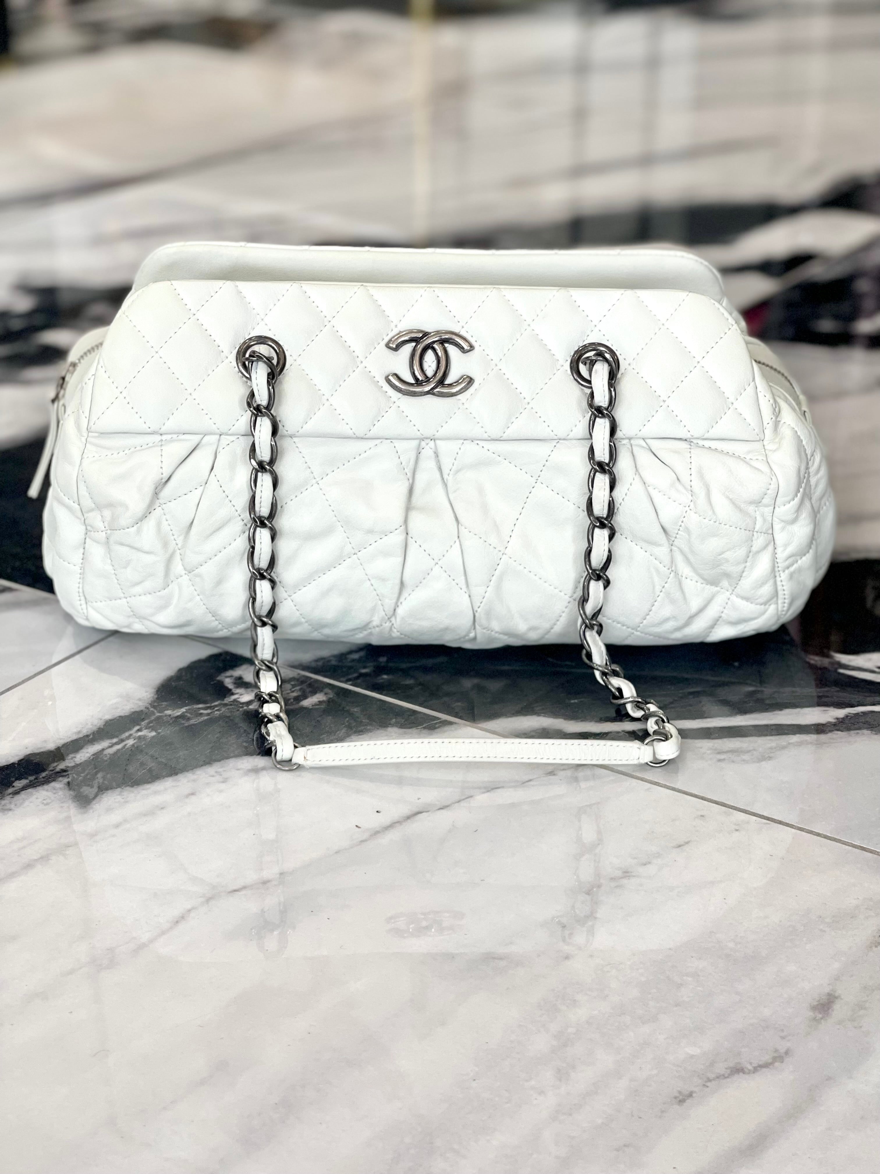 CHANEL Iridescent Quilted Calfskin Medium Bowler Bag-Winter White
