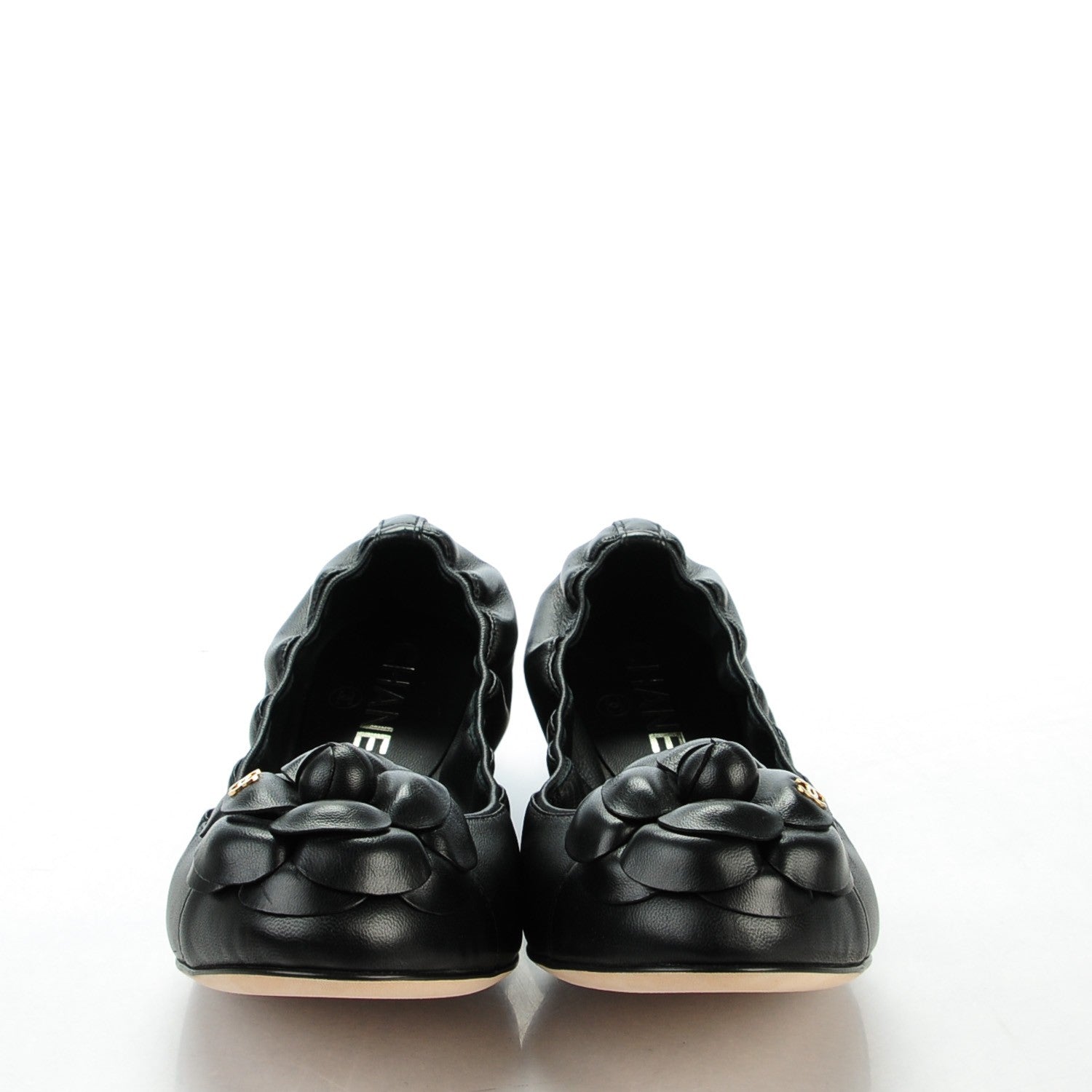 CHANEL LAMBSKIN CC CAMELLIA ELASTIC FLAT BALLERINA SHOES