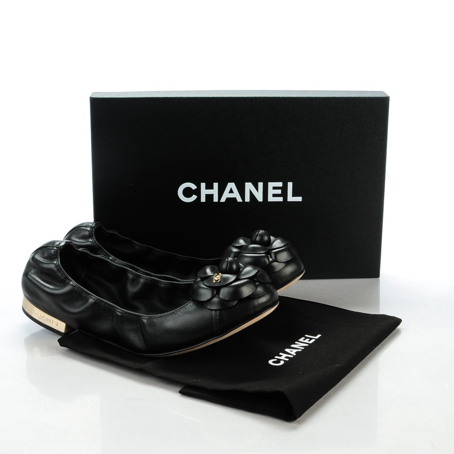 Stylish flats, crafted in Black Lambskin Leather with a Camellia Flower on front, These are marvelous flats with a timeless style only from Chanel!
