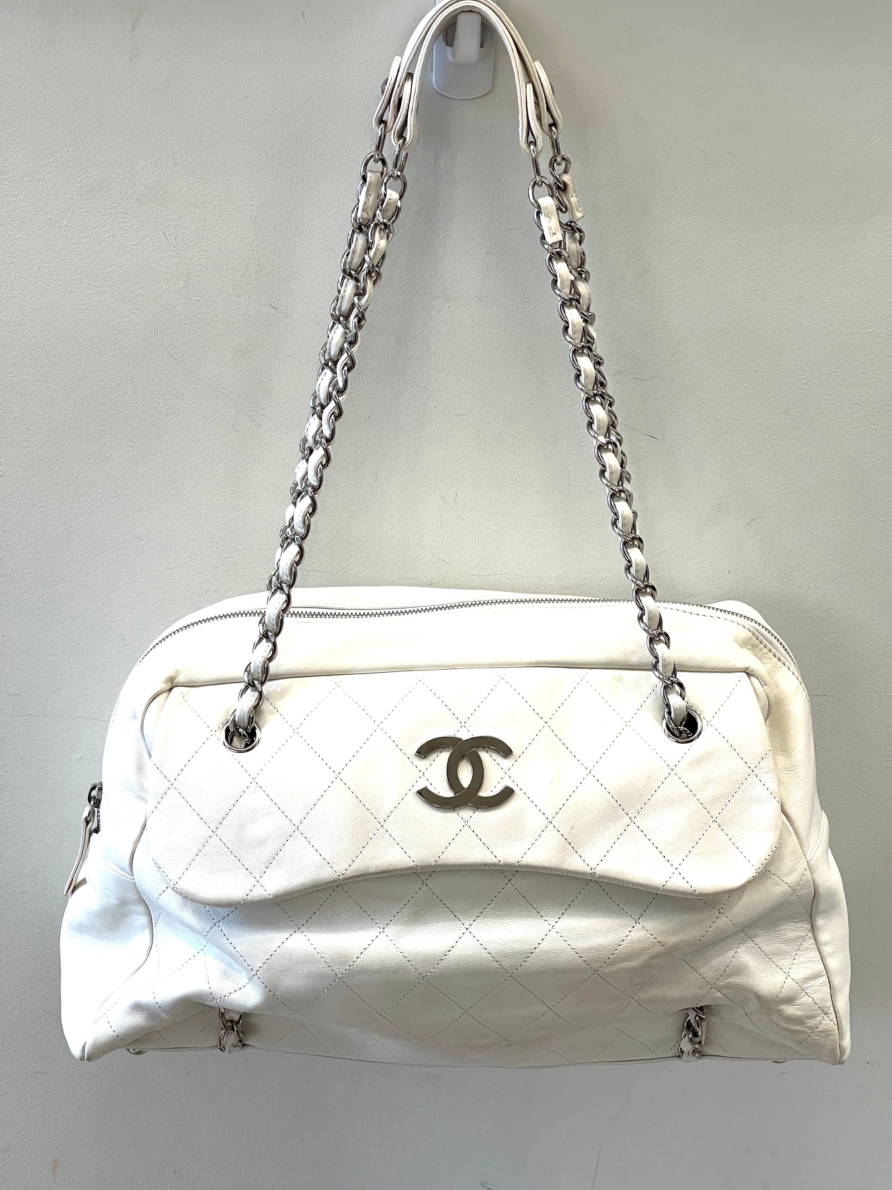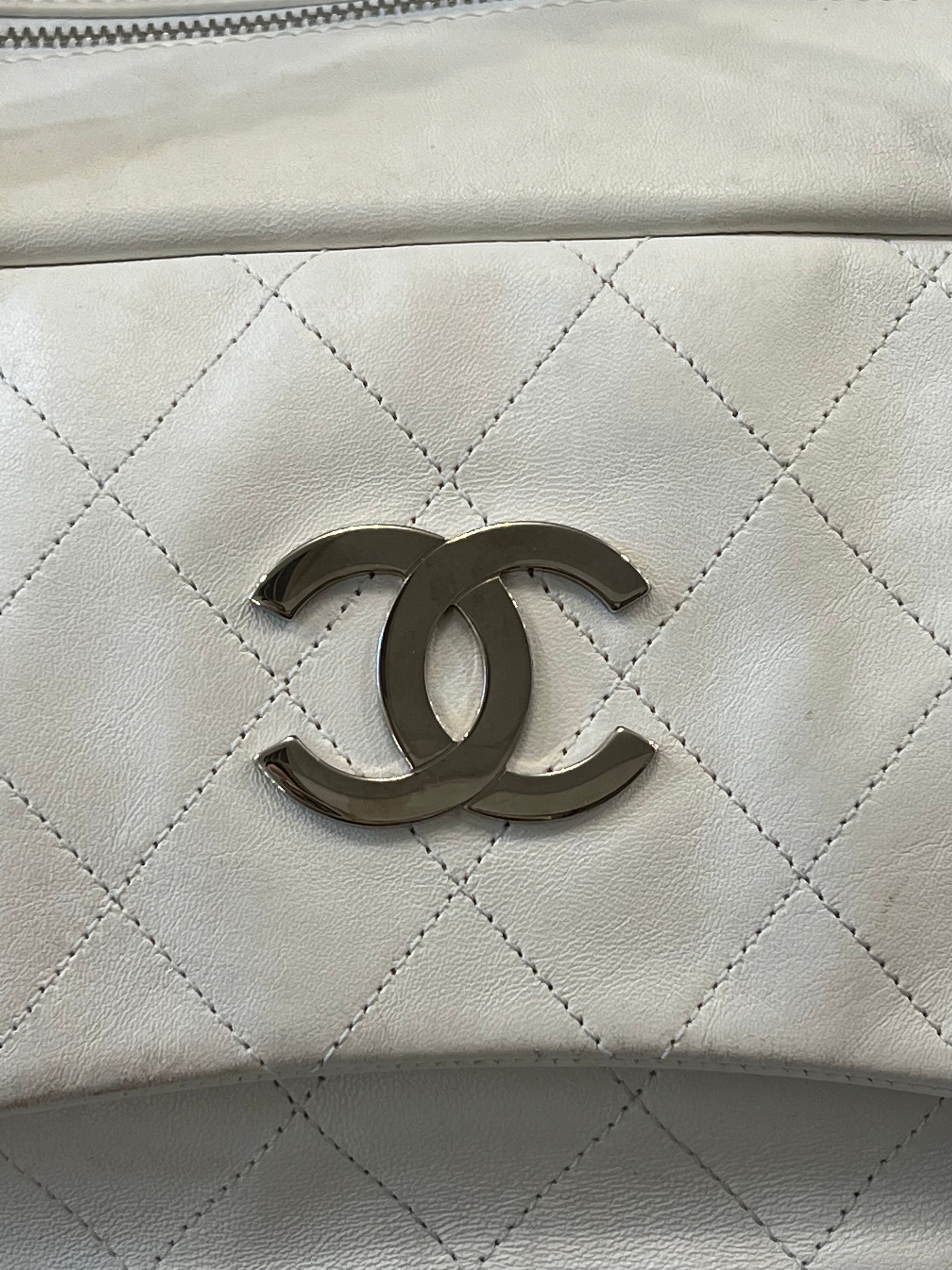 The exterior of the bag features Chanel’s iconic quilted design with a large CC logo stitched on the front.
