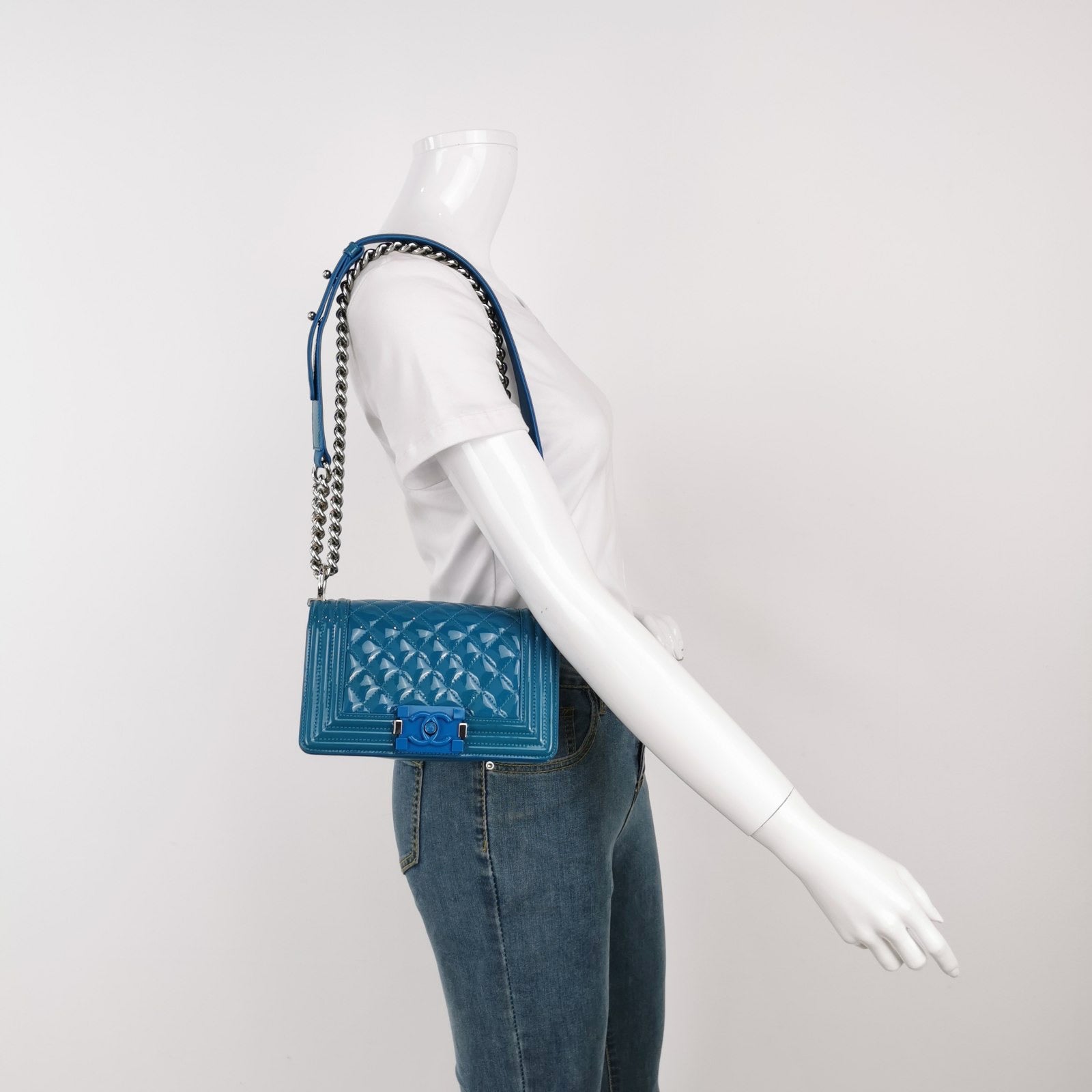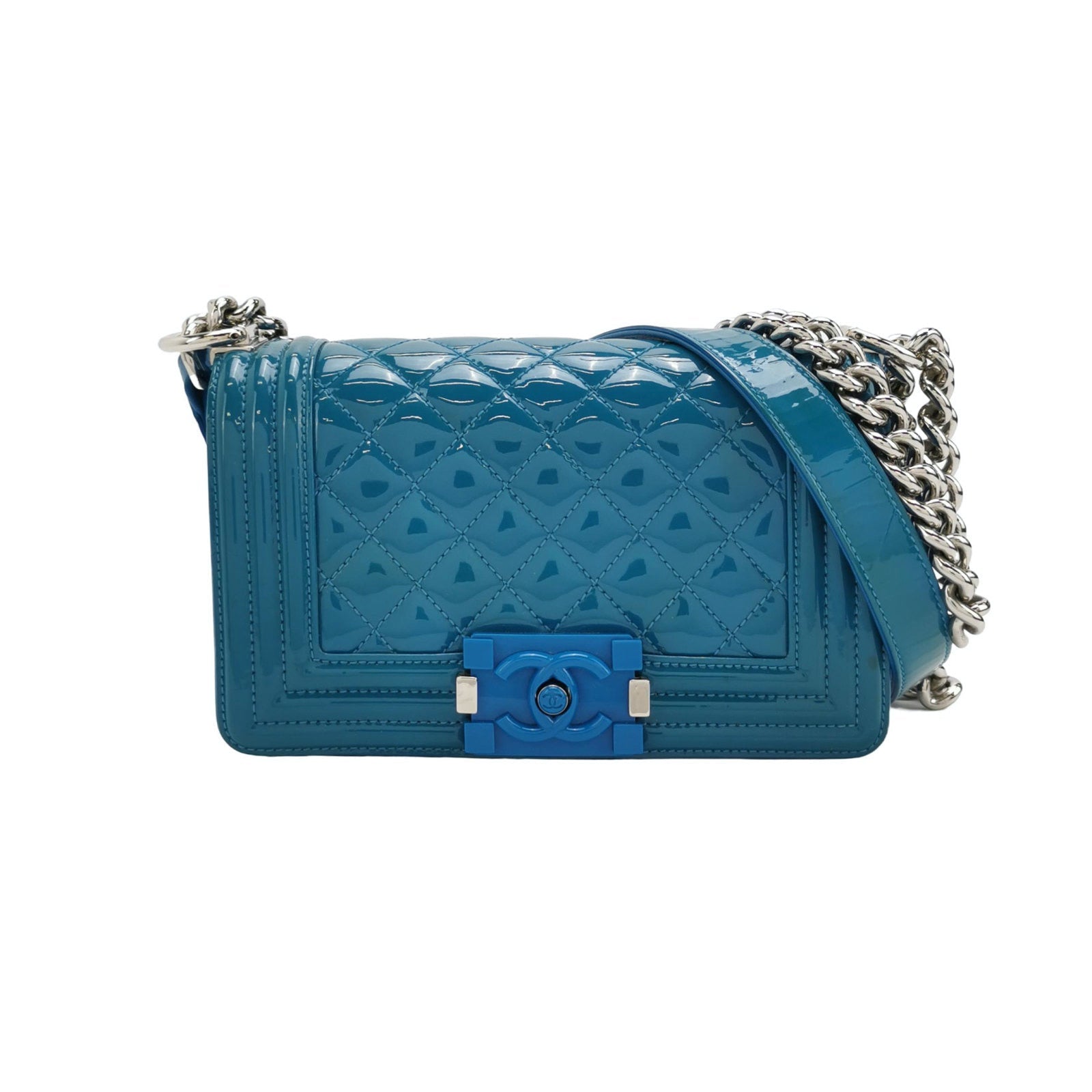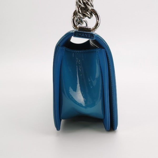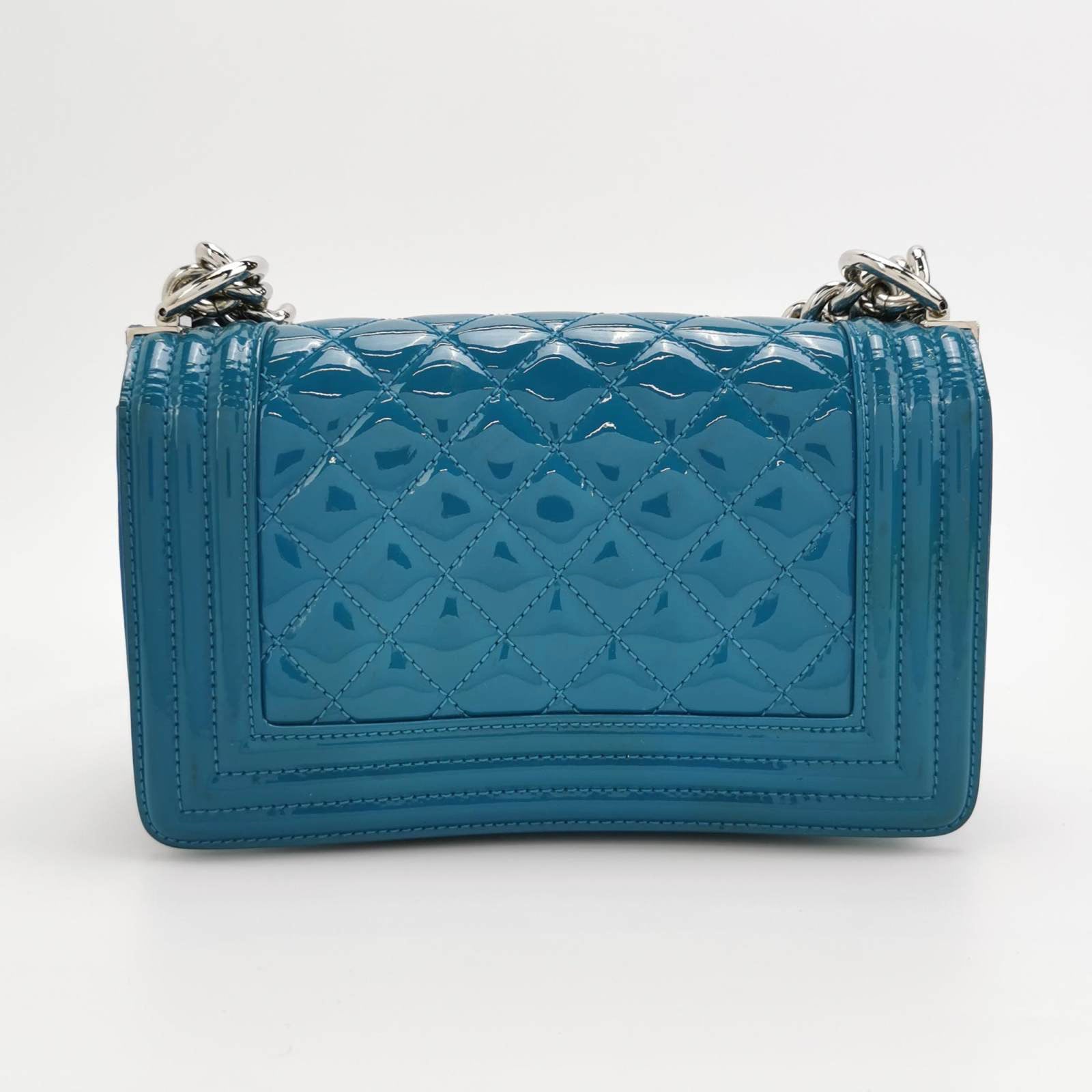 Very good condition with signs of use. This may include fading of material or plating. Scrapes on the leather around the corners and edges. Scratches on the hardware. There is some uniform discolouration of the patent leather through out.Â