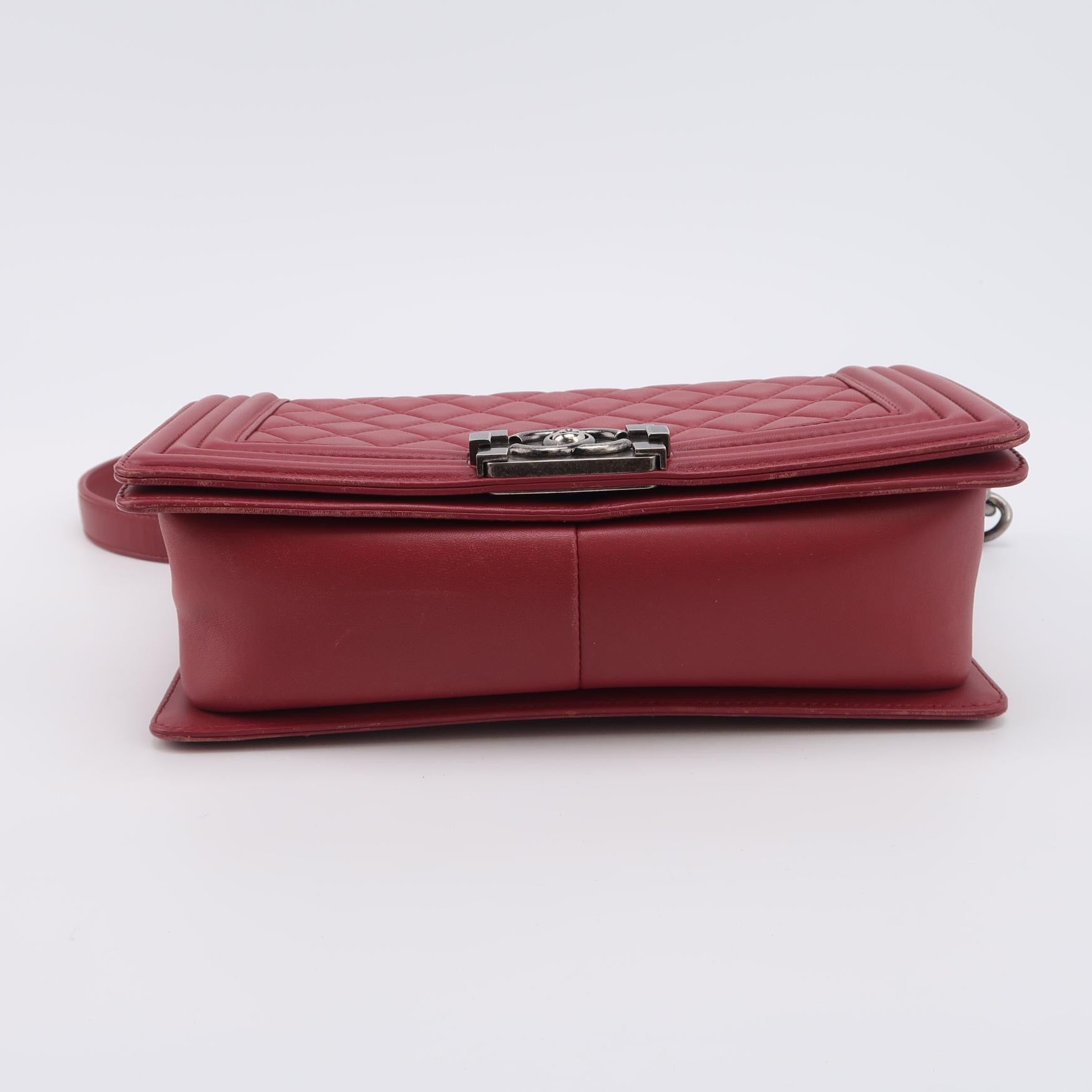 Constructed from black lambskin and adorned with silver gunmetal chains, this Chanel Enchained Boy Bag boasts both style and functionality. The iconic boy lock and famous Chanel Diamond quilting adorn the exterior, while the interior offers ample storage with two pockets and a zipped compartment. With a chain and leather shoulder strap, this bag is a perfect blend of edgy and practical for smart casual wear.
