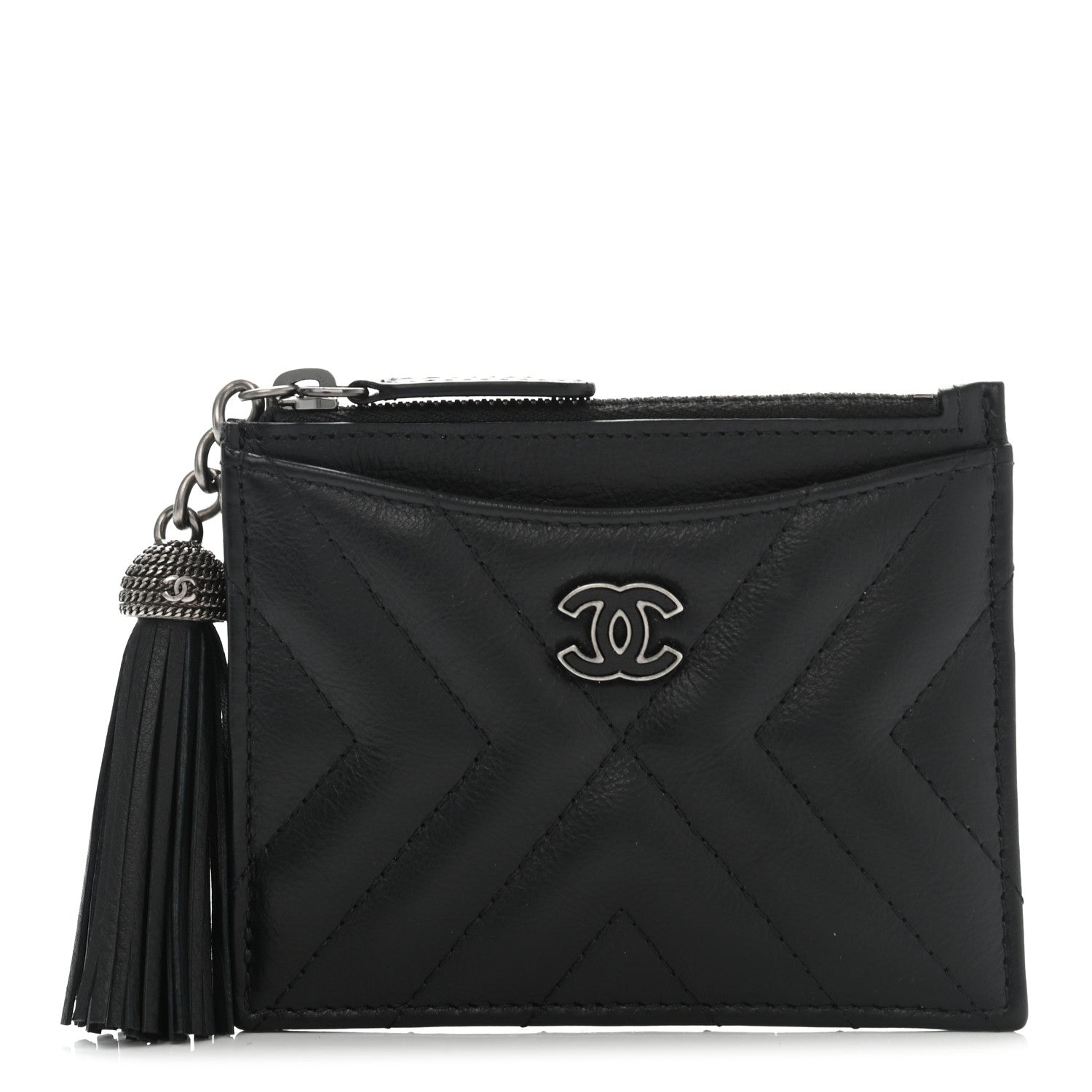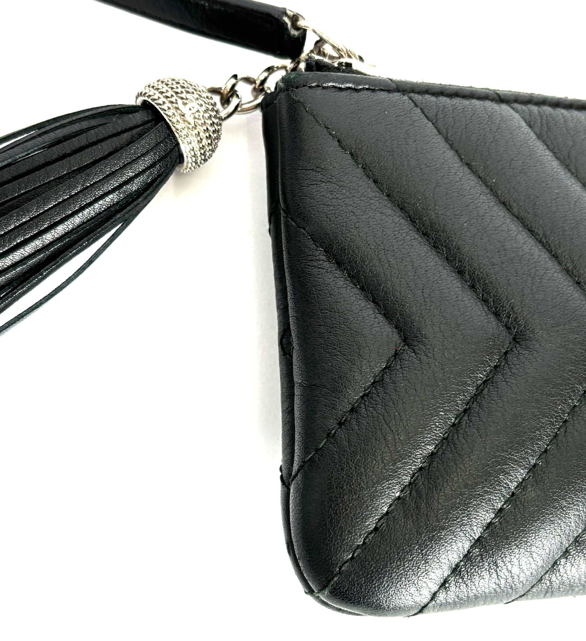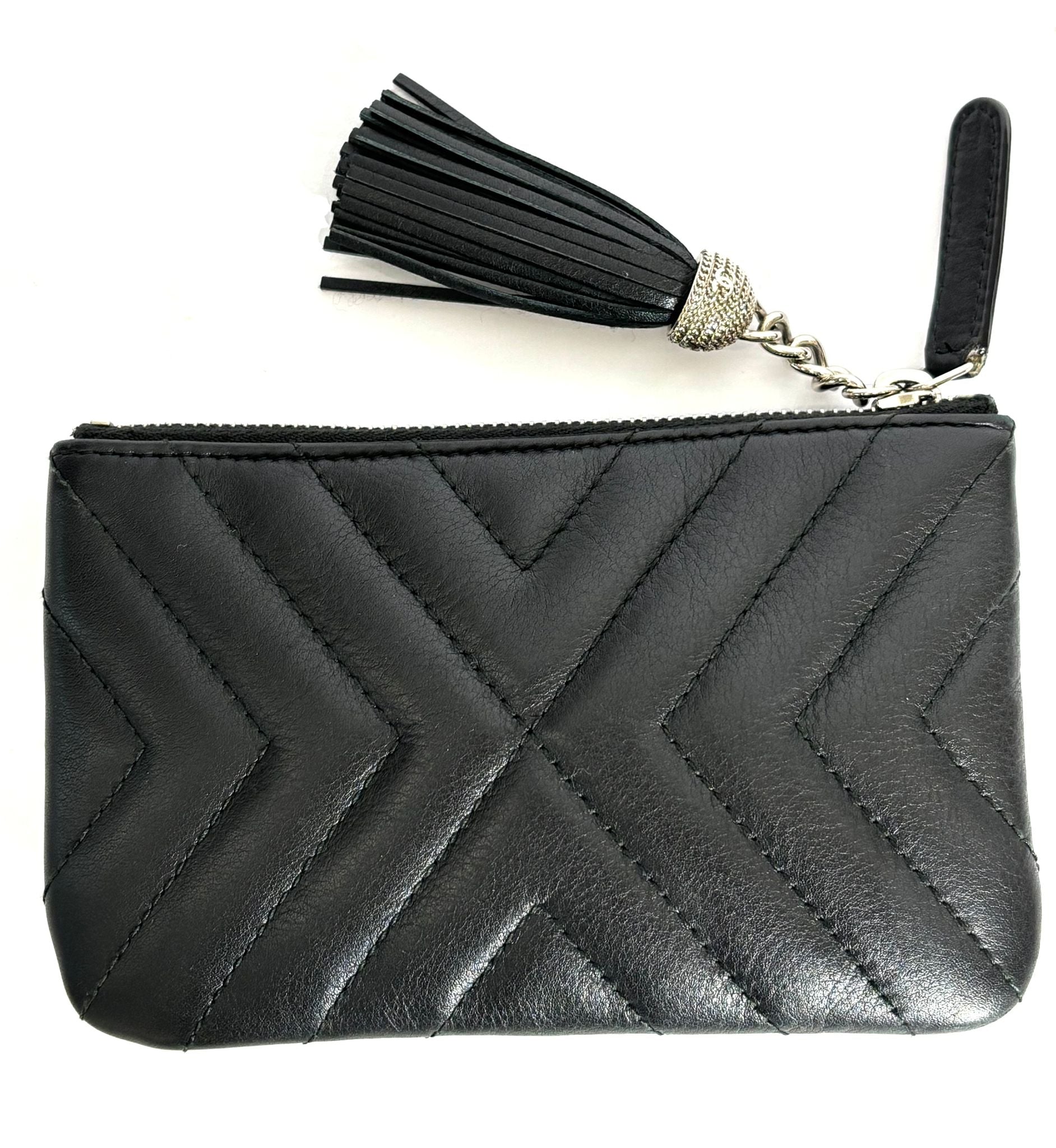 CHANEL LEATHER CHEVRON MINI TASSEL ZIP POUCH