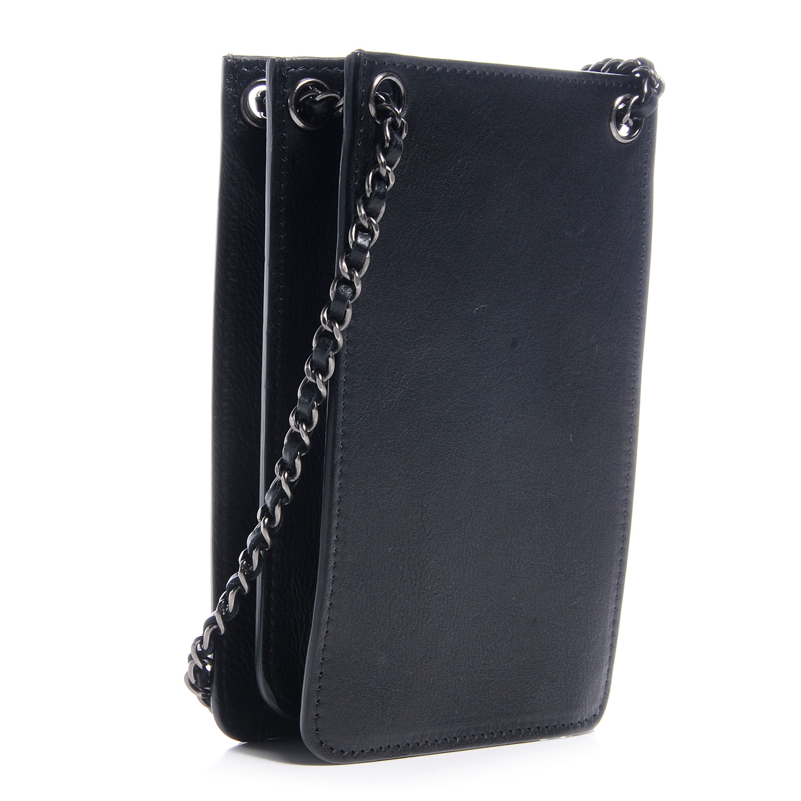 This chic case is crafted of luxurious calfskin leather with a silver chain link leather threaded cross-body strap. The top opens to a fabric interior for the latest iPhones with the timeless style only from Chanel!