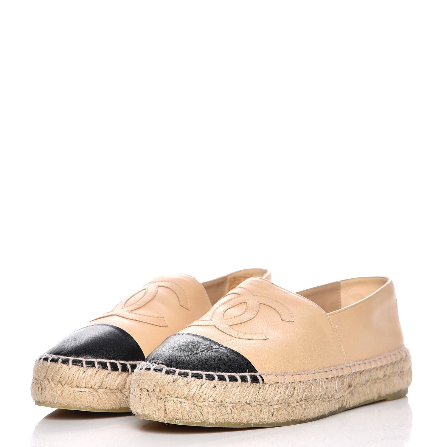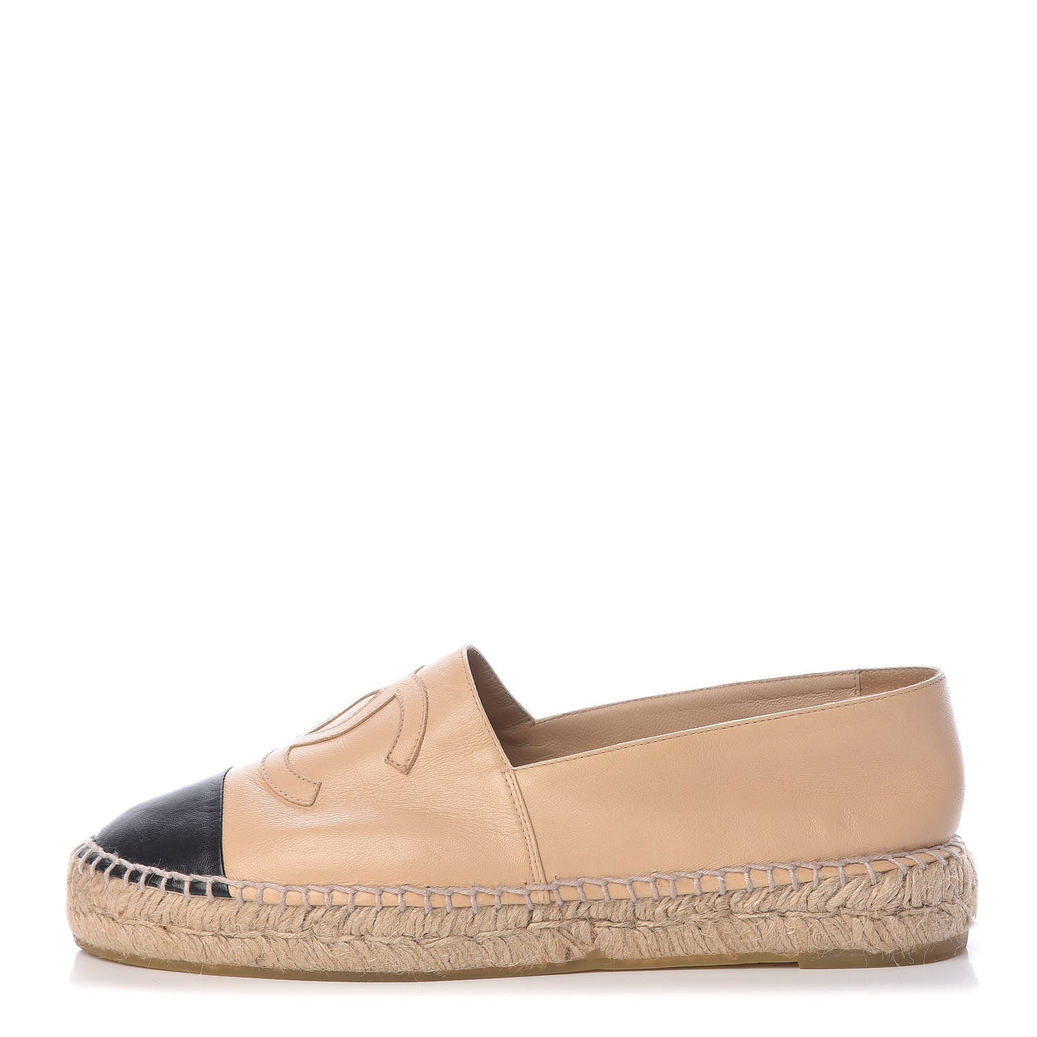 Chanel Classic Espadrilles in Beige and Black Lambskin Leather.