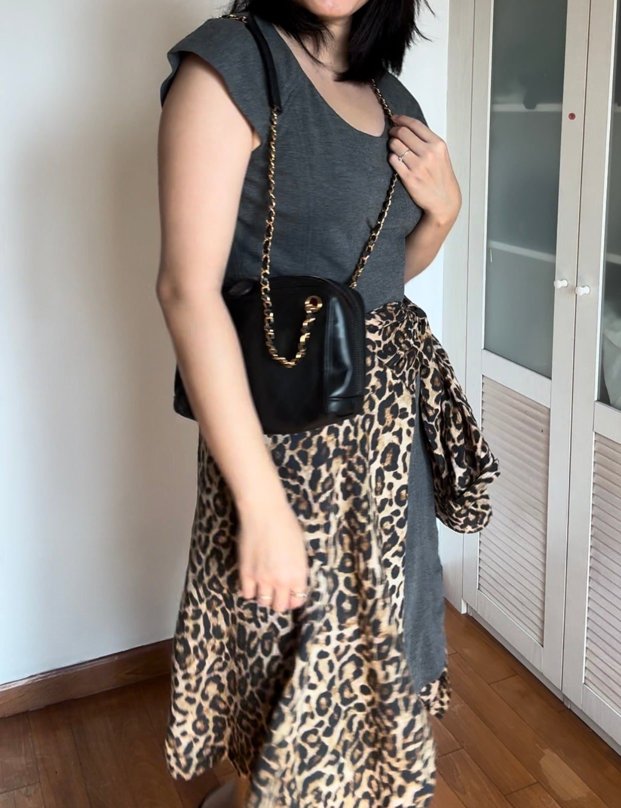 - Gold-tone hardware