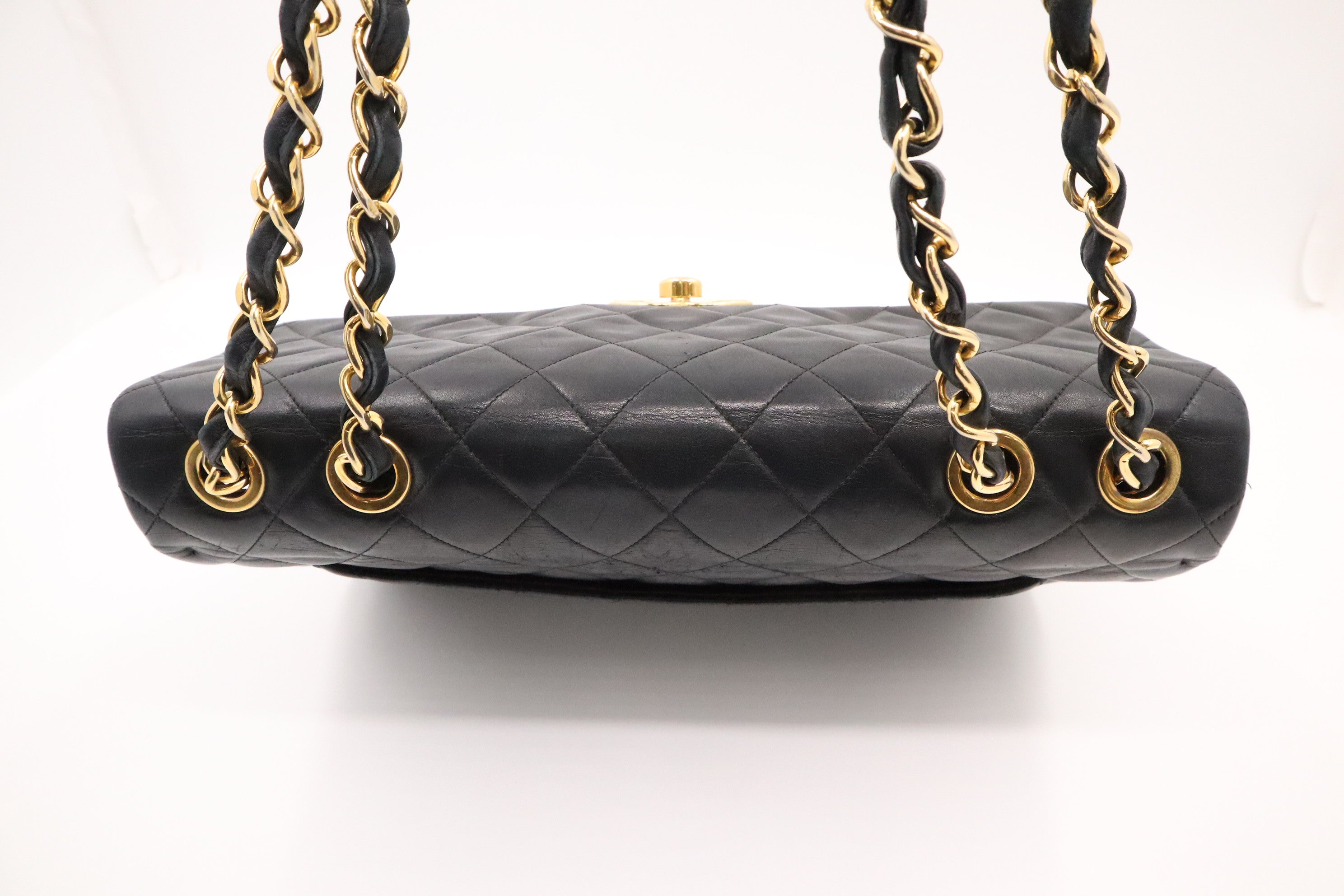 – Hardware: Shiny gold with some silvering, smooth turnlock
