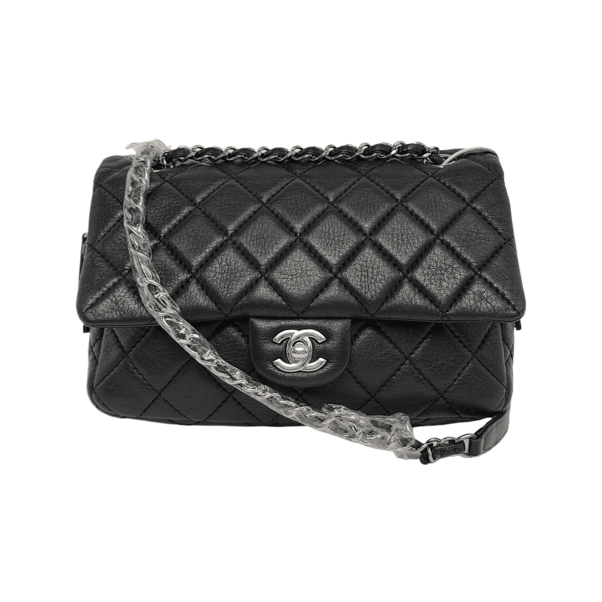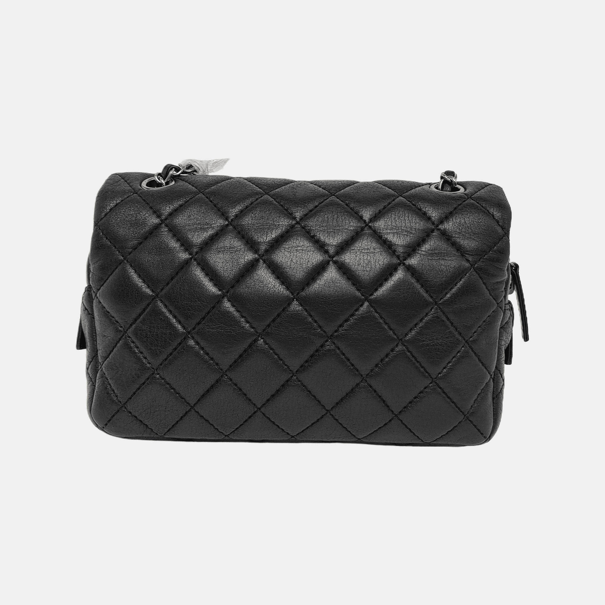 Chanel Medium Black Calfskin Leather Flap and Zipper Bag Silver Hardware, 2015
