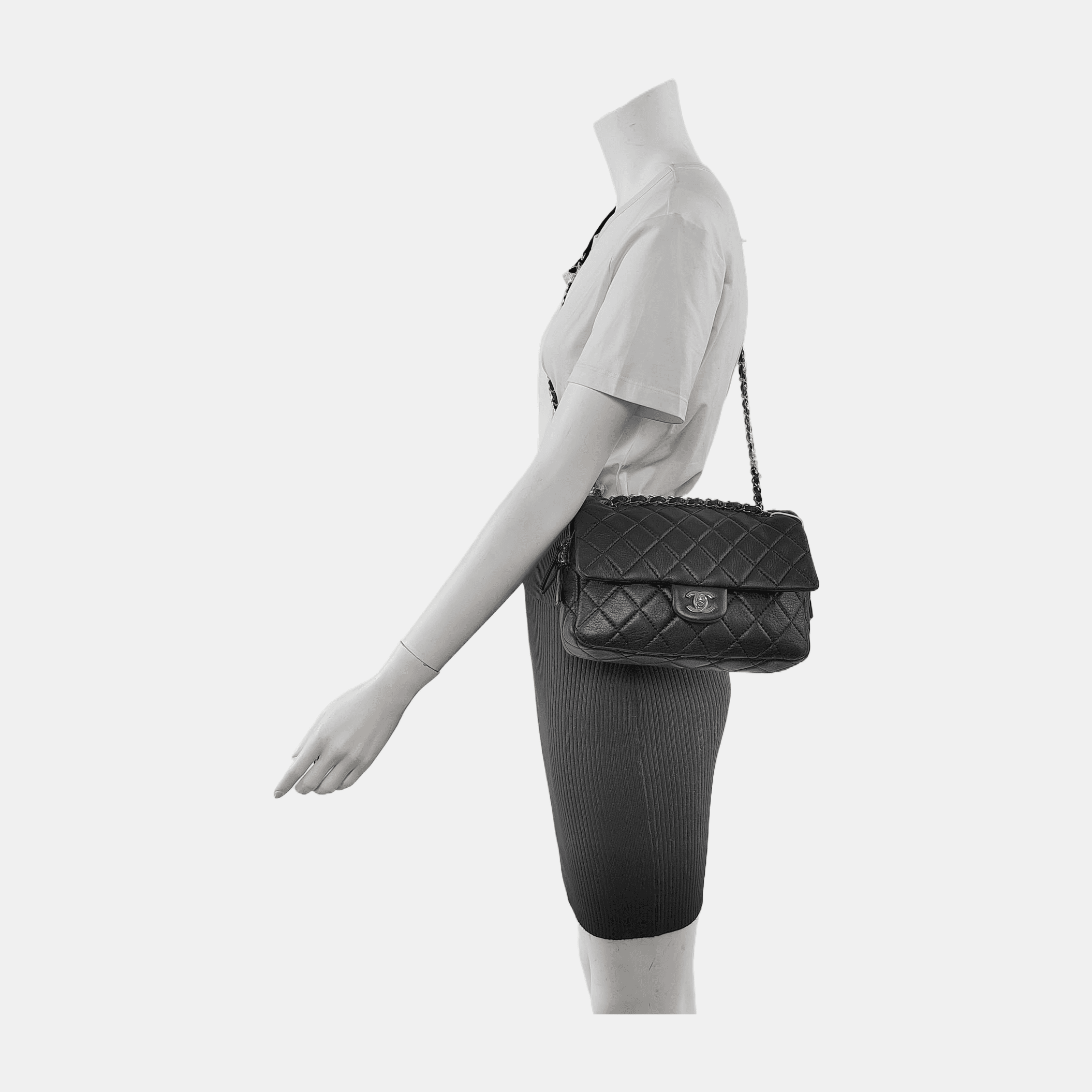 Chanel Medium Black Calfskin Leather Flap and Zipper Bag Silver Hardware, 2015Chanel Medium Black Calfskin Leather Flap and Zipper Bag Silver Hardware, 2015