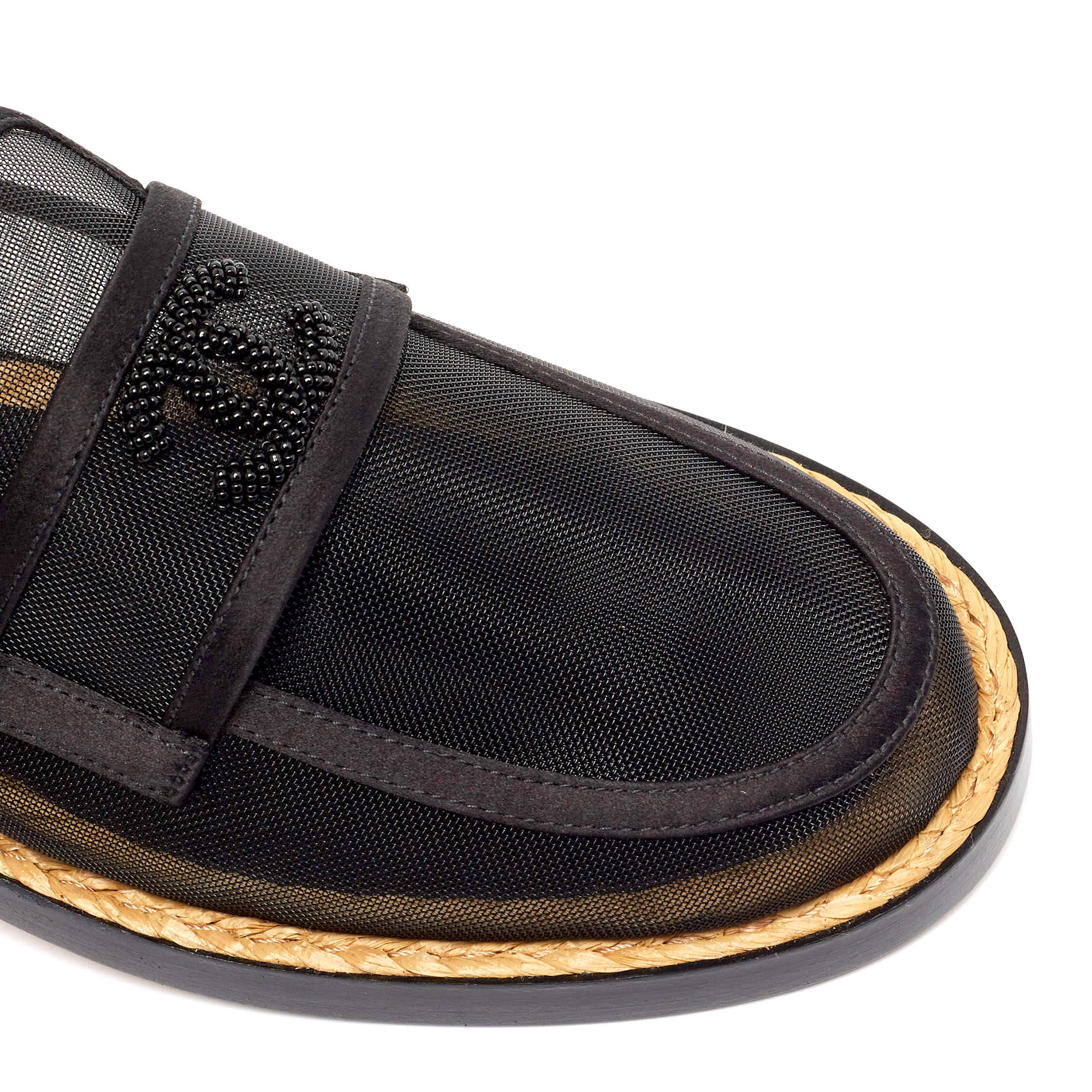 CHANEL MESH & SATIN BEADED CC SLIP-ON LOAFERS